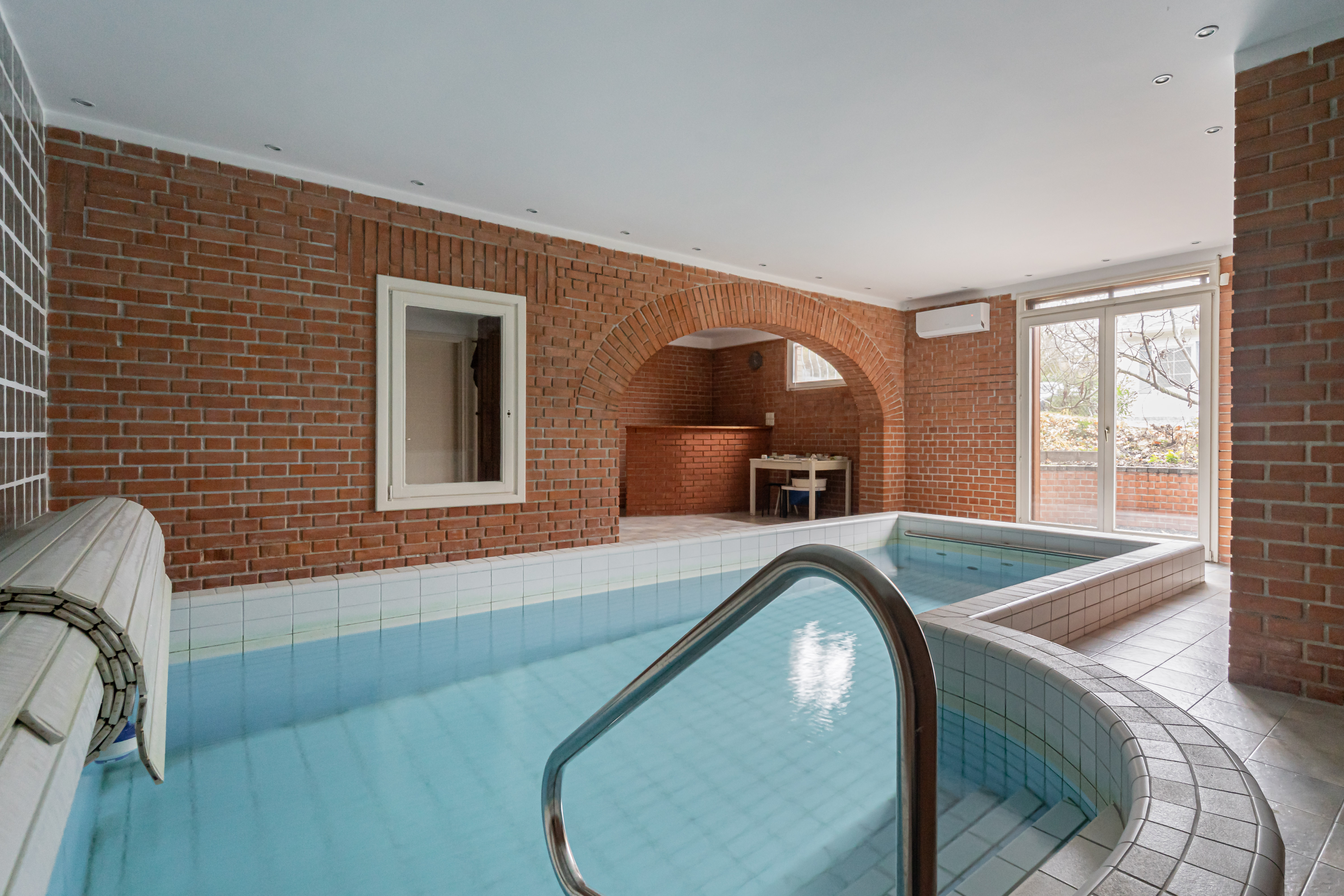 The house has bright, spacious rooms: the living room with a fireplace, the dining room and the kitchen form a harmonious whole, while a total of six rooms provide a comfortable living space. The indoor wellness experience is complemented by a covered swimming pool equipped with a counter-current system, which can be used all year round. The well-tended garden, large terrace and complete seclusion offer true tranquility.