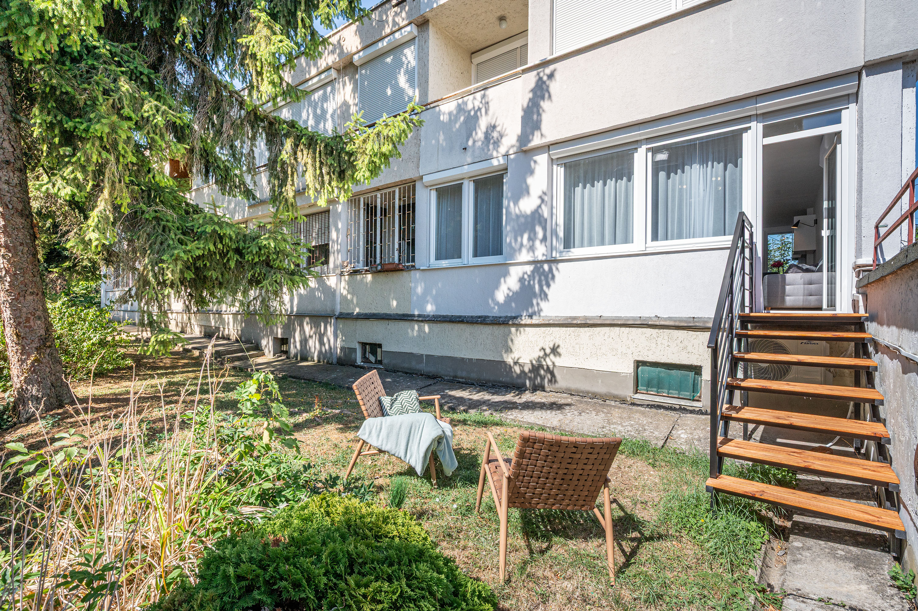 Ez a földszinti ingatlan közvetlen kertkapcsolattal rendelkezik, ami ideális kikapcsolódásra és feltöltődésre.