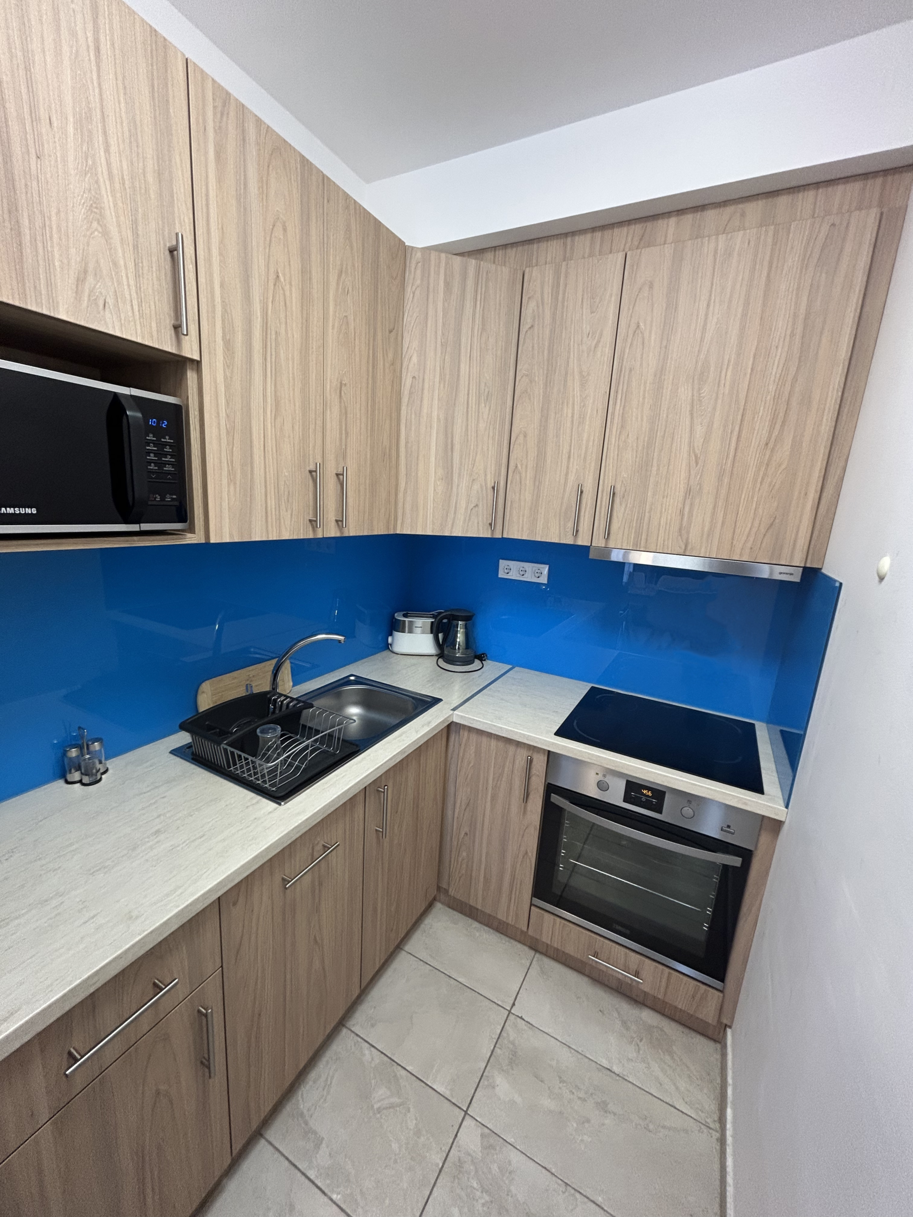 The apartment is fully equipped with a washing machine, TV, oven, microwave, toaster, hairdryer and built-in wardrobes, so it is ready to move in immediately. The building has a lift, and cleaning service is available on request for an additional fee.