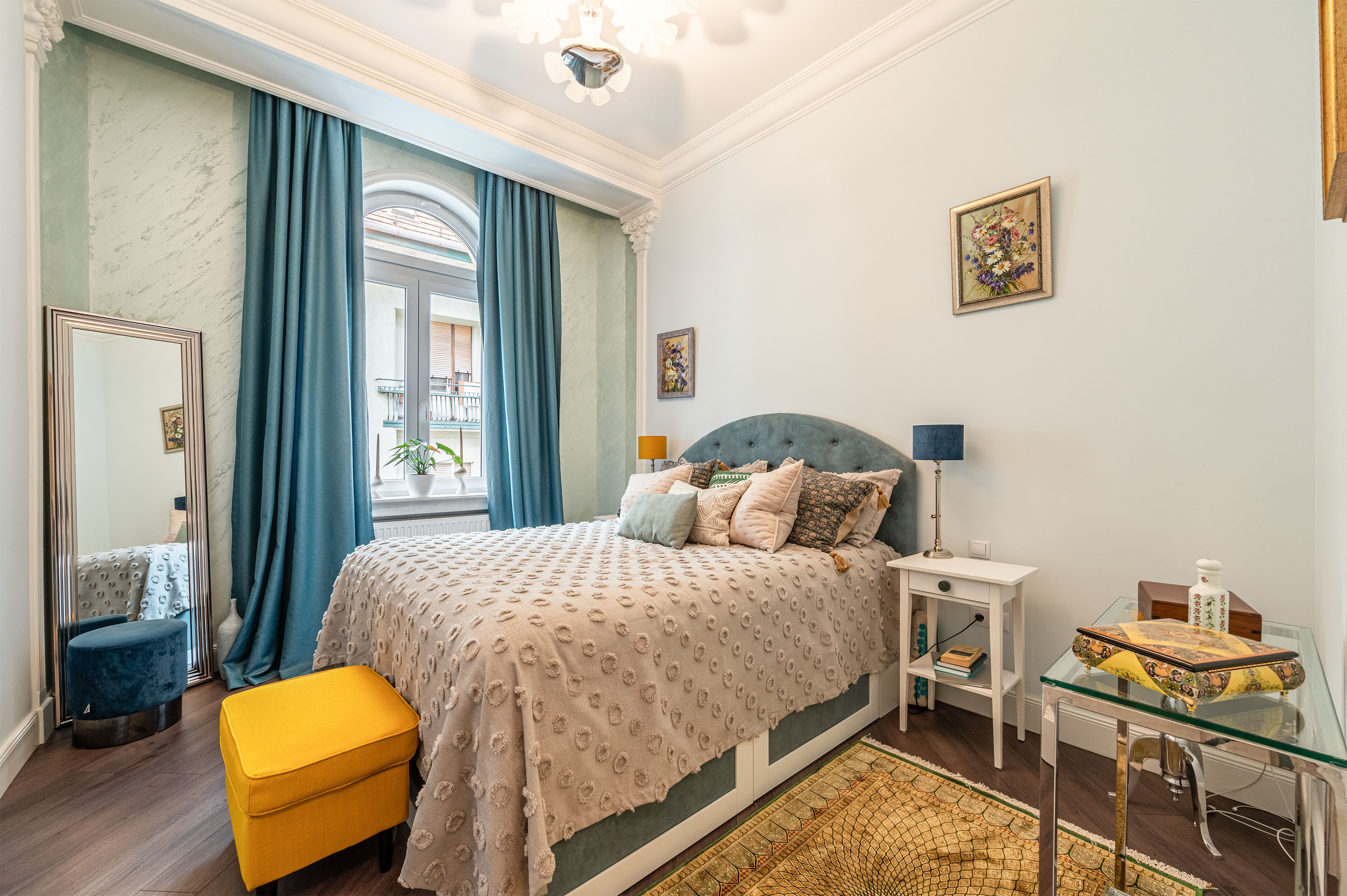 This apartment is located in the elegant part of Budapest’s 2nd district, at the beginning of Szilágyi Erzsébet Avenue. Nestled next to Széll Kálmán Square and the Városmajor Park, the tree-lined avenue is one of Buda’s most desirable areas. Several iconic Budapest buildings are nearby, such as the currently-renovated Körszálló and the recently refurbished Hungarian Money Museum. Just a few minutes’ walk away are the Fény Street Market and the Mammut Shopping Center, offering a wide range of shops, restaurants, and entertainment options. The area is popular with both locals and expats, and is home to various cultural institutions (theatres, cultural centers, etc.) and schools. Public transportation is excellent, making it easy to reach any part of the city.