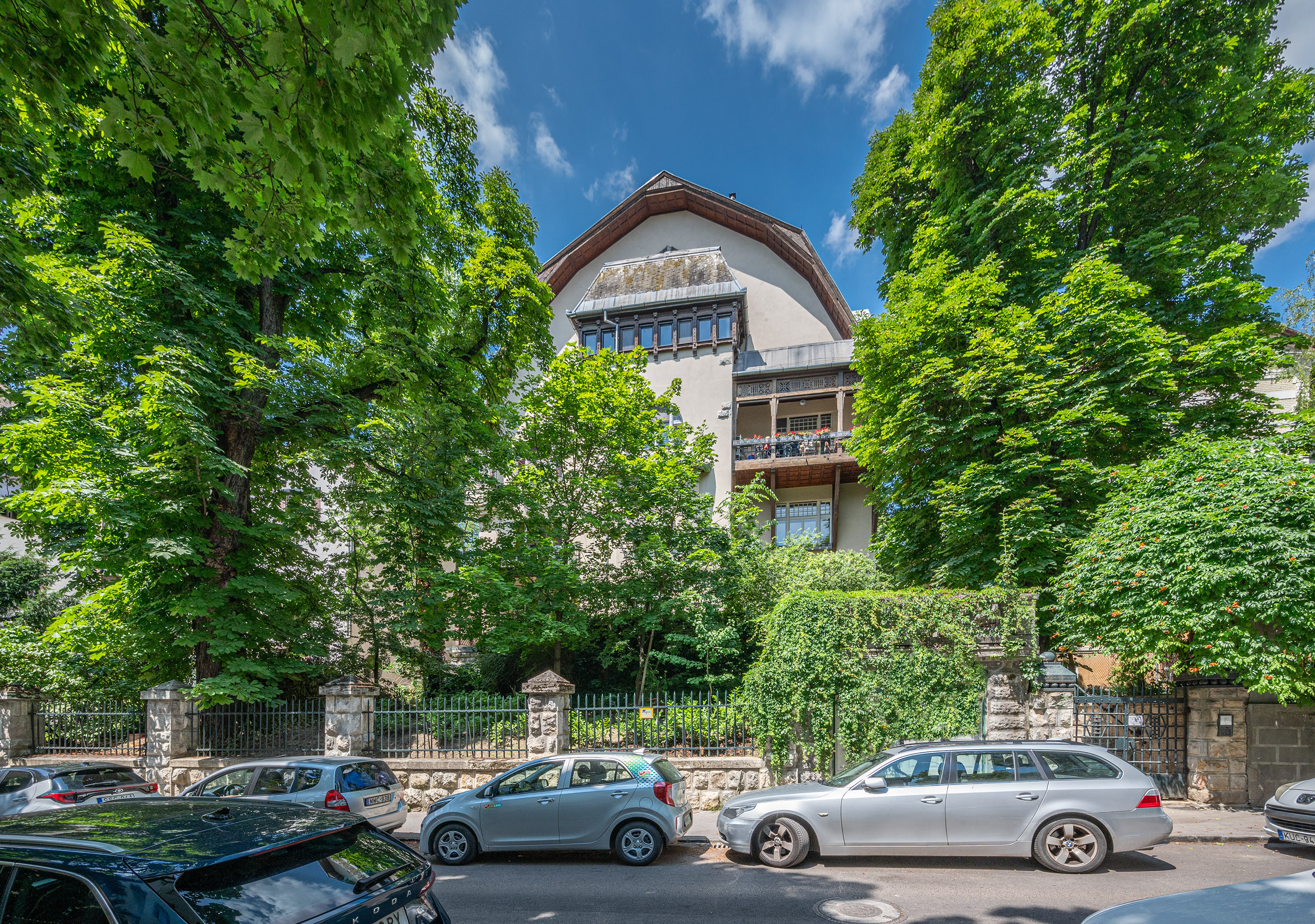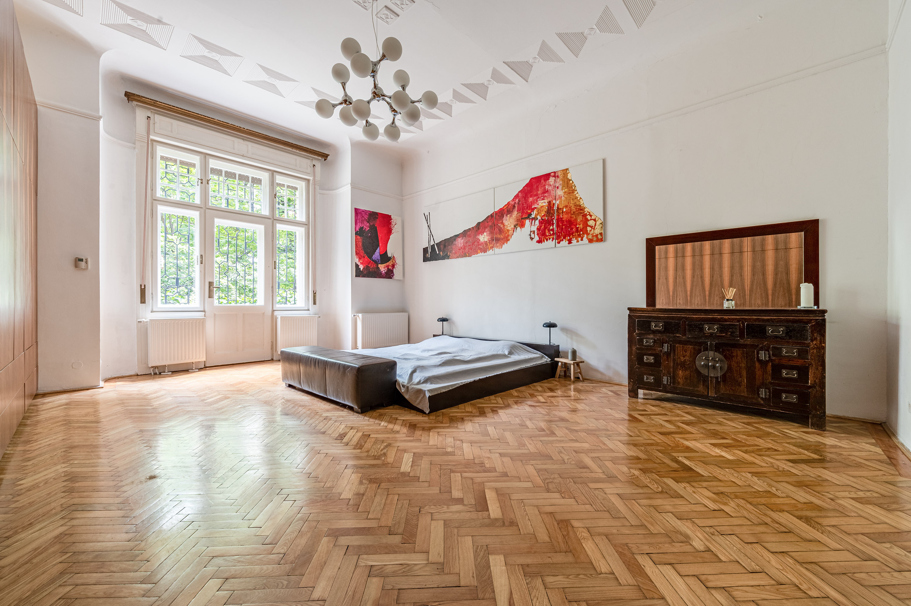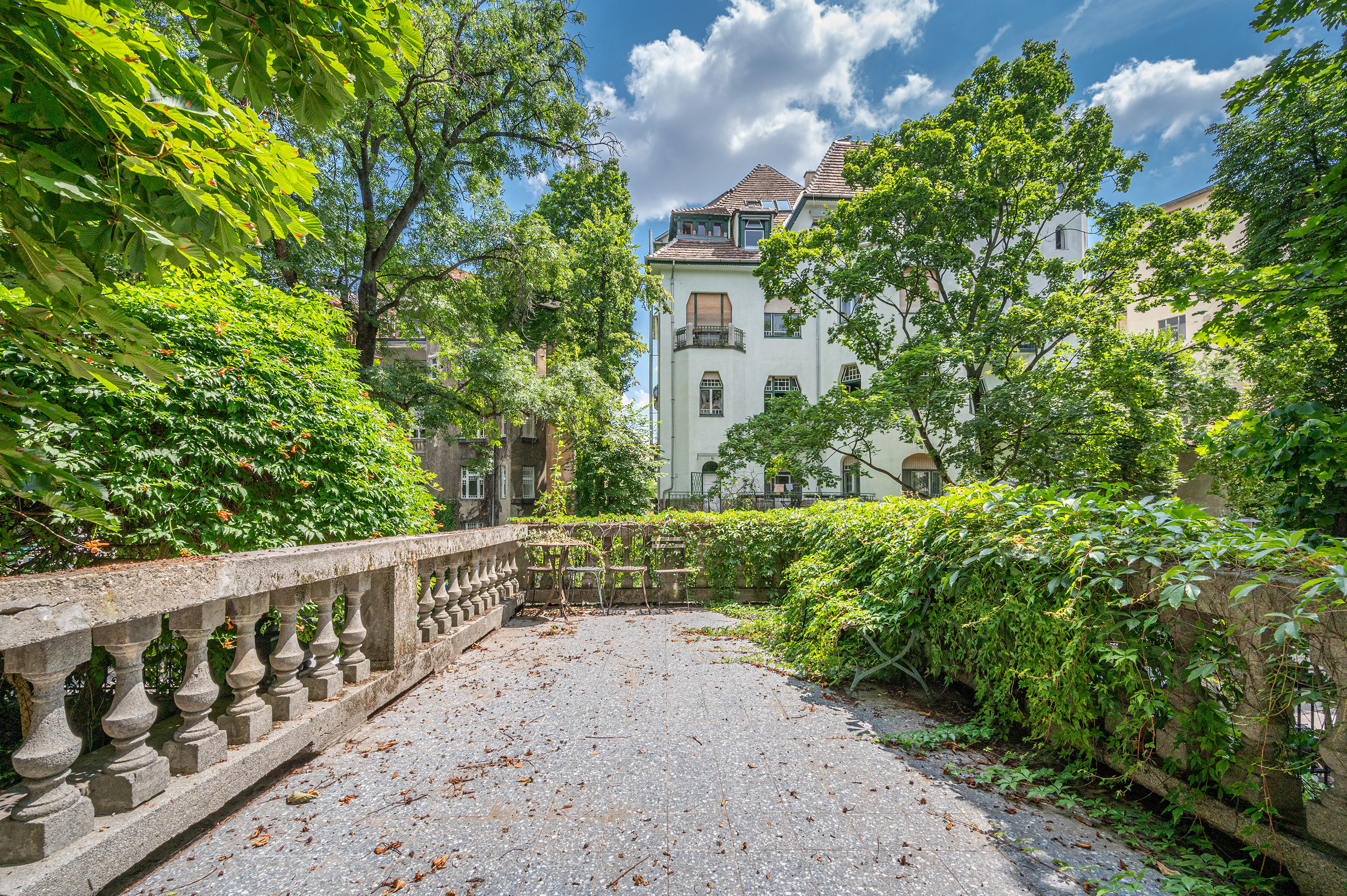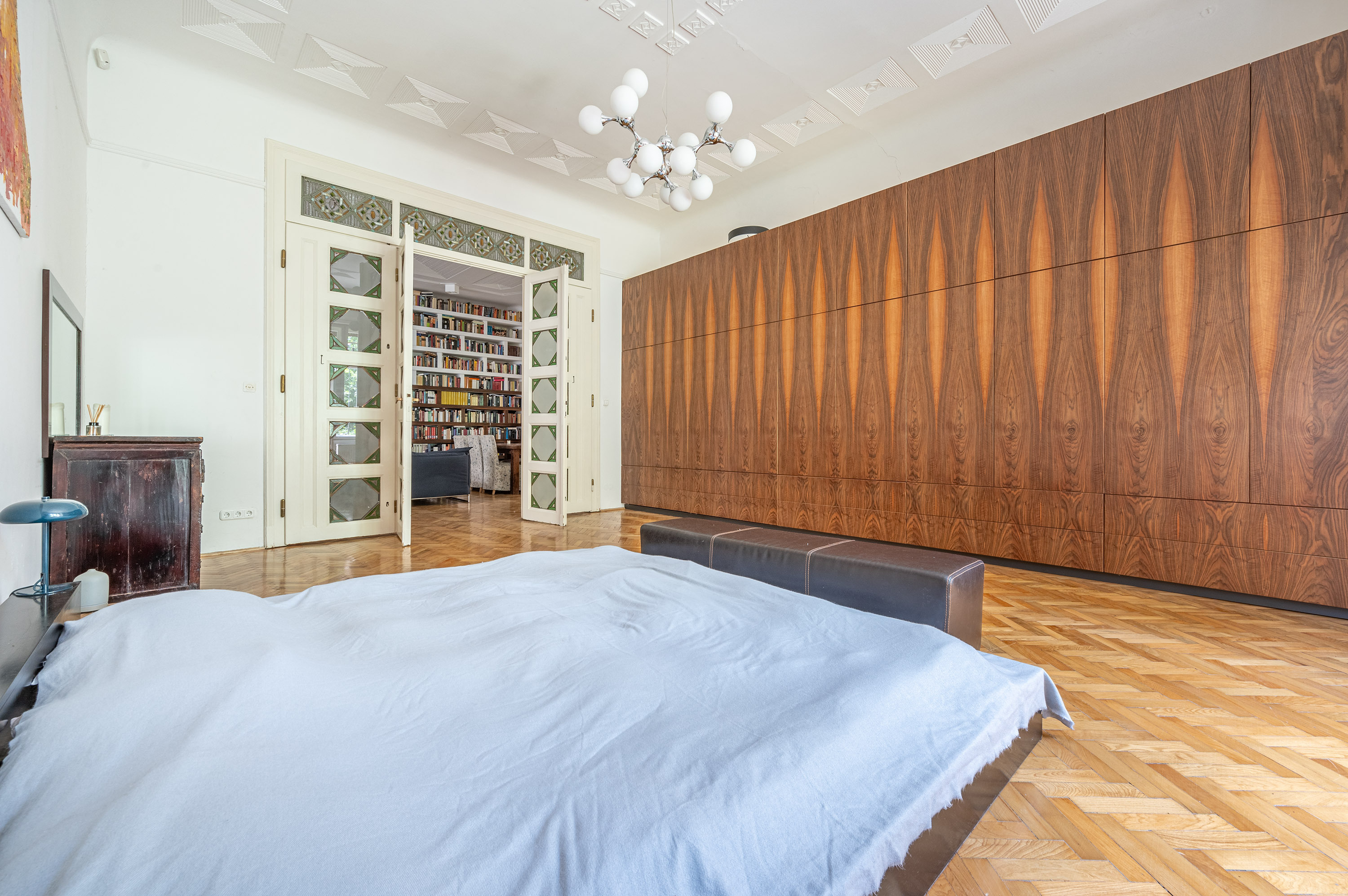 The impressive apartment on the high ground floor of the property known as Gyenes-villa has 2 bedrooms, a large living room, a study corner, a fitted kitchen with terrace connection, a large bathroom with bath and shower.