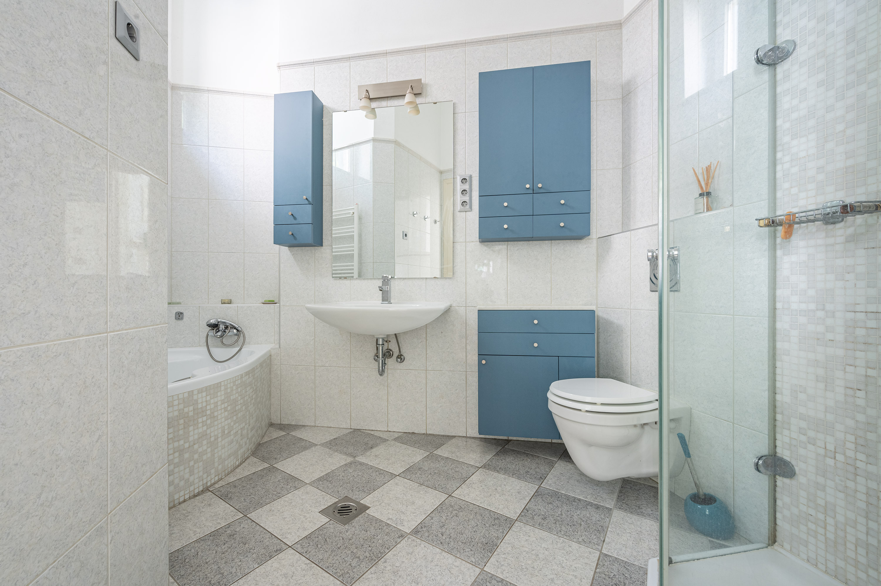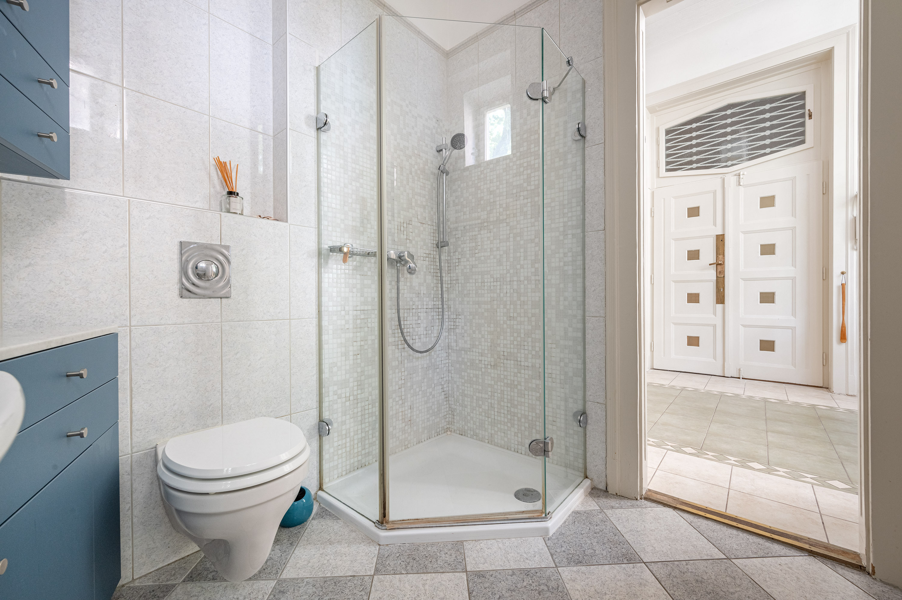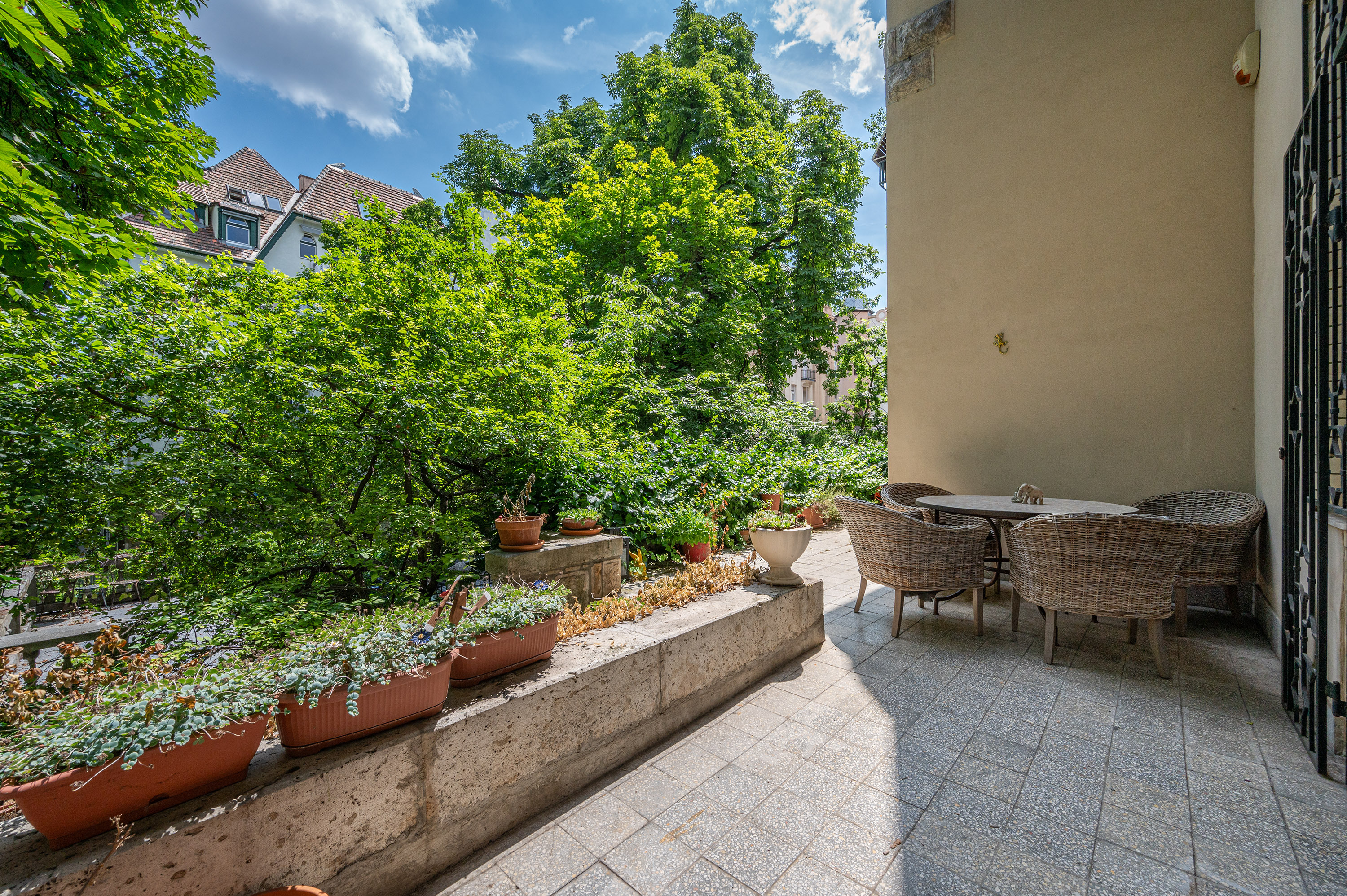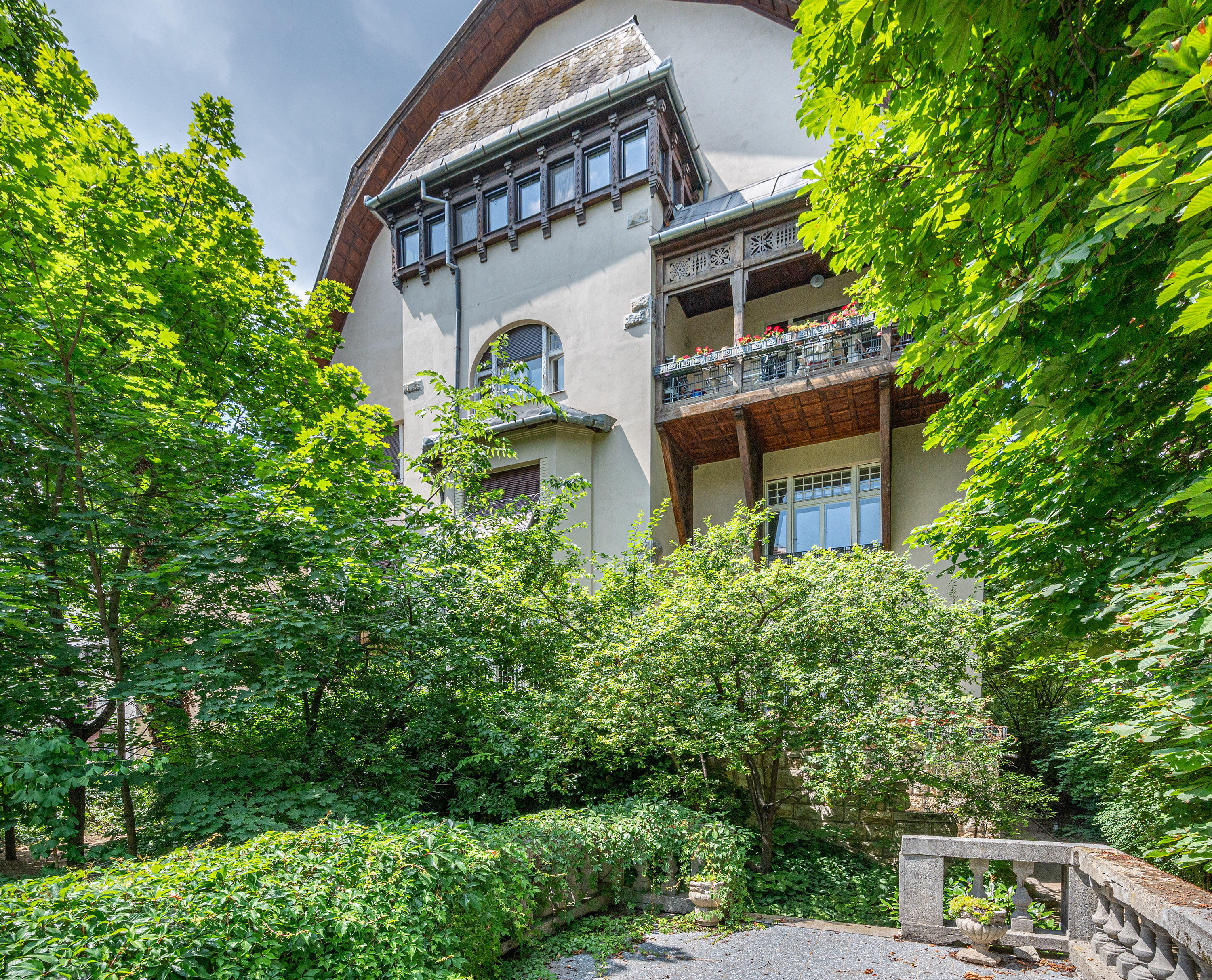 The impressive apartment on the high ground floor of the property known as Gyenes-villa has 2 bedrooms, a large living room, a study corner, a fitted kitchen with terrace connection, a large bathroom with bath and shower.