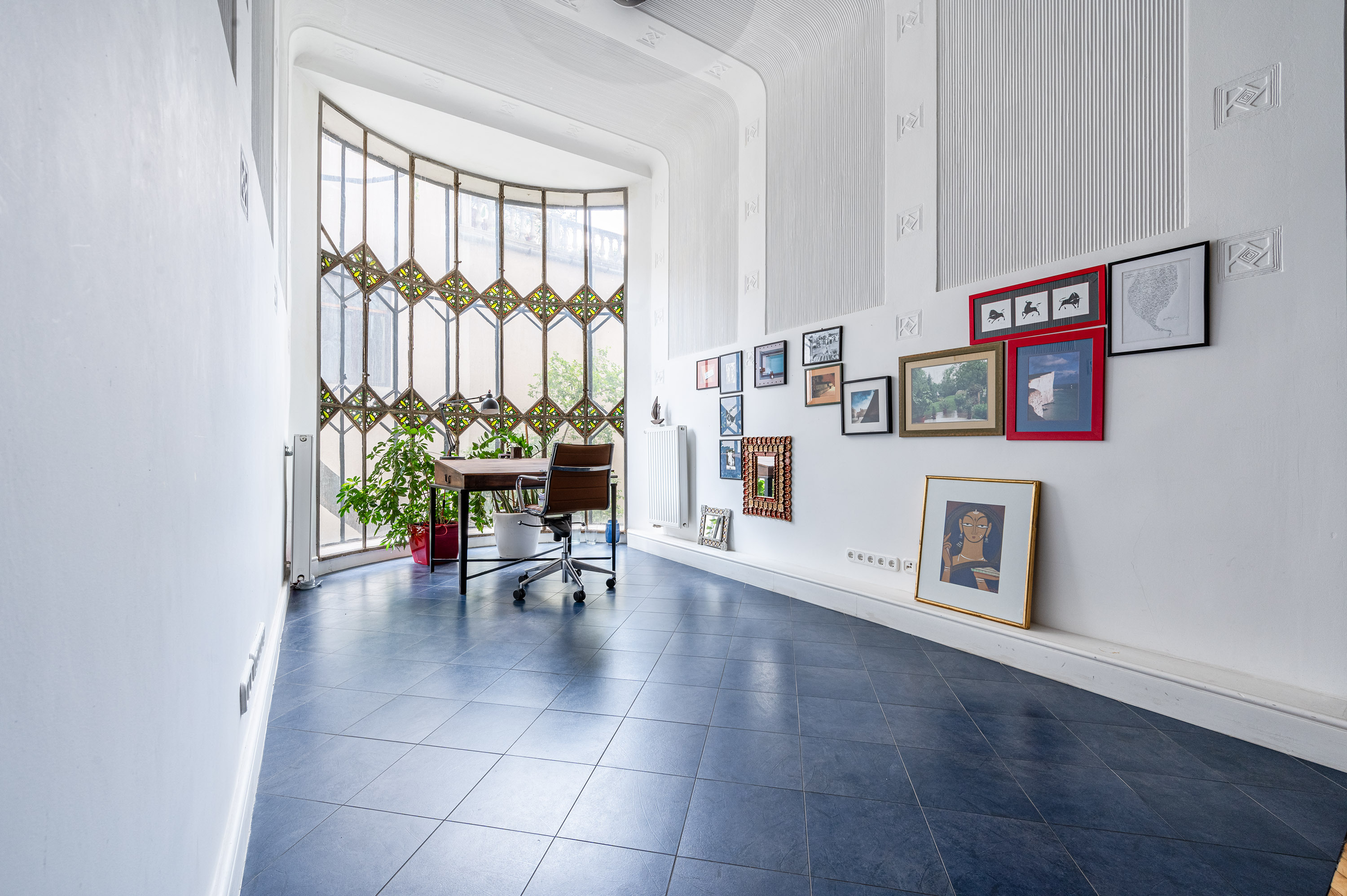 The property is unique for its 4m high ceilings, large spaces, carved wooden doors and the jewel of the property: the semi-circular stained glass wall in the study corner, which is over 100 years old.