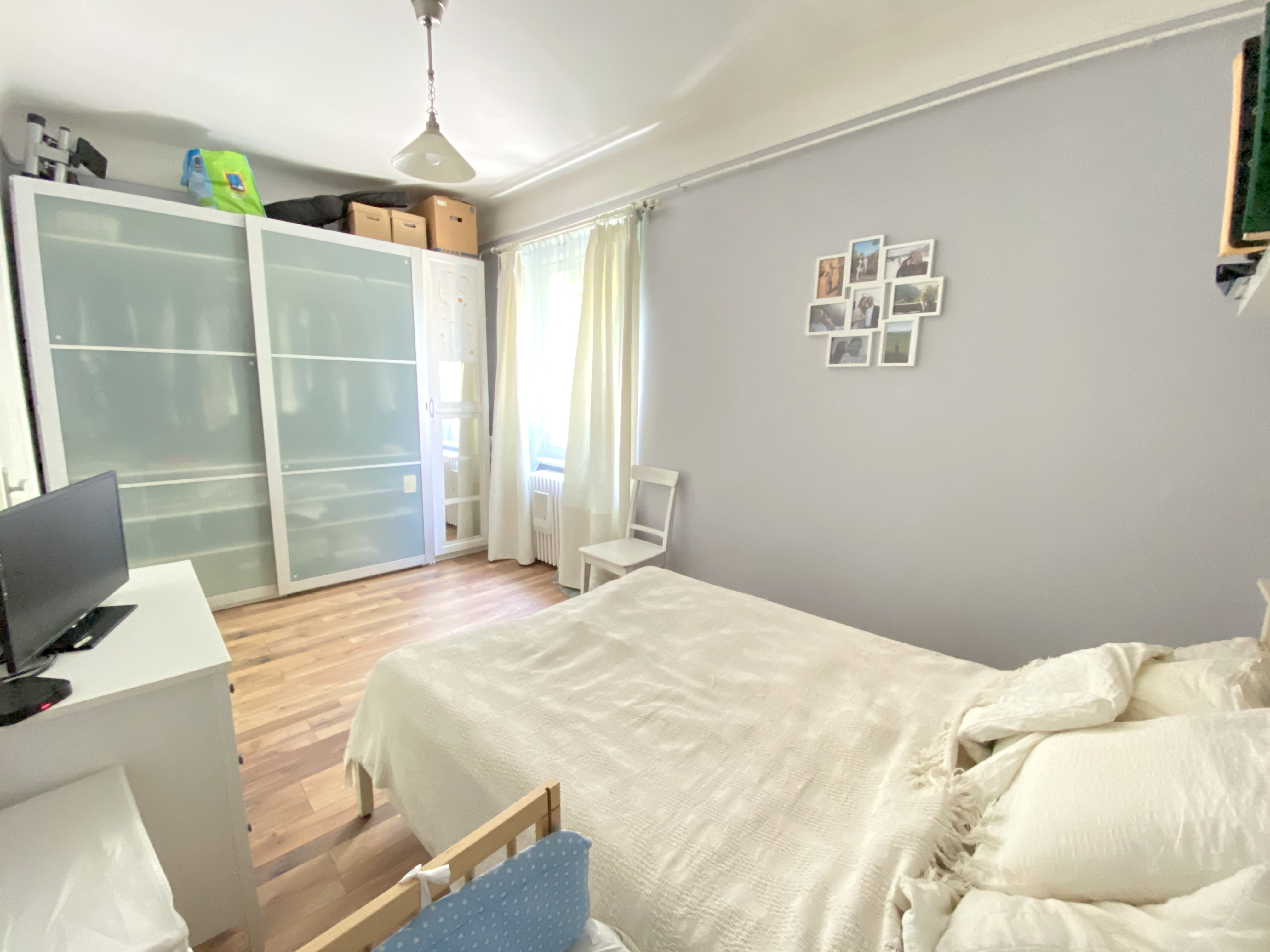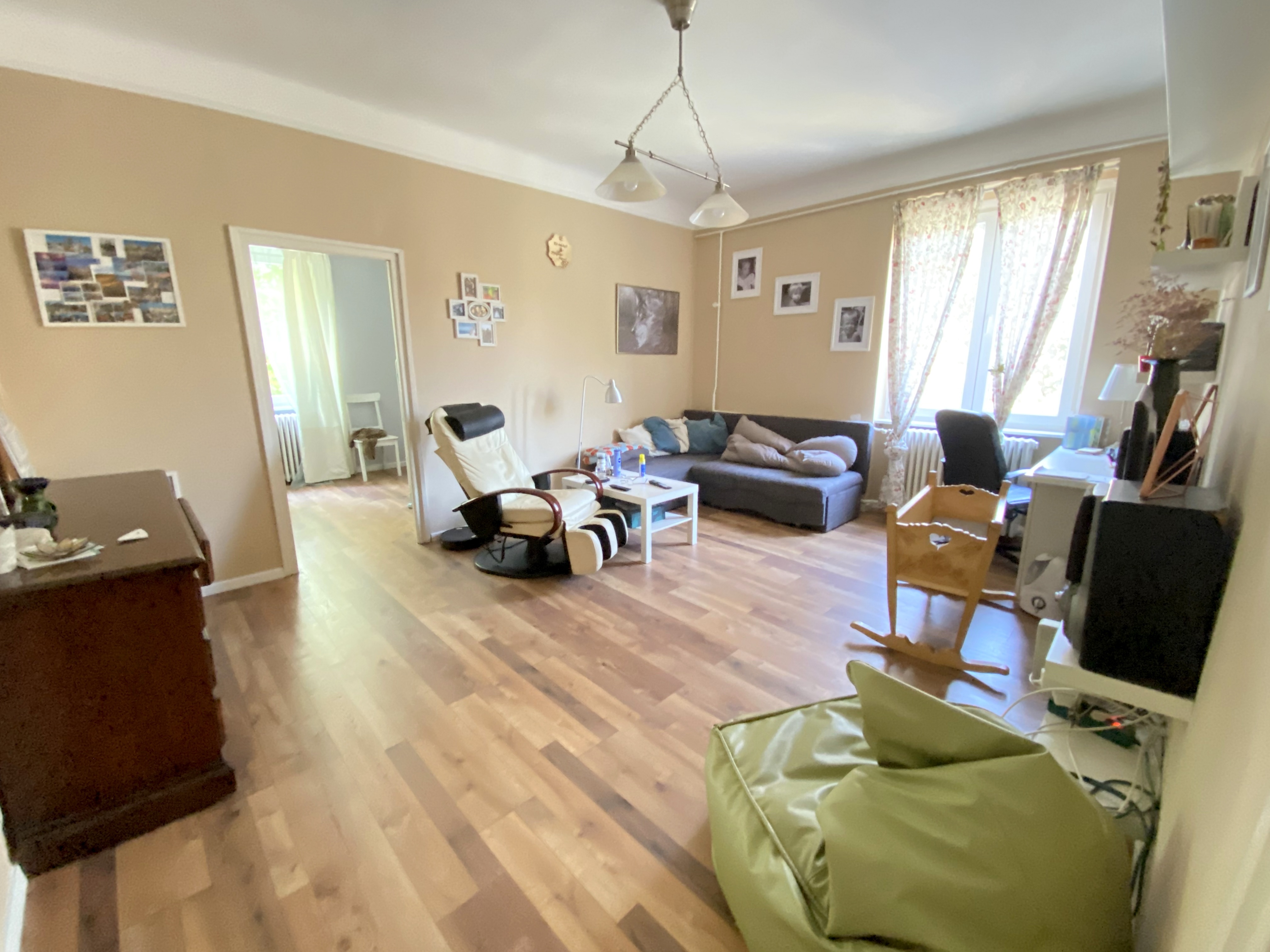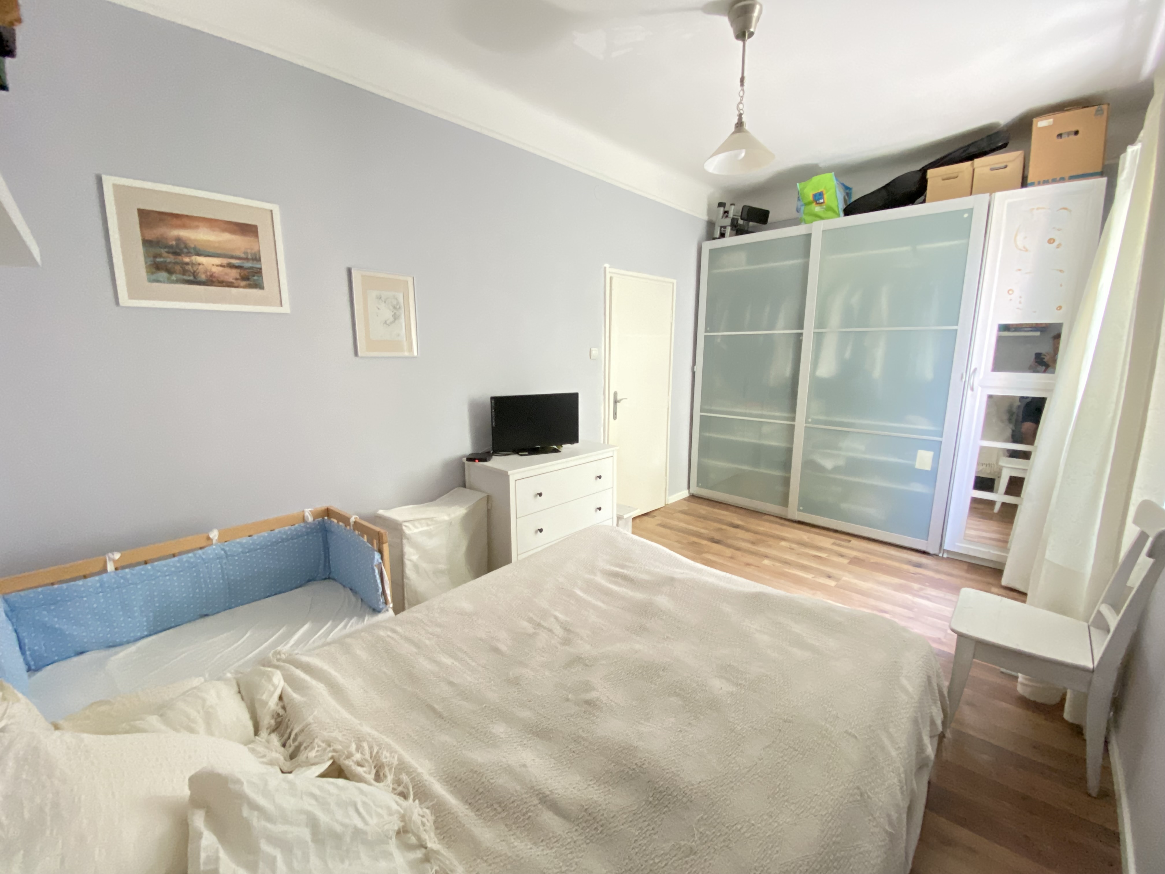 The apartment has been fully renovated 5 years ago (including plubing and electric wires), has new laminate flooring and new windows.