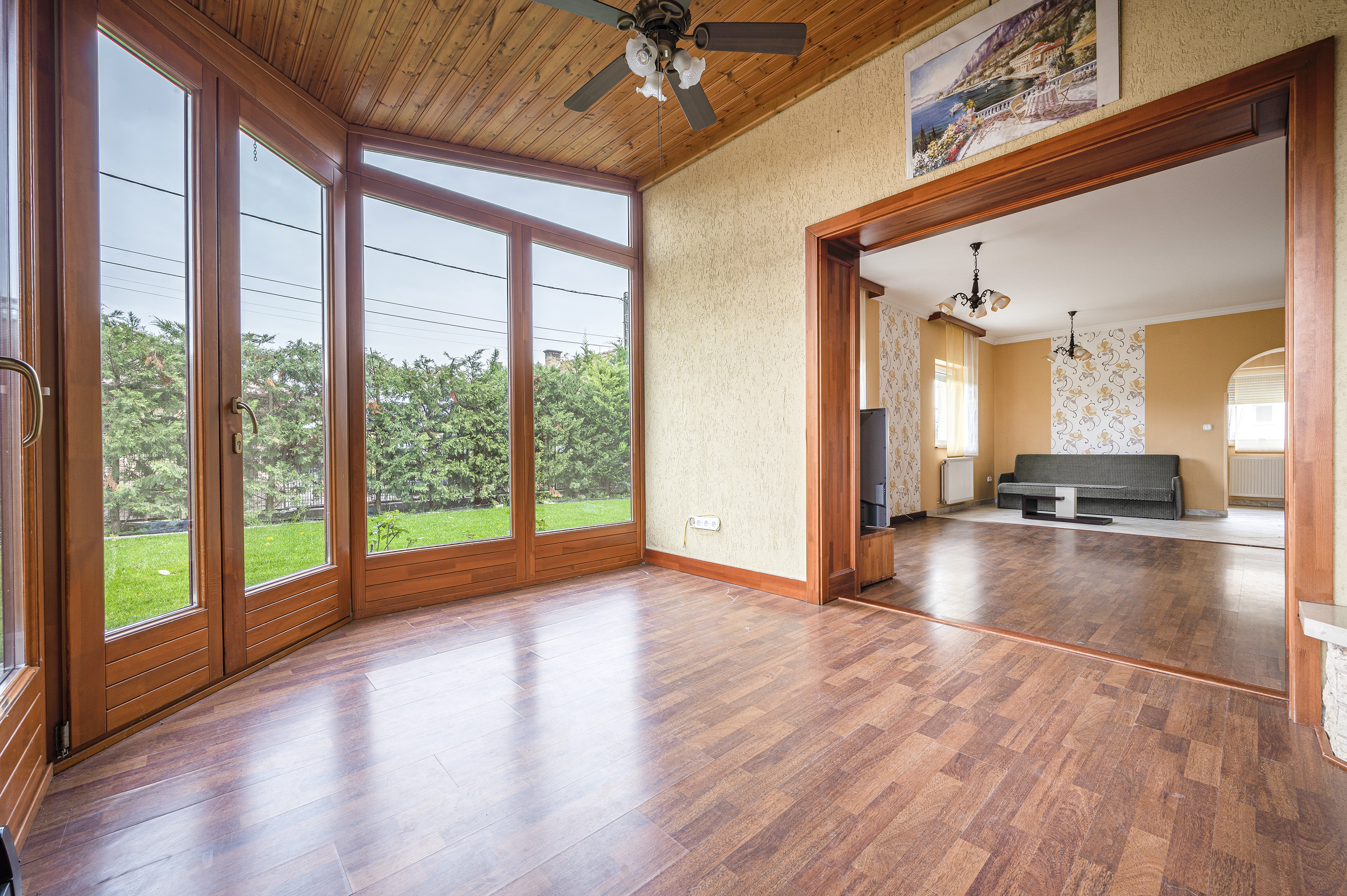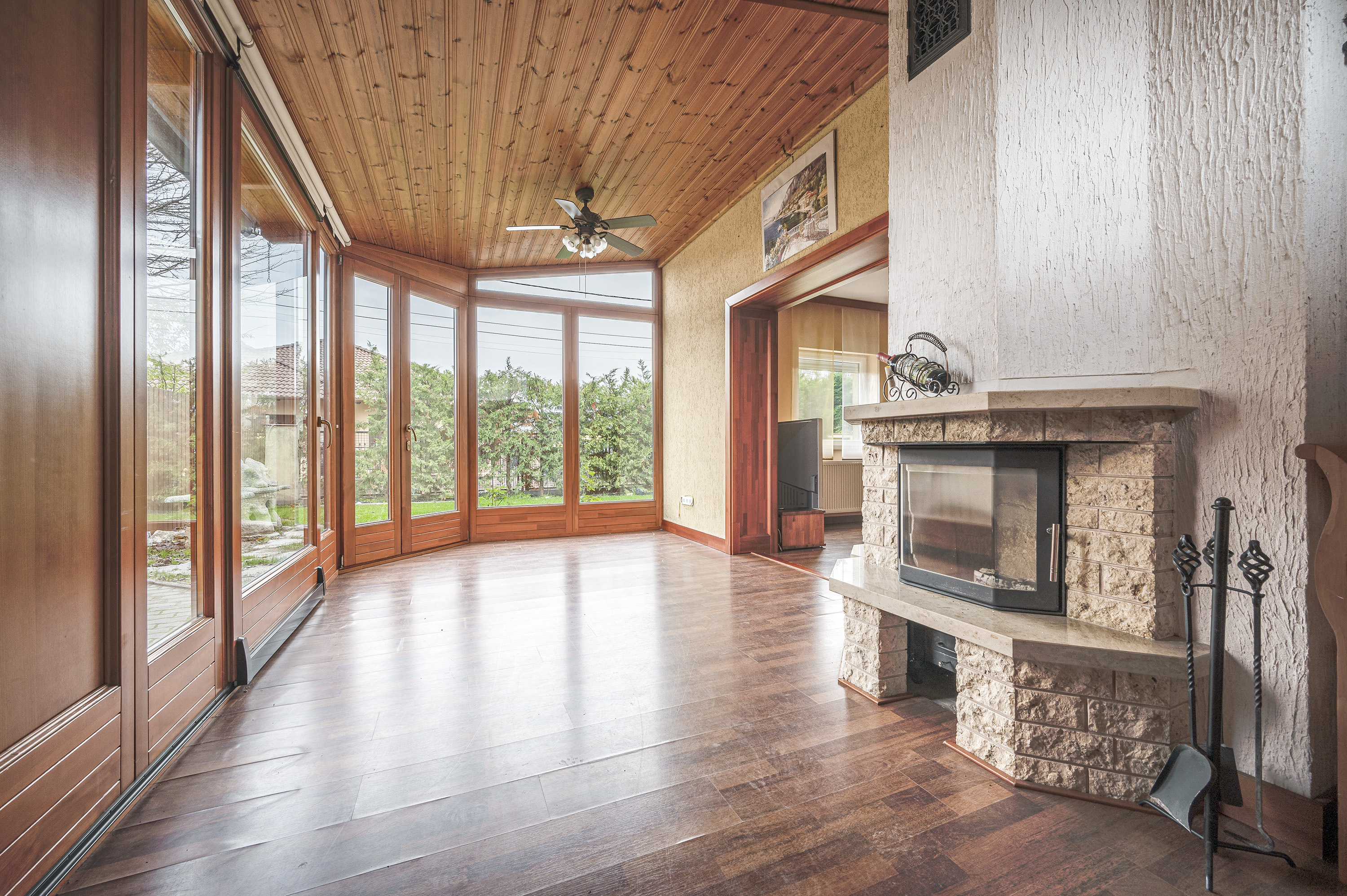 The whole house is made of quality wood materials by a carpenter, furniture, doors, stairs, windows and doors.