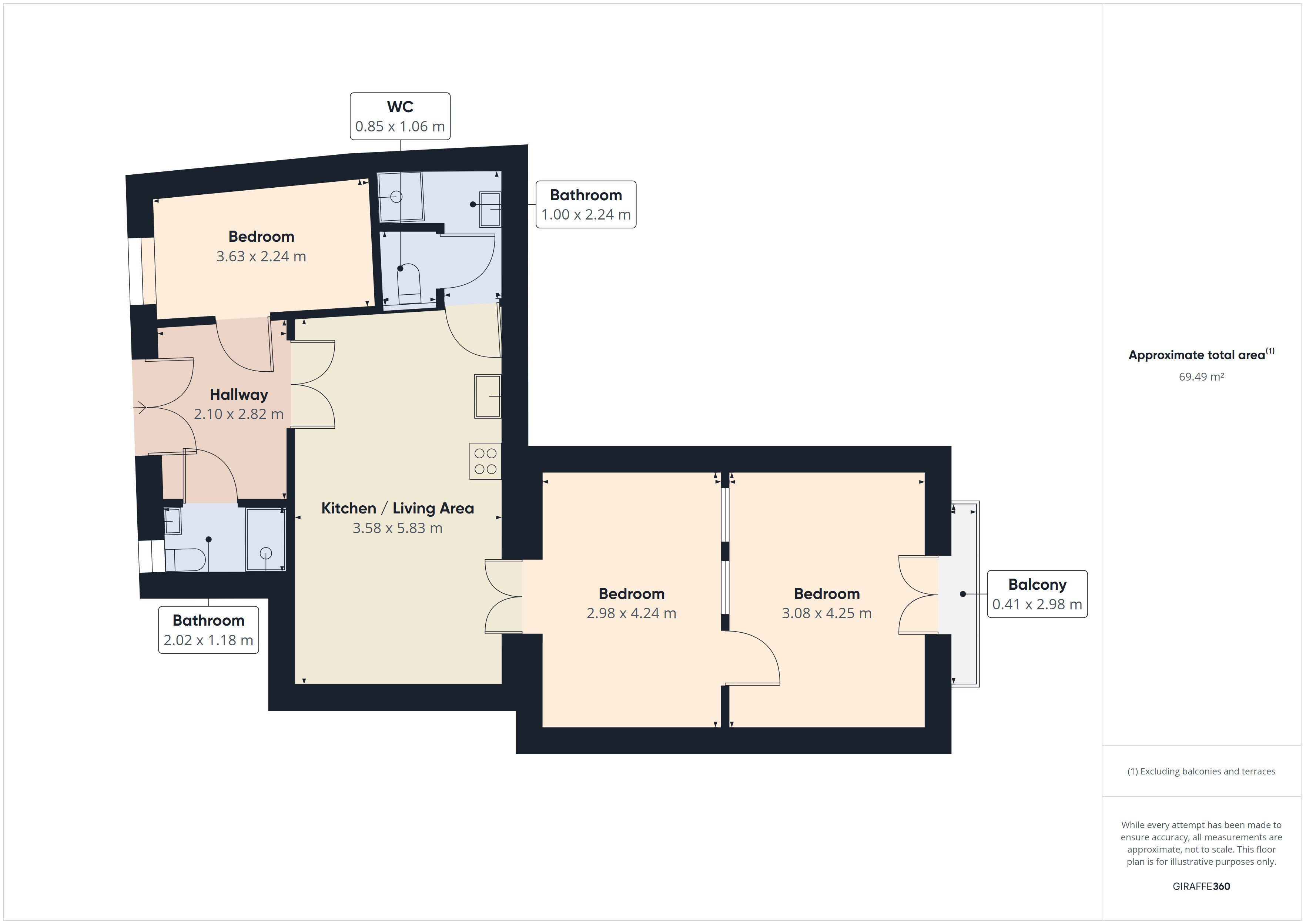 • Official Size: 70m2