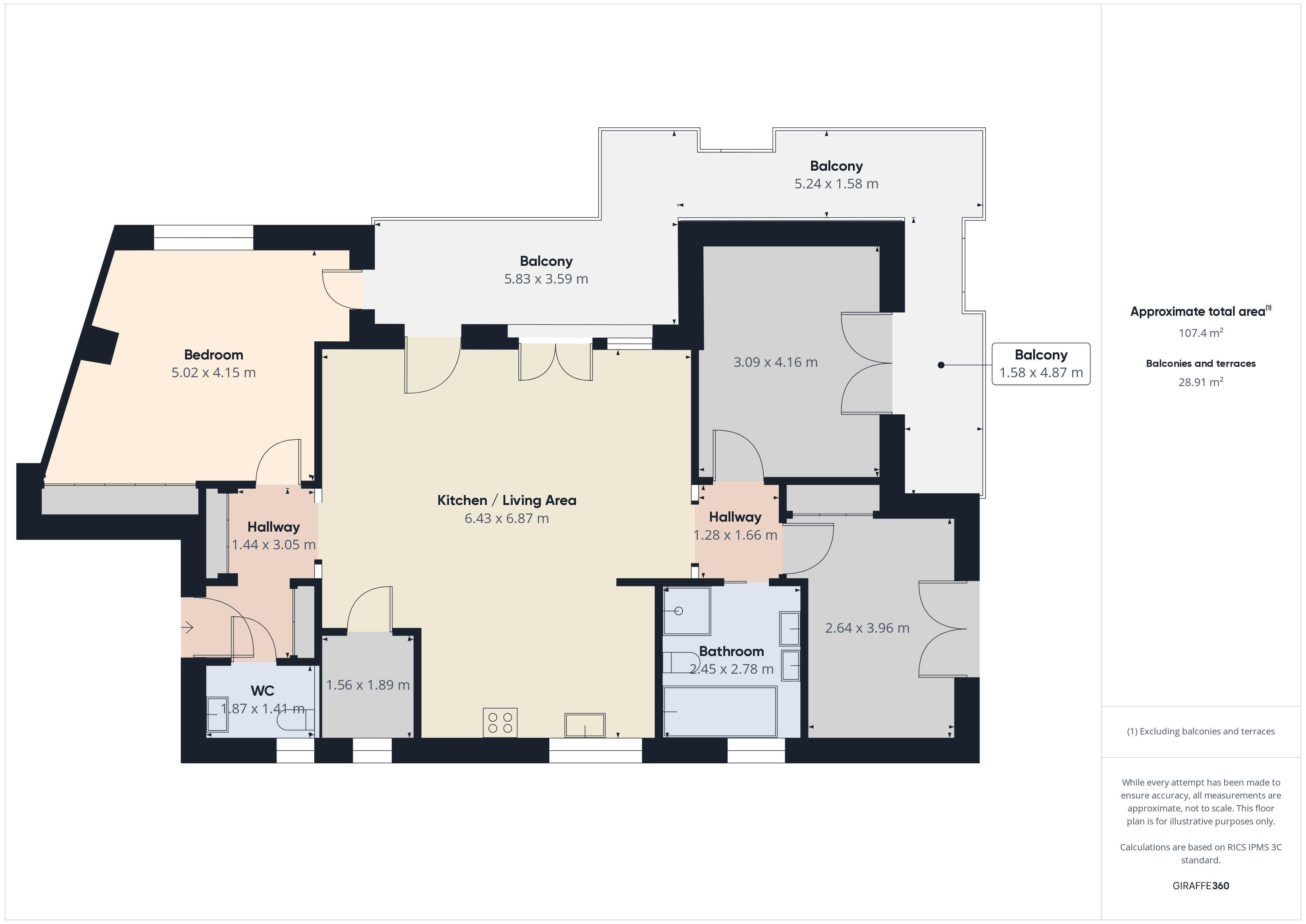 • Balconies & Sizing: 1