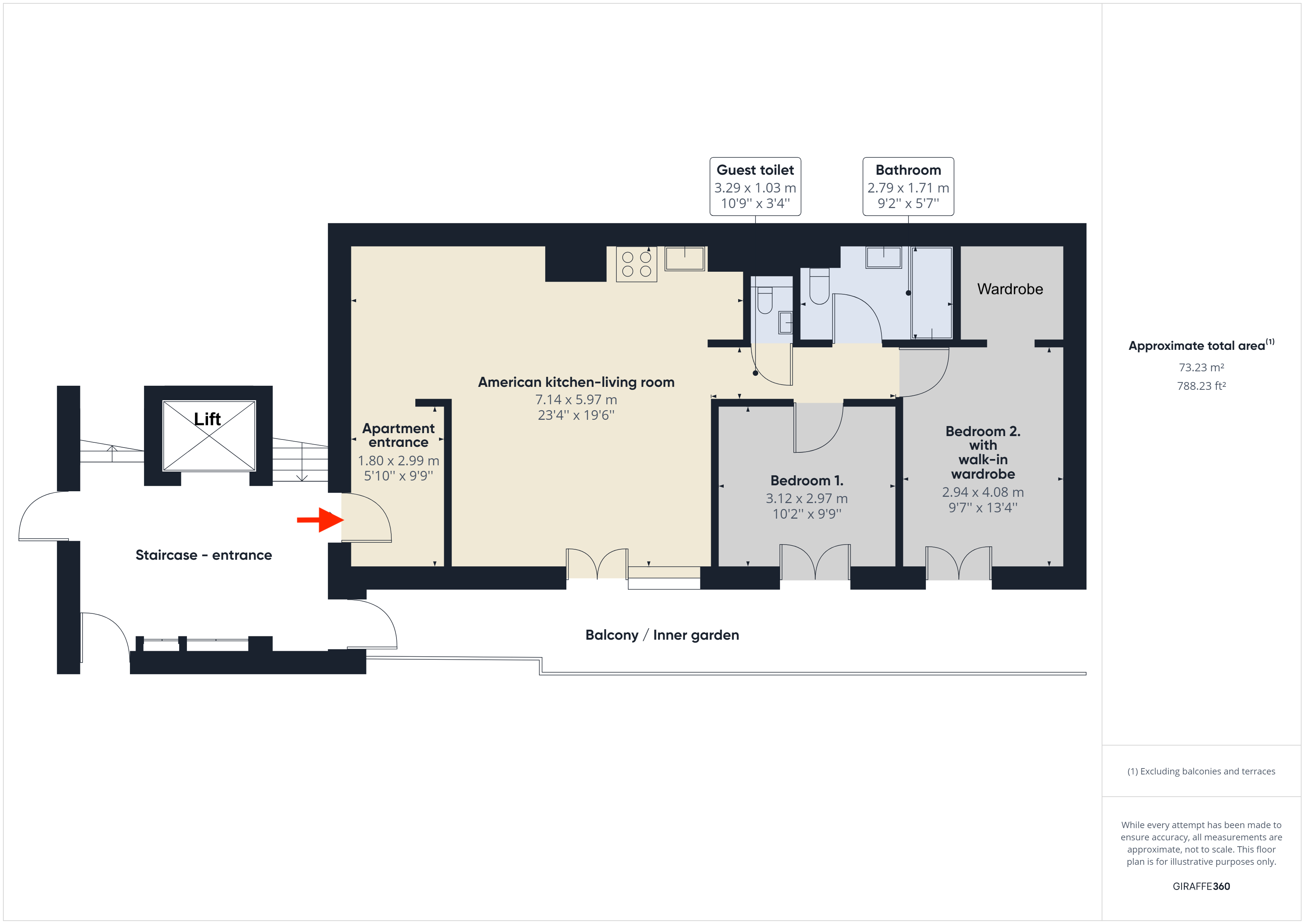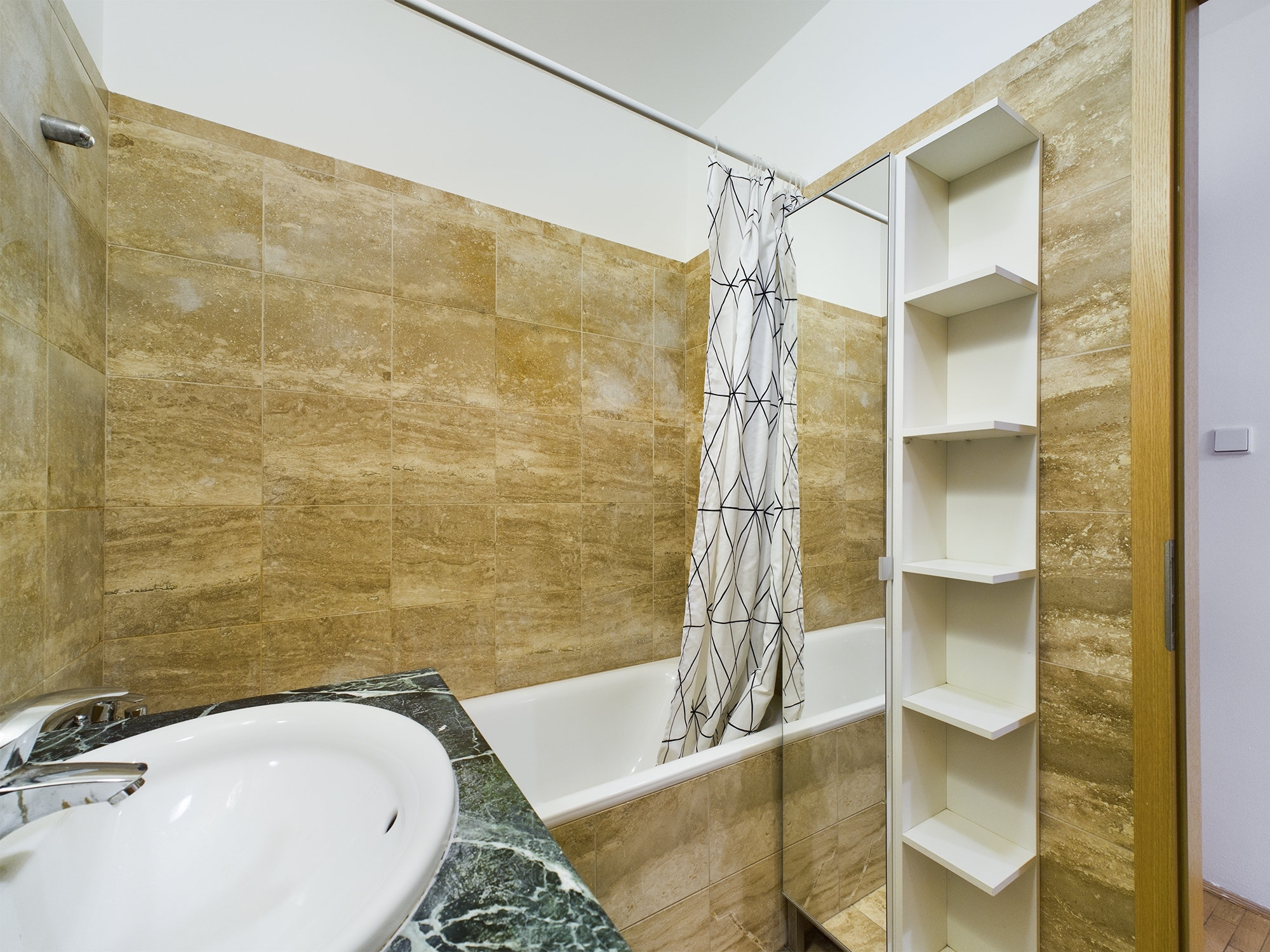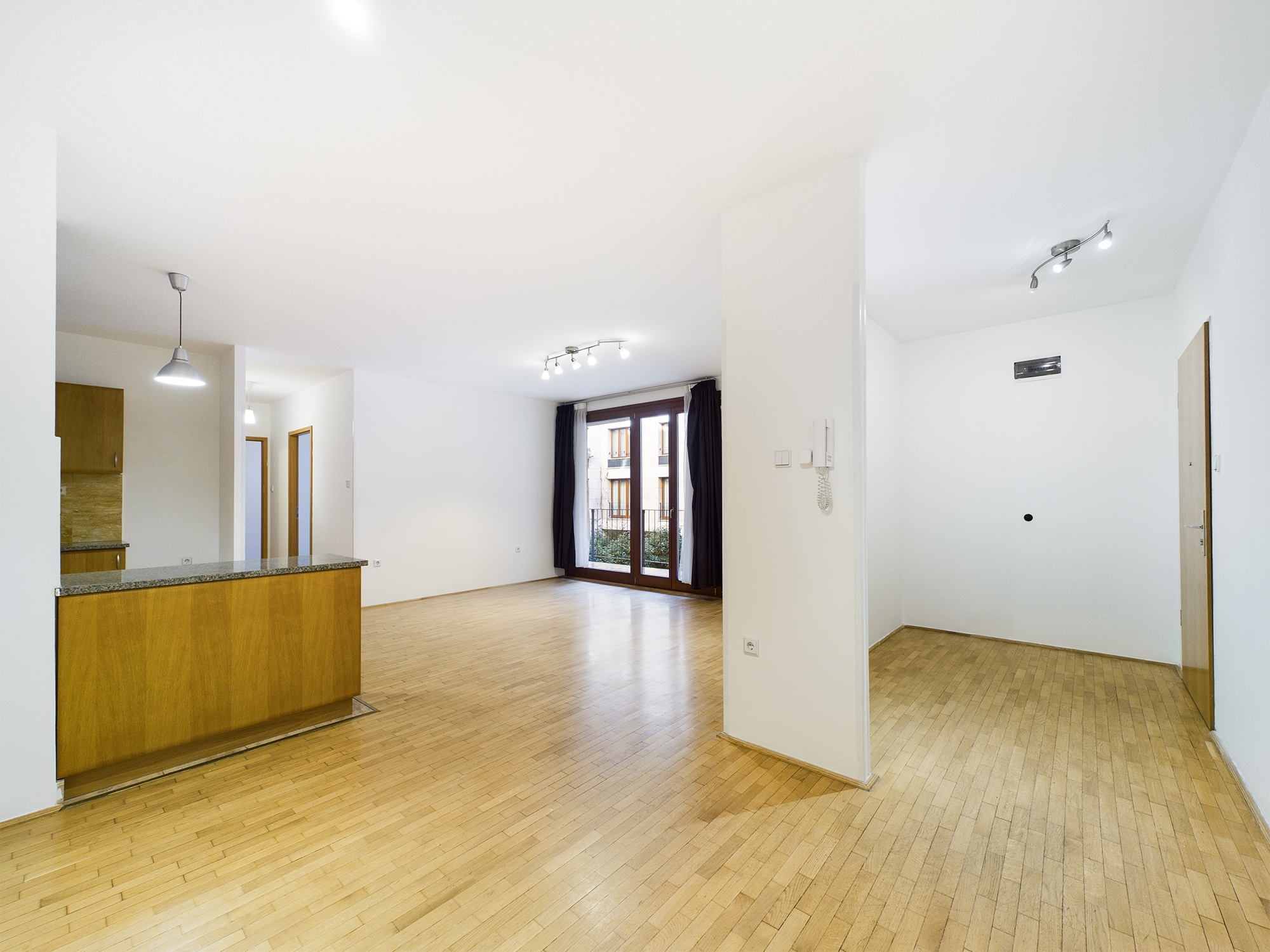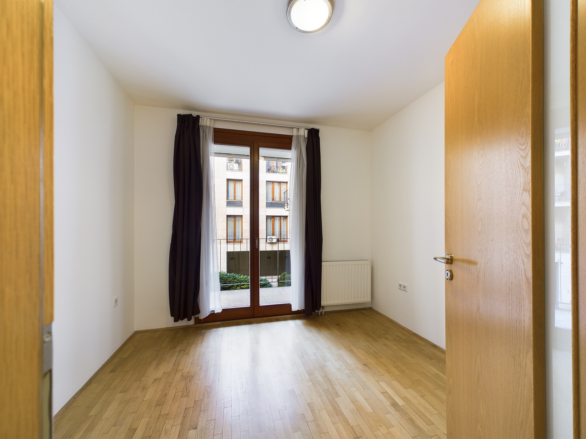 73 sqm // 1st floor apartment with green garden view // living room with American kitchen // 2 bedrooms // walk-in closet // bath with bathtub + guest toilet // 2,7m ceiling height // huge floor-to-ceiling windows // 24h reception and CCTV