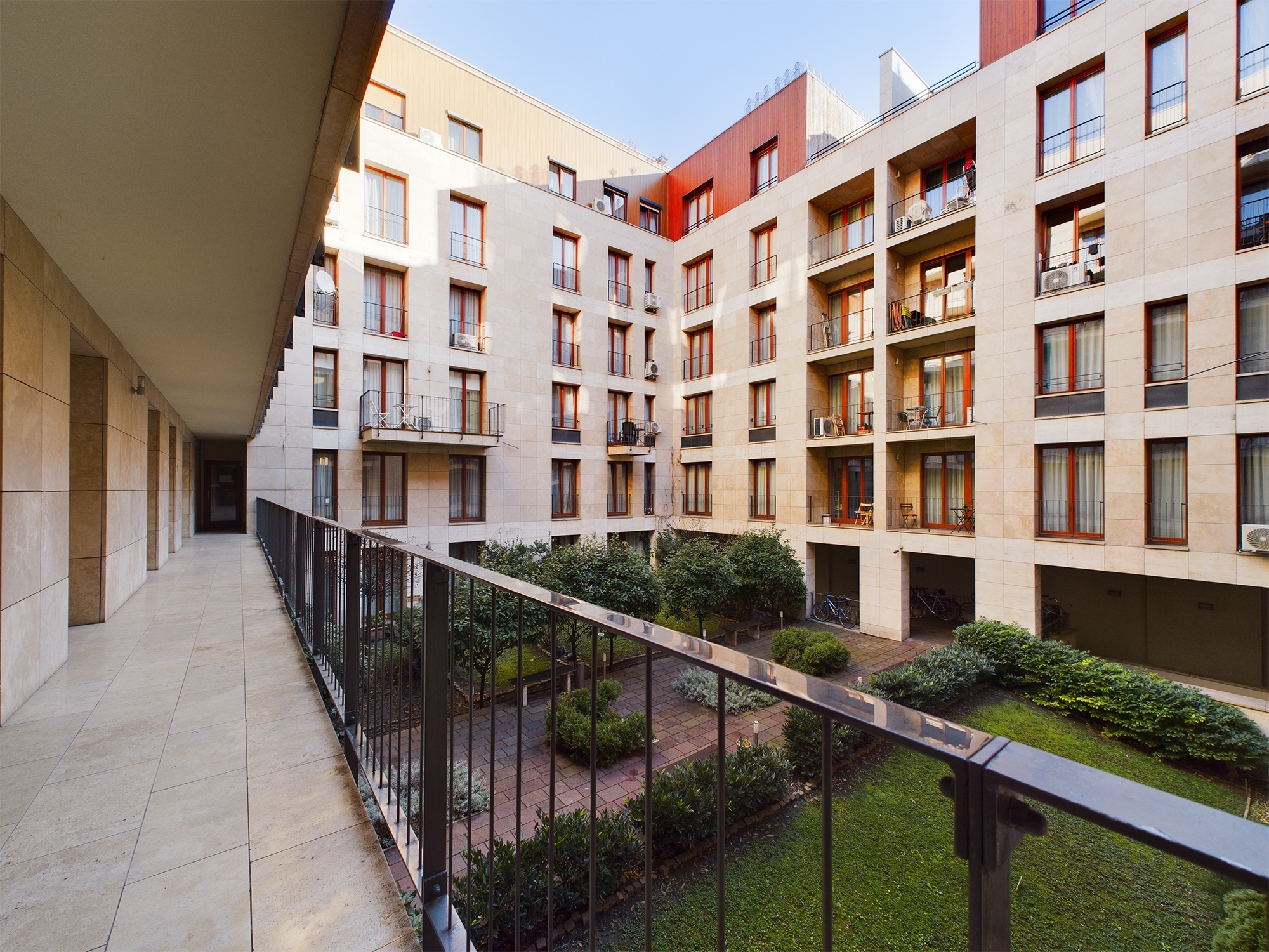 Built in 2007, the Renaissance House is a 6-storey condominium with a Mediterranean atmosphere in the heart of the Party District, opposite the Szimpla Garden. It has a 24-hour reception and a CCTV system, it consists of 2 buildings, both with lifts. The internal green garden is well-kept, the apartments facing the garden are quiet and do not overhear the noise of the always bustling Kazinczy Street. Parking is available in the two-level underground garage.