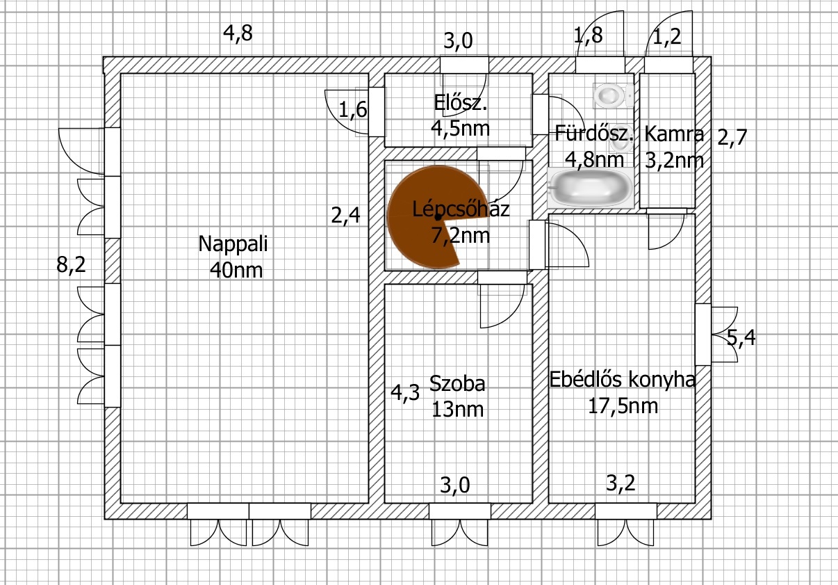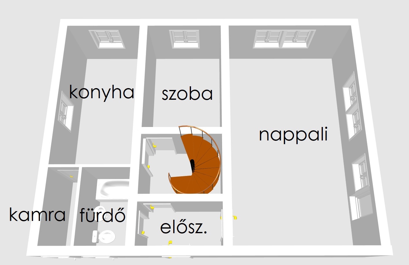 The building is structurally modern and well constructed, with reinforced concrete slab on grade 38 porotherm bricks, reinforced concrete beams, brick lining. The house is solid, it does not leak at any point, the foundation is waterproofed with bitumen. The house is situated on a hillside, has 3 levels with a total floor area of 90 sqm and a further 24 sqm attic level. The ceiling height is spacious throughout at 2.8m. The building is well constructed, the basic conditions are very good, but it needs a complete renovation.
