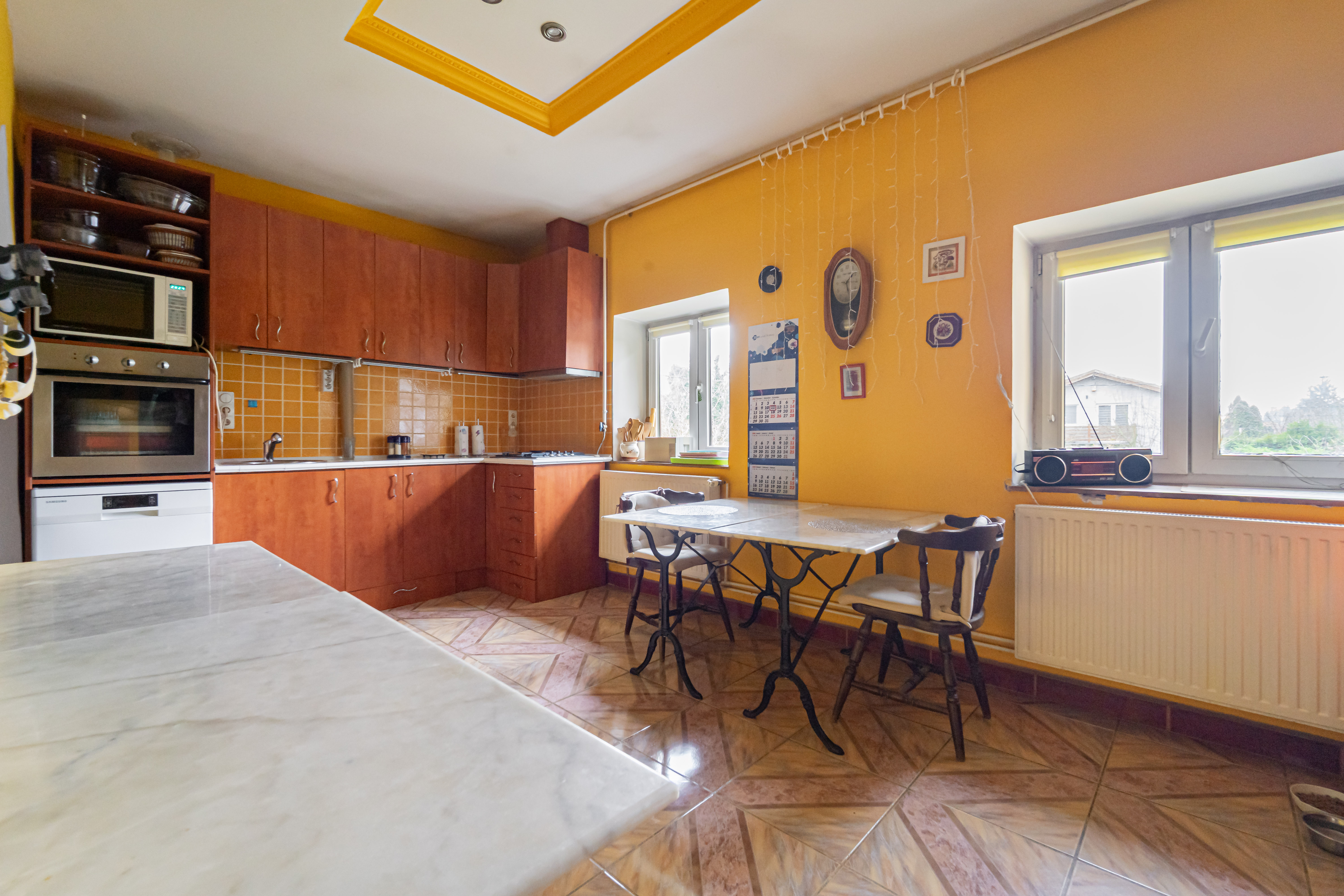 - large, sunlit kitchen