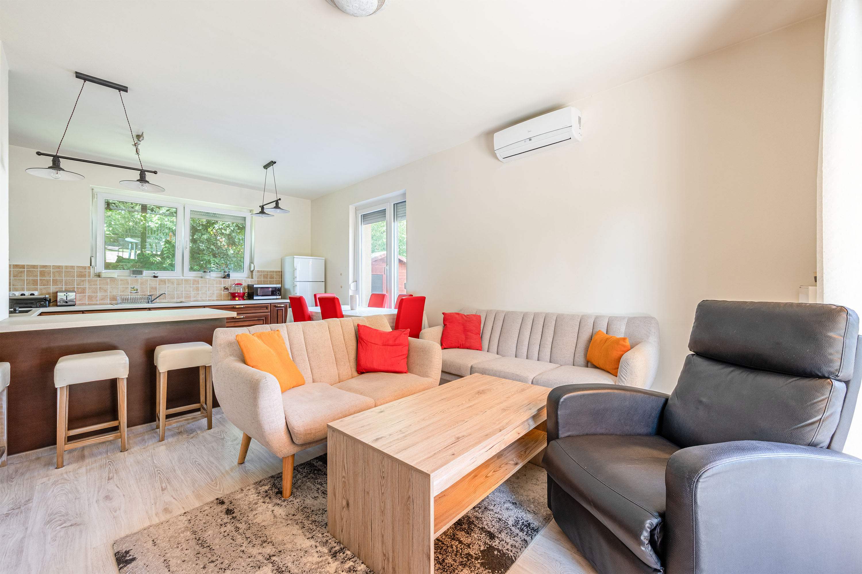 Comfort is ensured all year round with modern amenities, including air conditioning, heat pump, gas heating, and a smart home system.