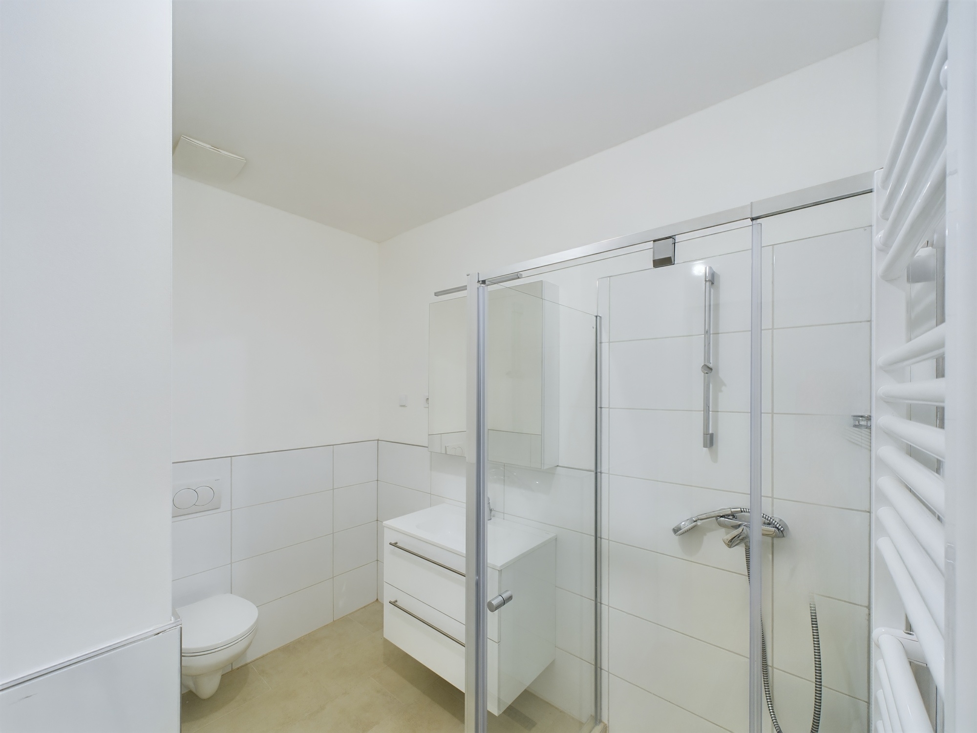 3rd floor / street level / 67m2 / 1 bedroom + en suite bathroom + wardrobe / 2 toilets / entrance hall / living room with open-plan kitchen