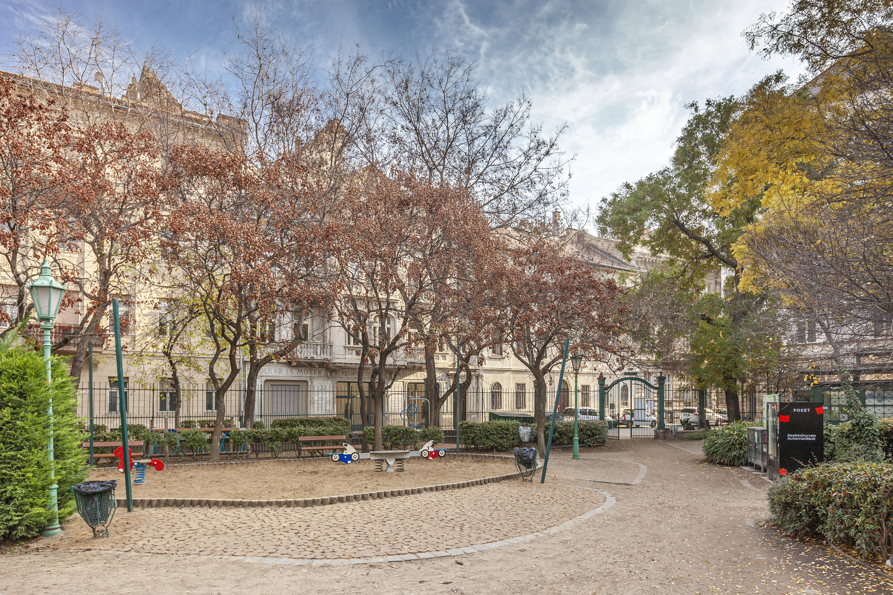The condominium at Magyar utca 26. exudes the atmosphere of a downtown palace that has been beautifully renovated. On the street front there is a art gallery, while entering the gate we are greeted by an elegantly renovated staircase. A complete renovation of the apartment has been done recently, everything is fresh and even crisp in it. Kitchen furniture is also part of the price, which is still being worked on. The result is a comfortable downtown apartment with a unique style. Its windows overlook the Károlyi Garden, which is the oldest garden in the center of Budapest, the branches of huge trees almost extend into the apartment. Here we can wake up to the chirping of birds every morning by living inside the city center. Did you know that the Károlyi Garden has one of the oldest mulberries in the country?