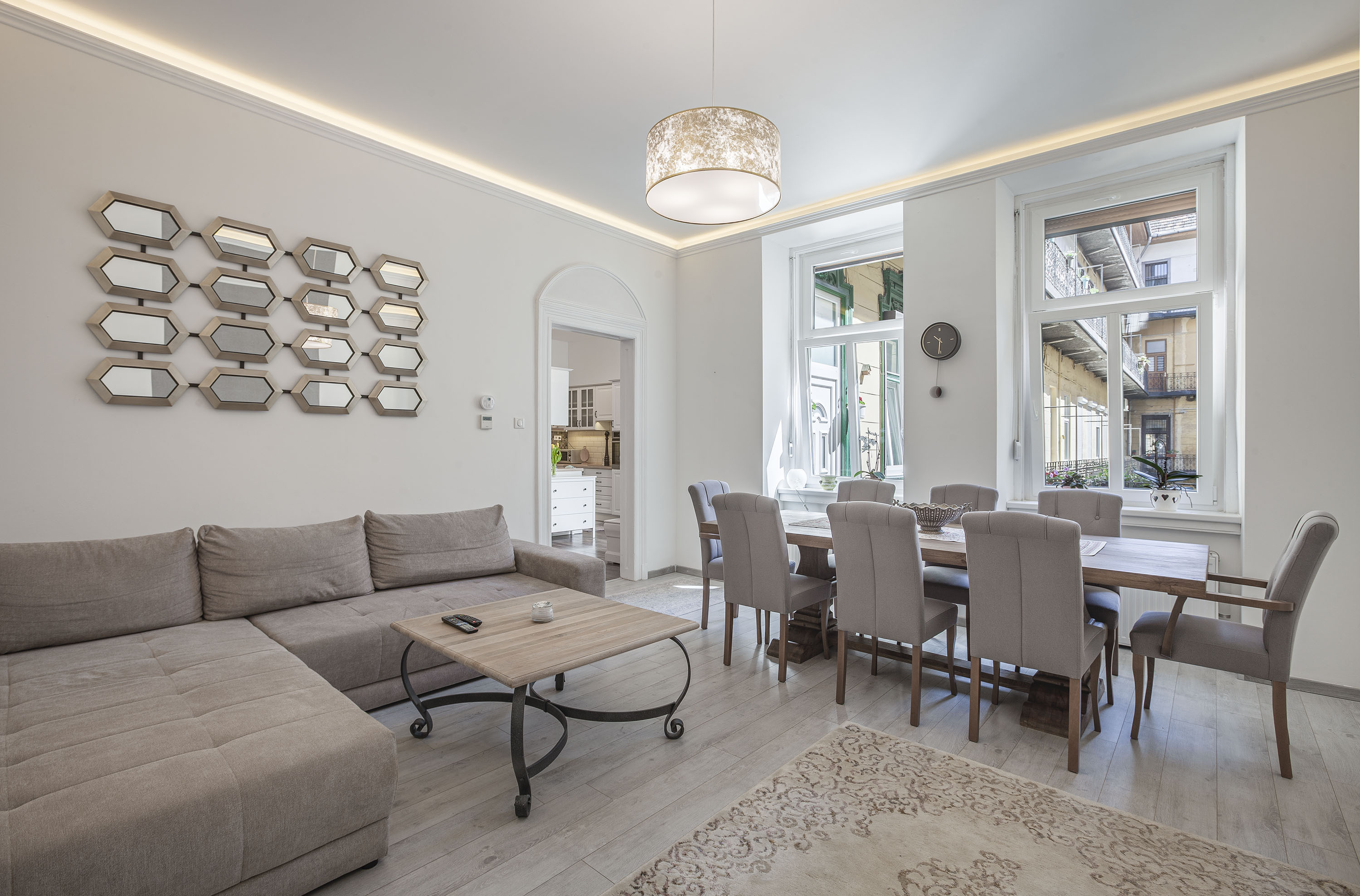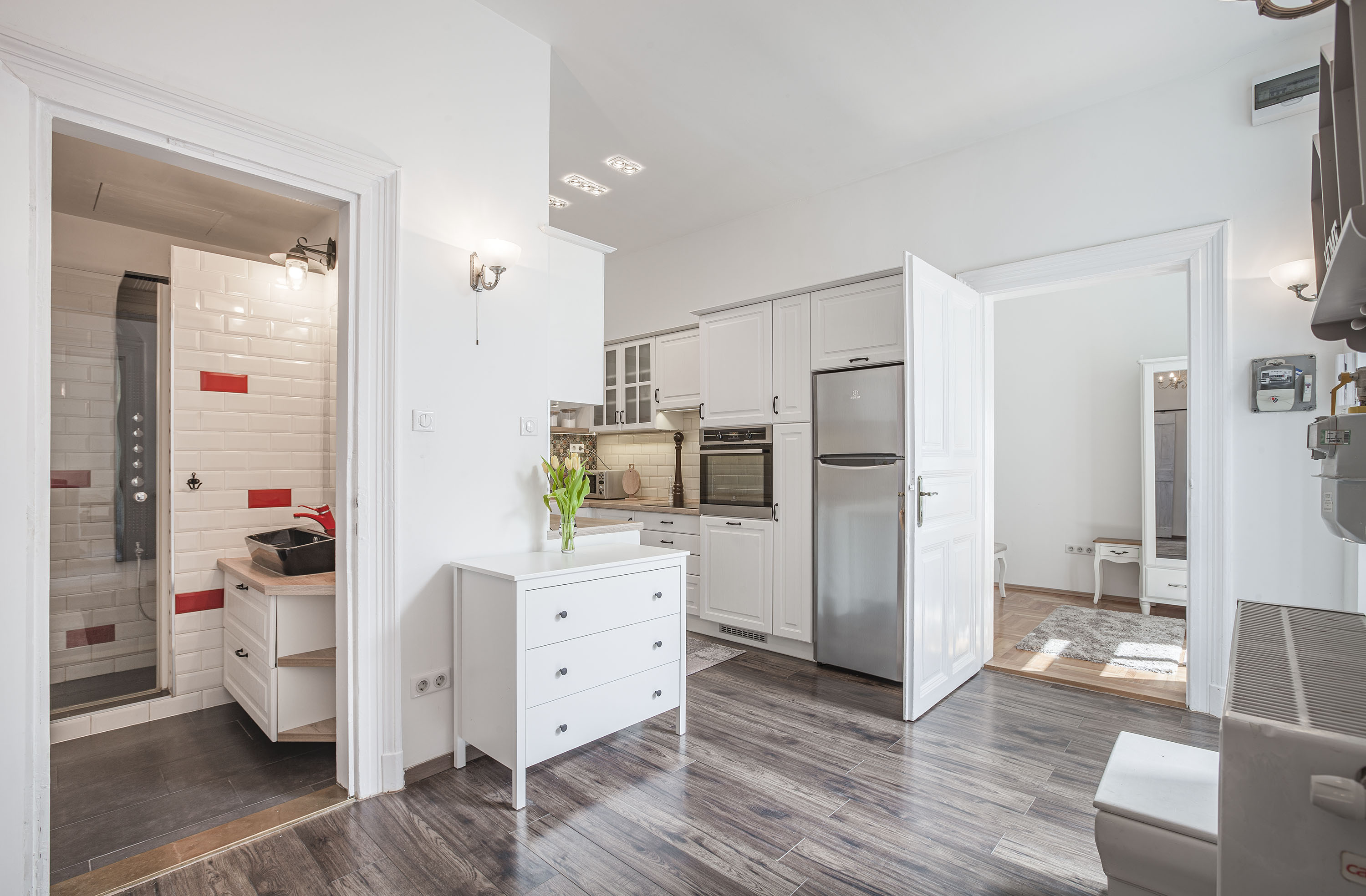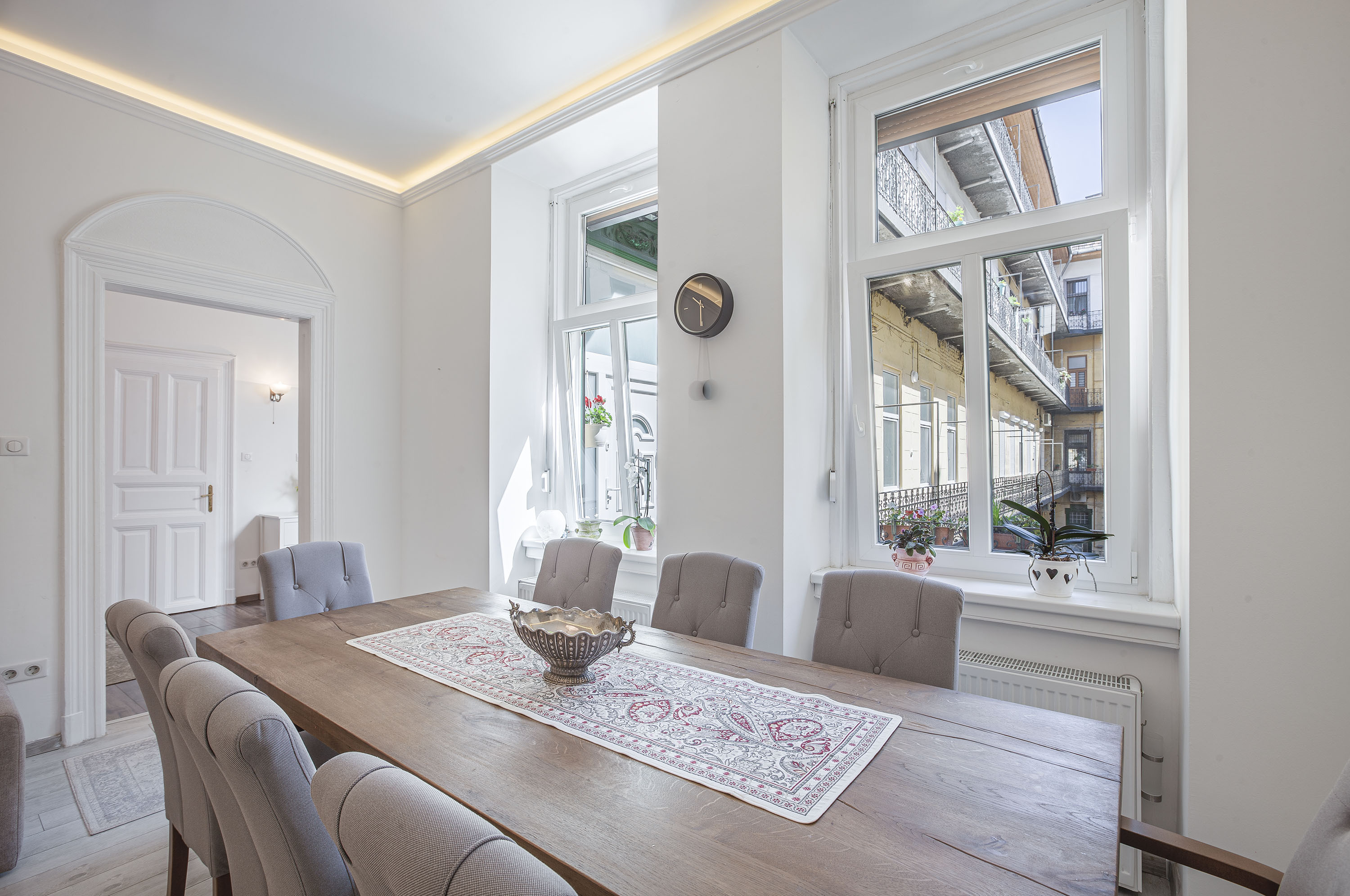 Metro M4 and tram 4 stop in Rákóczi Square, or Metro M2 in Blaha Lujza Square, a few minutes walk away. In Gutenberg Square, you will find a fantastic children’s playground. The restaurants and vibrant terraces of Mikszáth Kálmán tér, Krúdy and Lőrincz pap tér all define the surroundings of the apartment. Nursery, school, university, all can be found in the area.