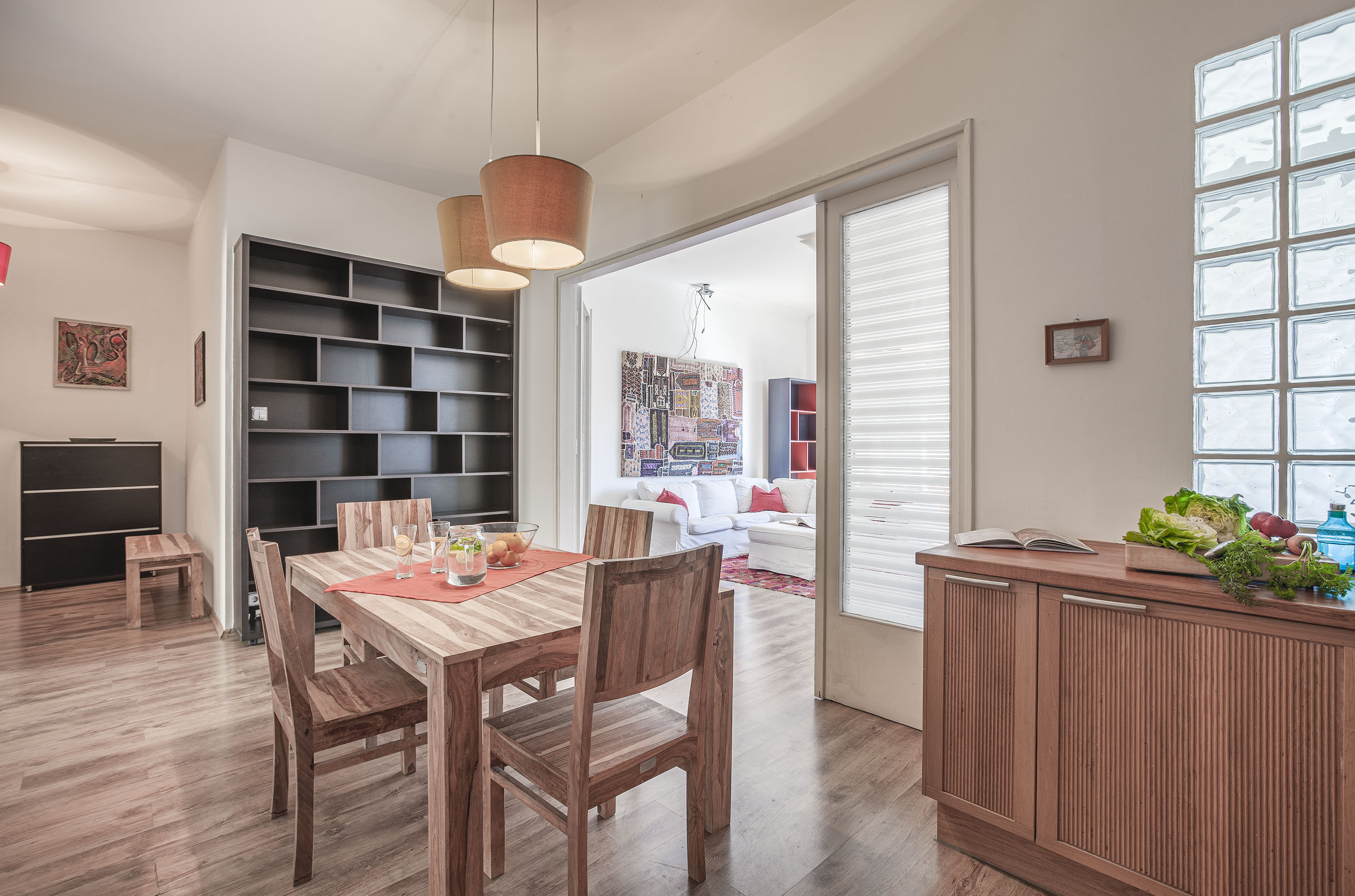 The apartment has been renovated, all wiring has been replaced and air conditioned. There is a wireless home cinema system in the living room. All you have to do is snap up the projector. Energy-efficient central heating was upgraded in 2012. A garage can be rented in the opposite Passage-house.