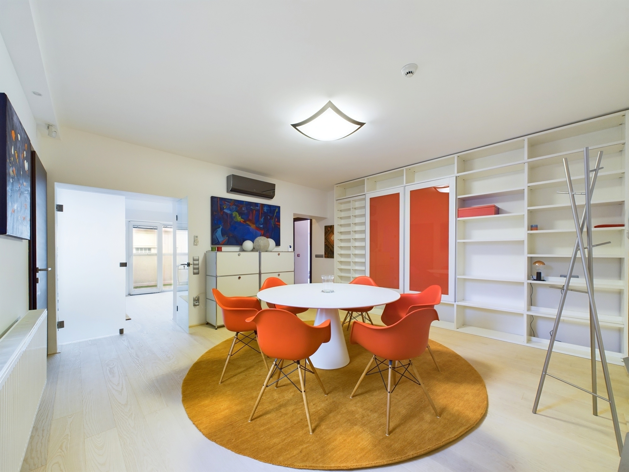 The property has an alarm system with electric shutters that lower at the touch of a button when the door is closed. The apartment is for rent with most of the furniture and artworks, all of which are protected.