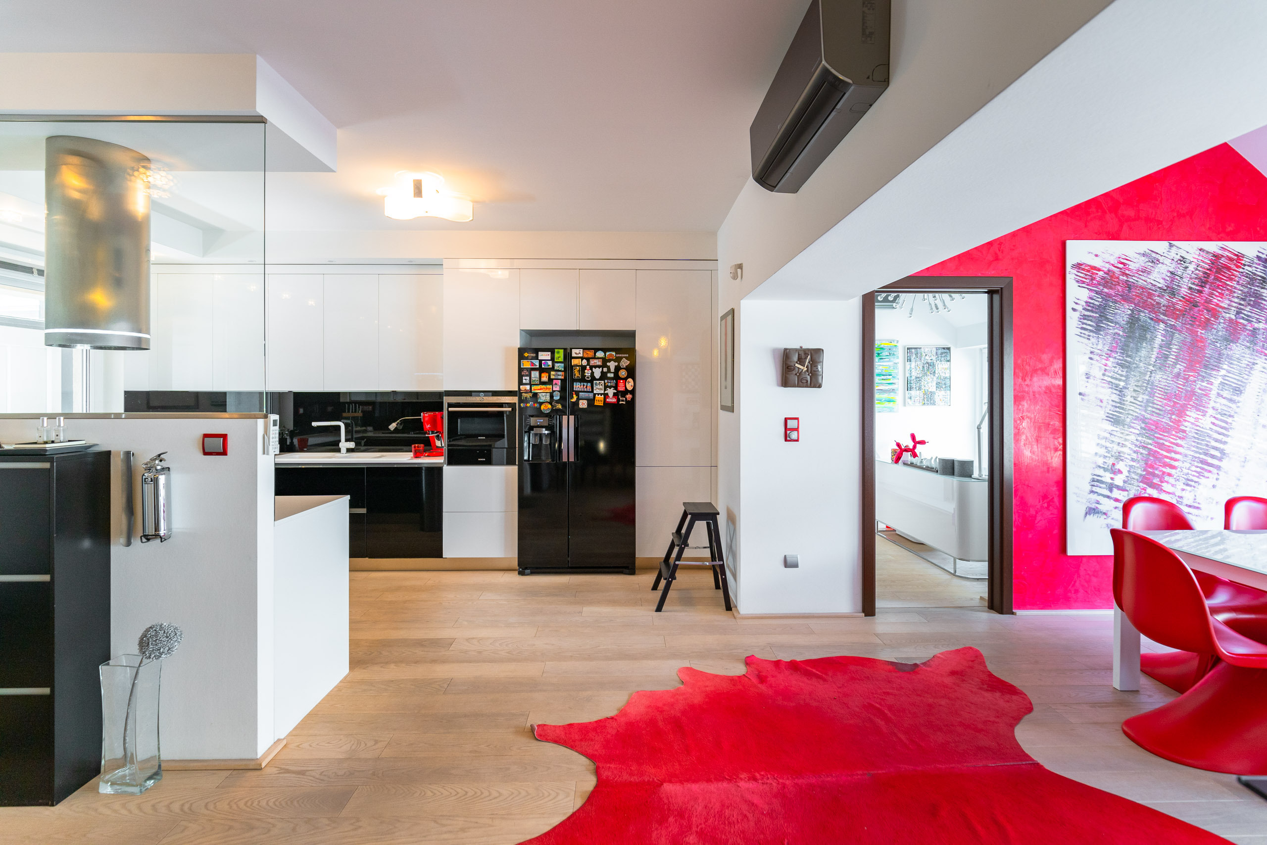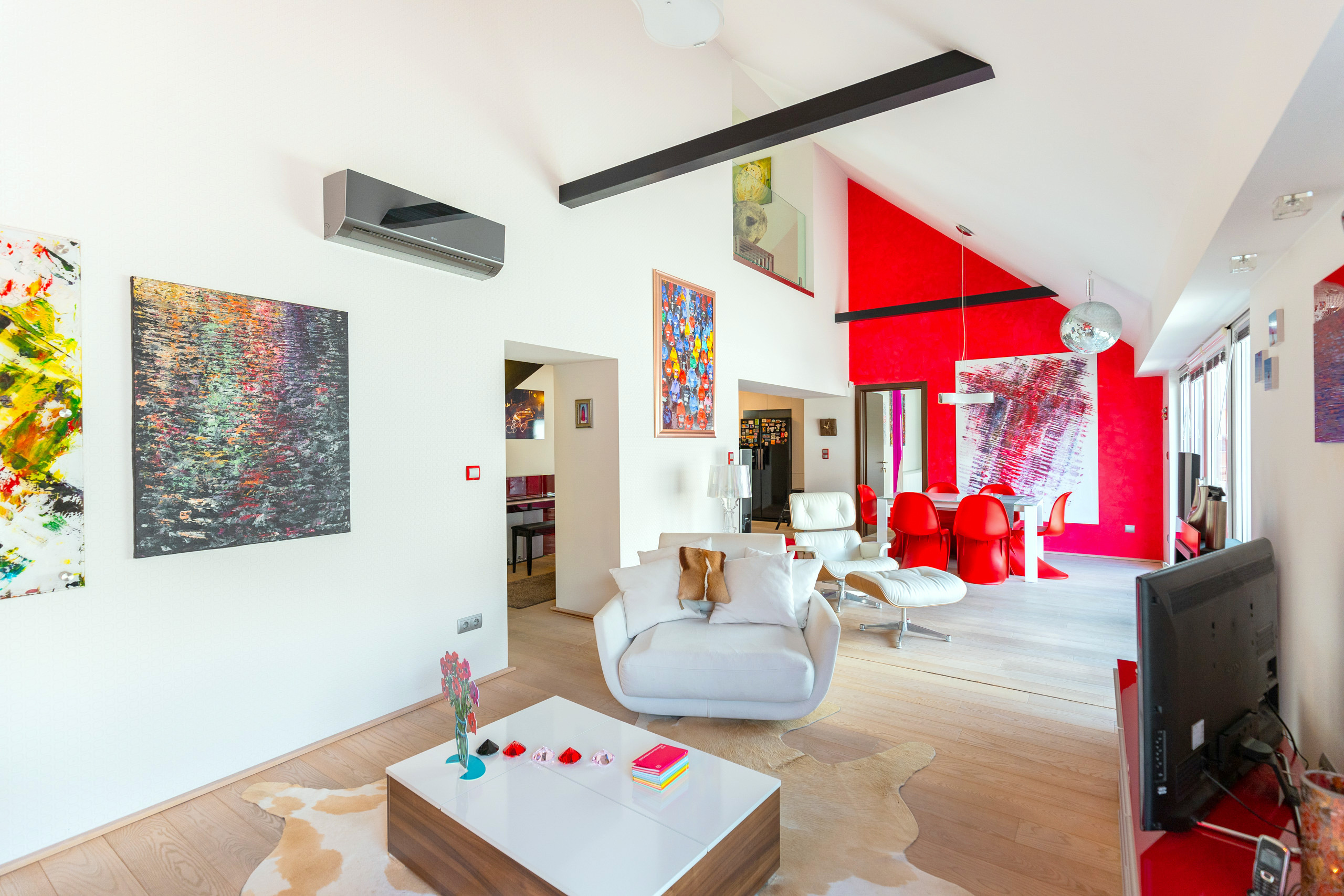 The property consists of 2 apartments in total, 4 bedrooms, 3 and a half bathrooms, 3 terraces, designer furniture (BoConcep, Charles & Ray Eames etc.) and artworks, paintings. The smaller apartment can be used as a guest apartment/office. If required, it can be completely separated permanently.