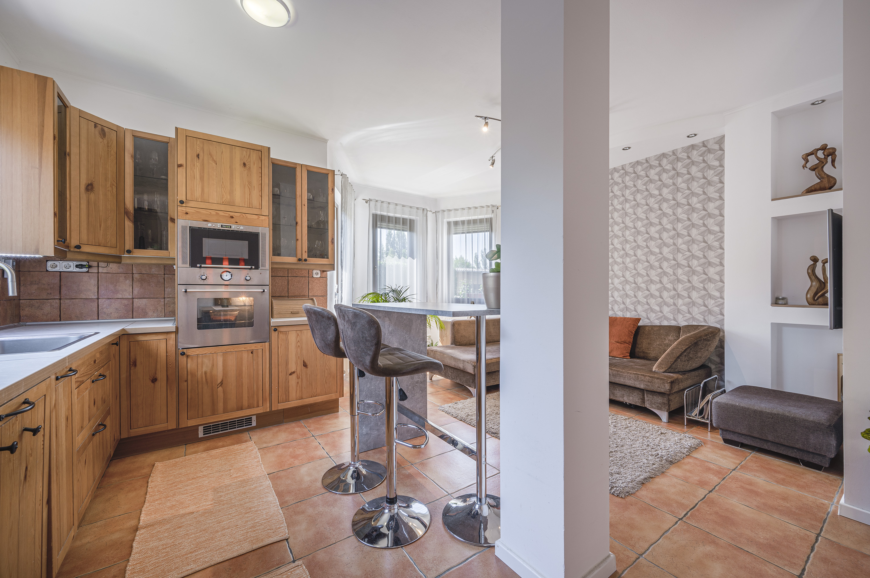 4 bedrooms // 2 bathrooms + separate guest toilet // living room with American kitchen sunny living room with garden connection // modern kitchen with appliances // from the dining room we step directly out onto the 20 sqm terrace through a sliding terrace door // built-in wardrobe in the master bedroom // the two upstairs children's rooms have a common balcony // functionally and aesthetically renovated in 2021 // quiet and tidy environment and residential community