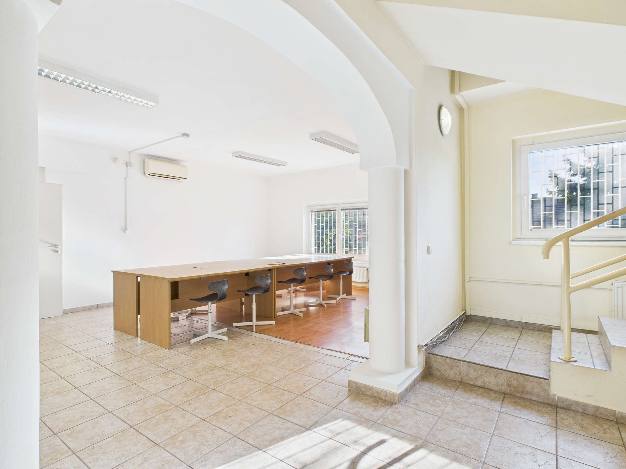 • The basement level is heated and, thanks to its 2m ceiling height and windows, can be used for a variety of purposes. It could be a communal space (ping-pong, foosball table), or even a staff apartment.