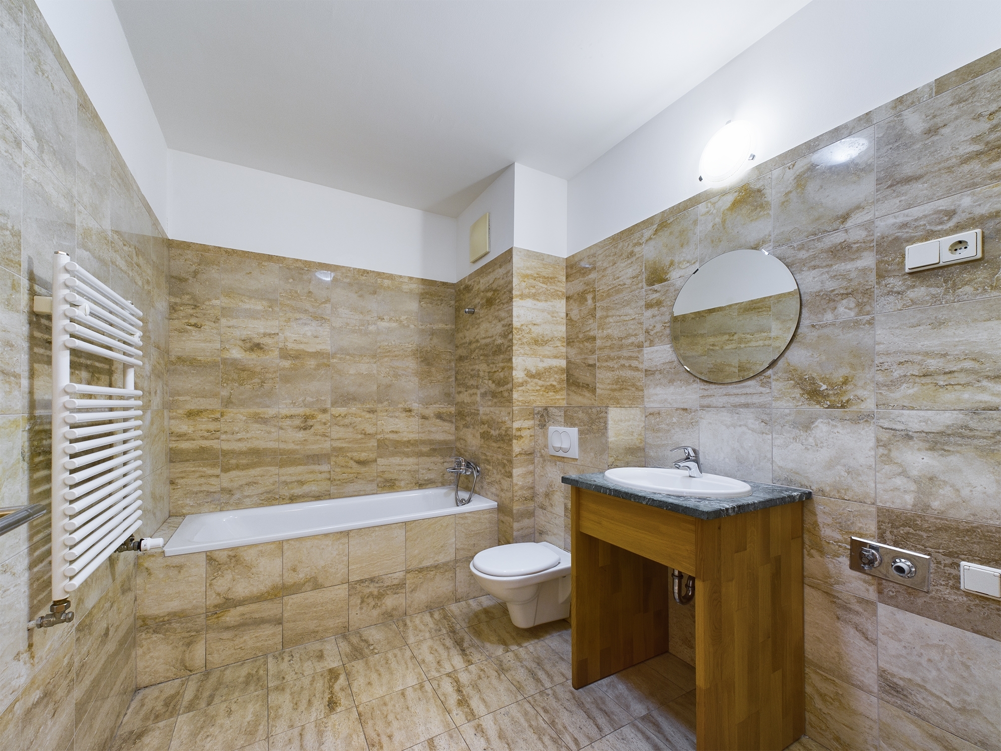 - a tágas fürdőben kád és WC, valamint mosógép kiállás