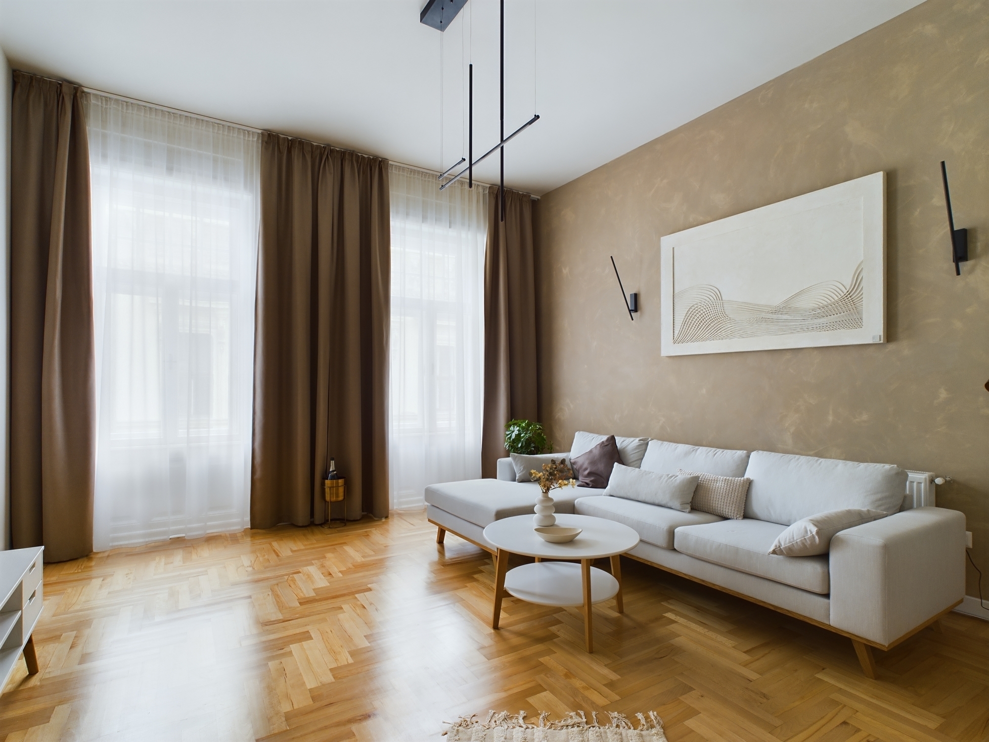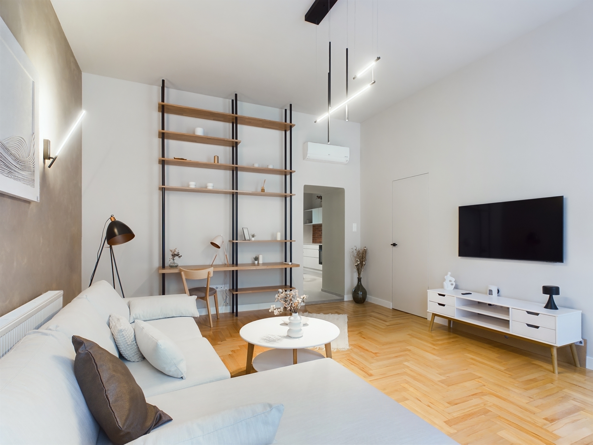 Az V. kerületben, a Hold utcai piac mellett, a Nagysándor József utca 3.szám alatt, kiadó egy gyönyörűen felújított, lakberendező segítségével kialakított, 2 szobás design lakás.