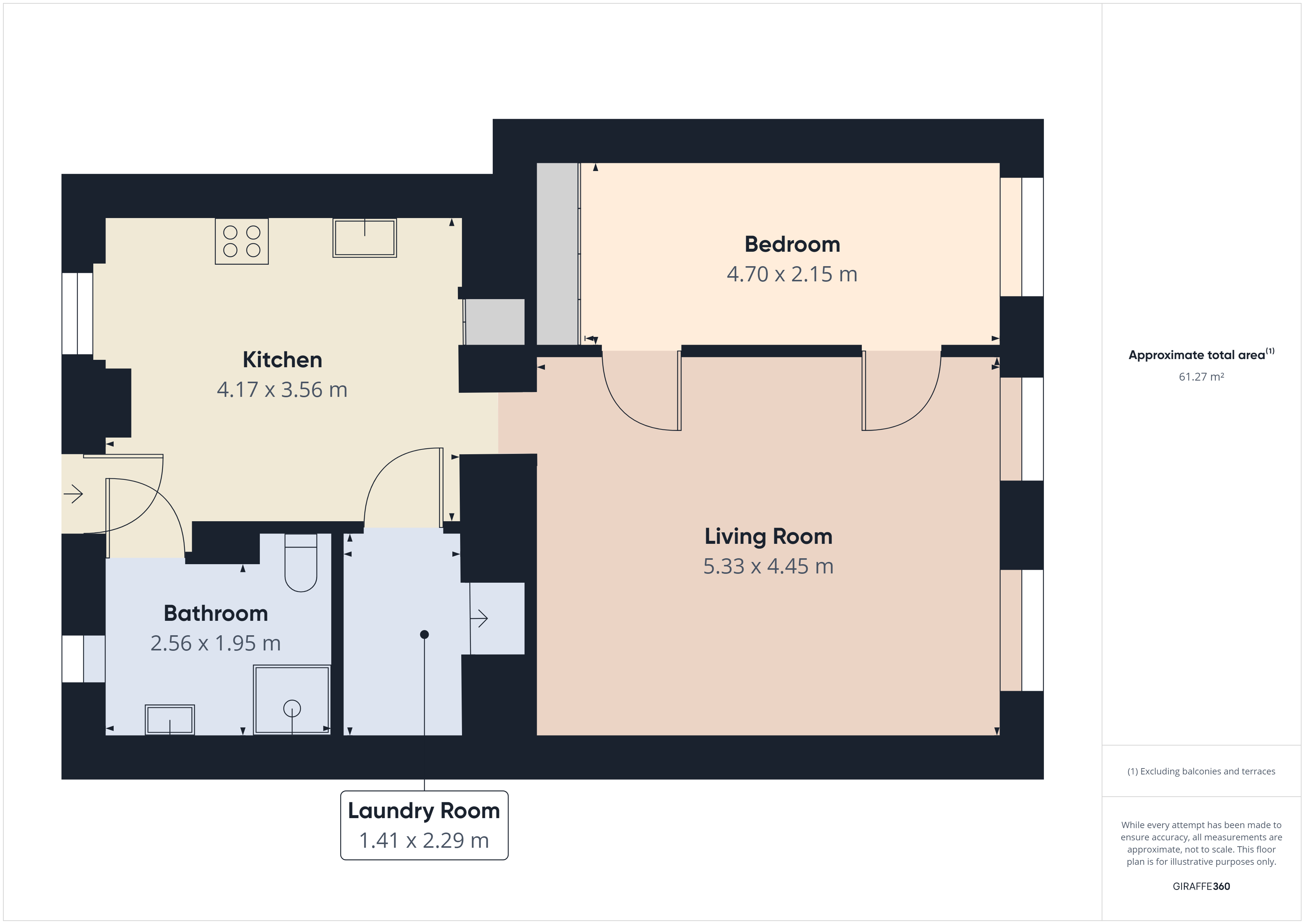 Az ingatlan 61 m2, tágas konyha + étkező, nappali, hálószoba, gardrób szoba, fürdőszobából áll.