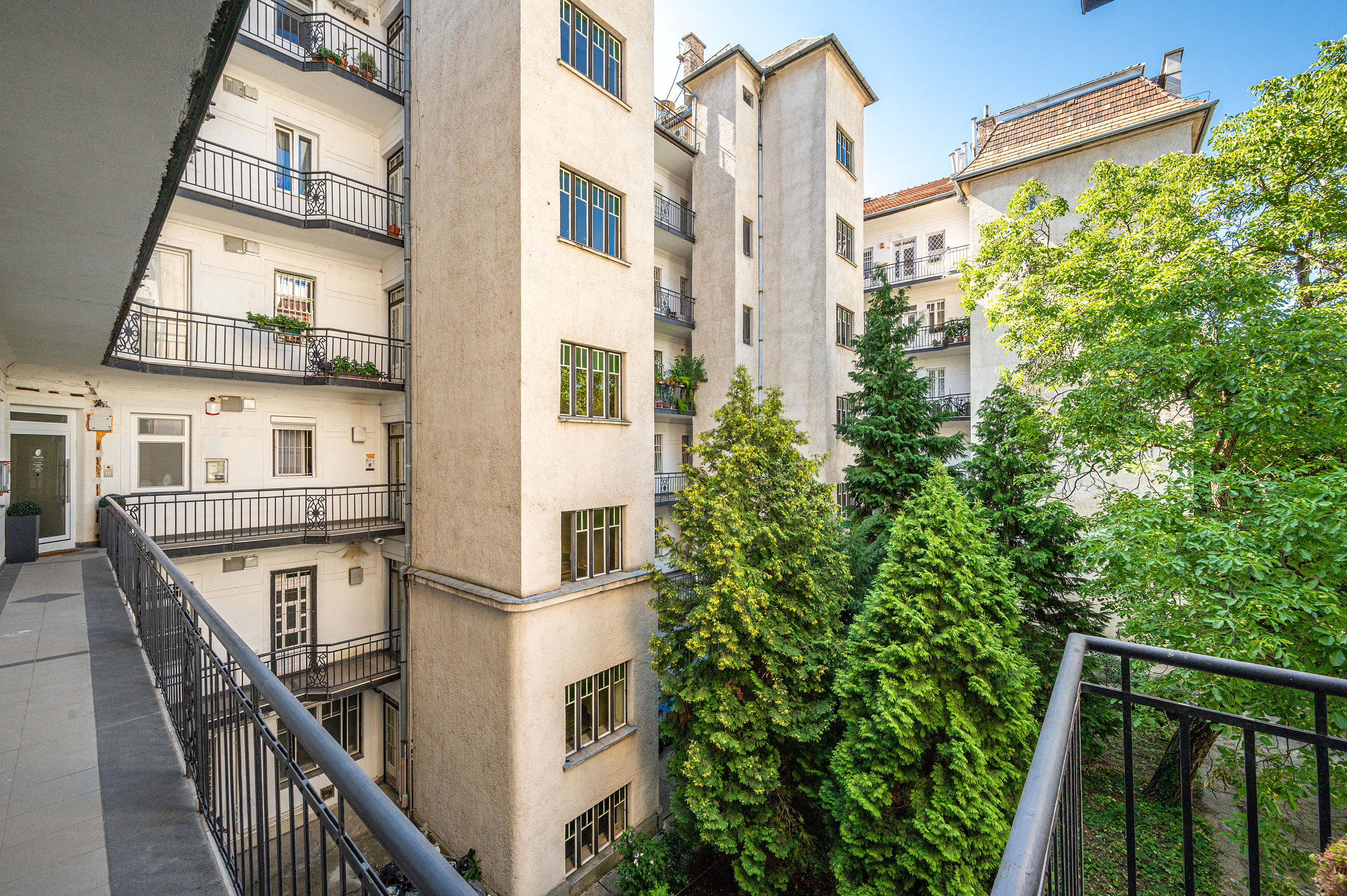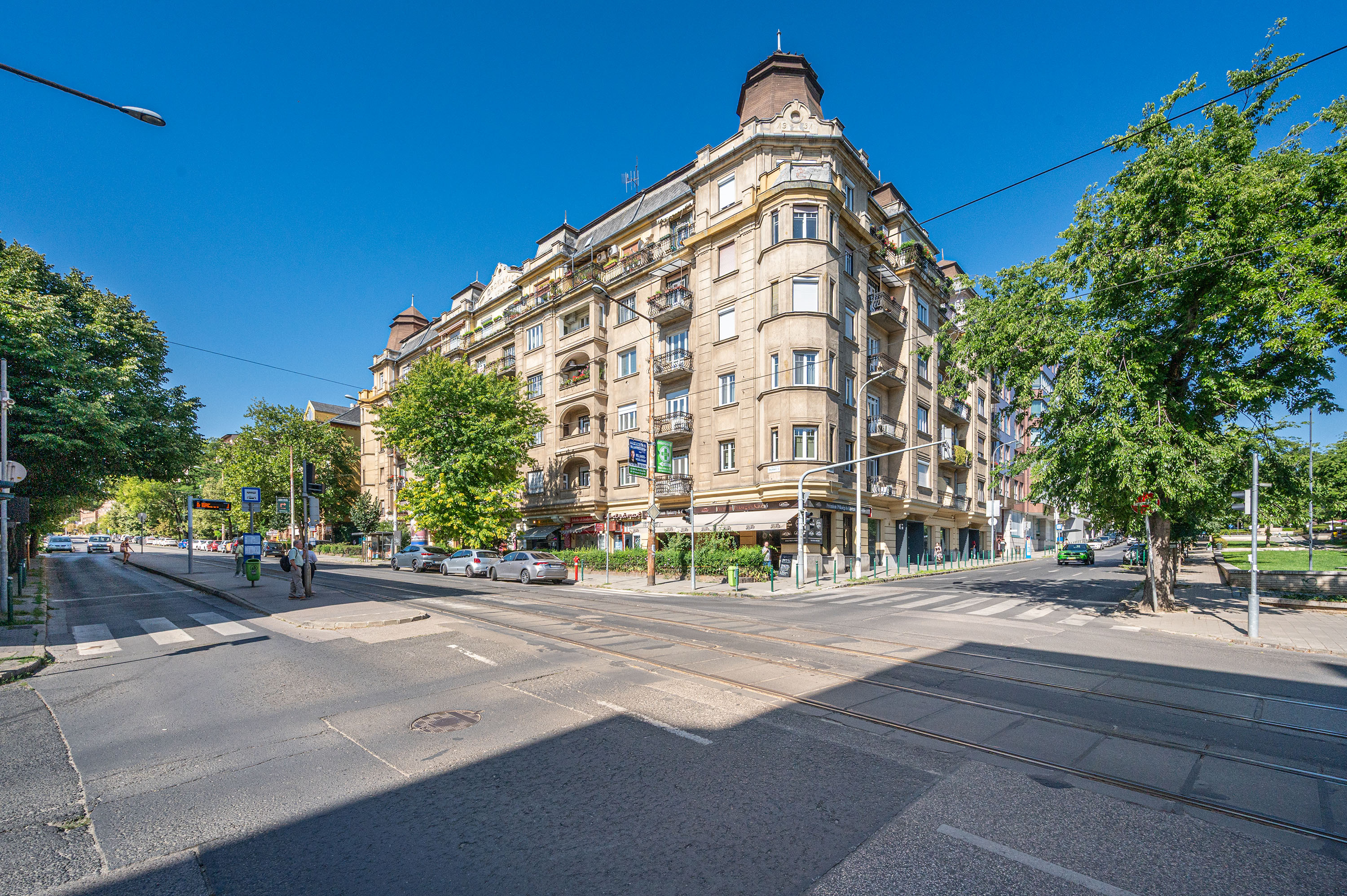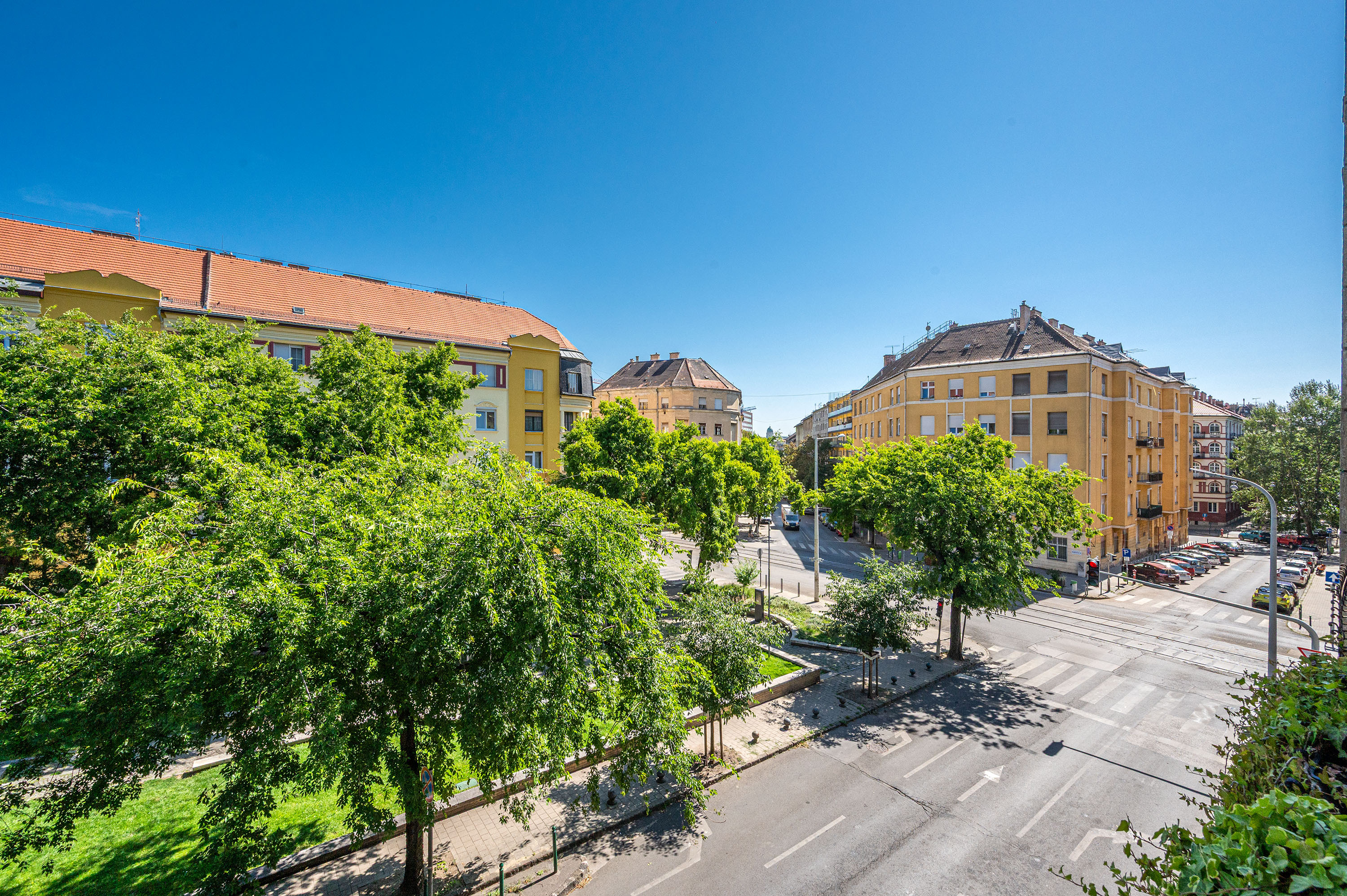 The condominium is located on the corner of Böszörményi út and Királyhágó tér. The apartment's windows overlook the quiet inner garden at the rear and the green foliage of Királyhágó Square – no severe noise. The apartment gets direct sunlight from both sides, which is very important in these kind of buildings.