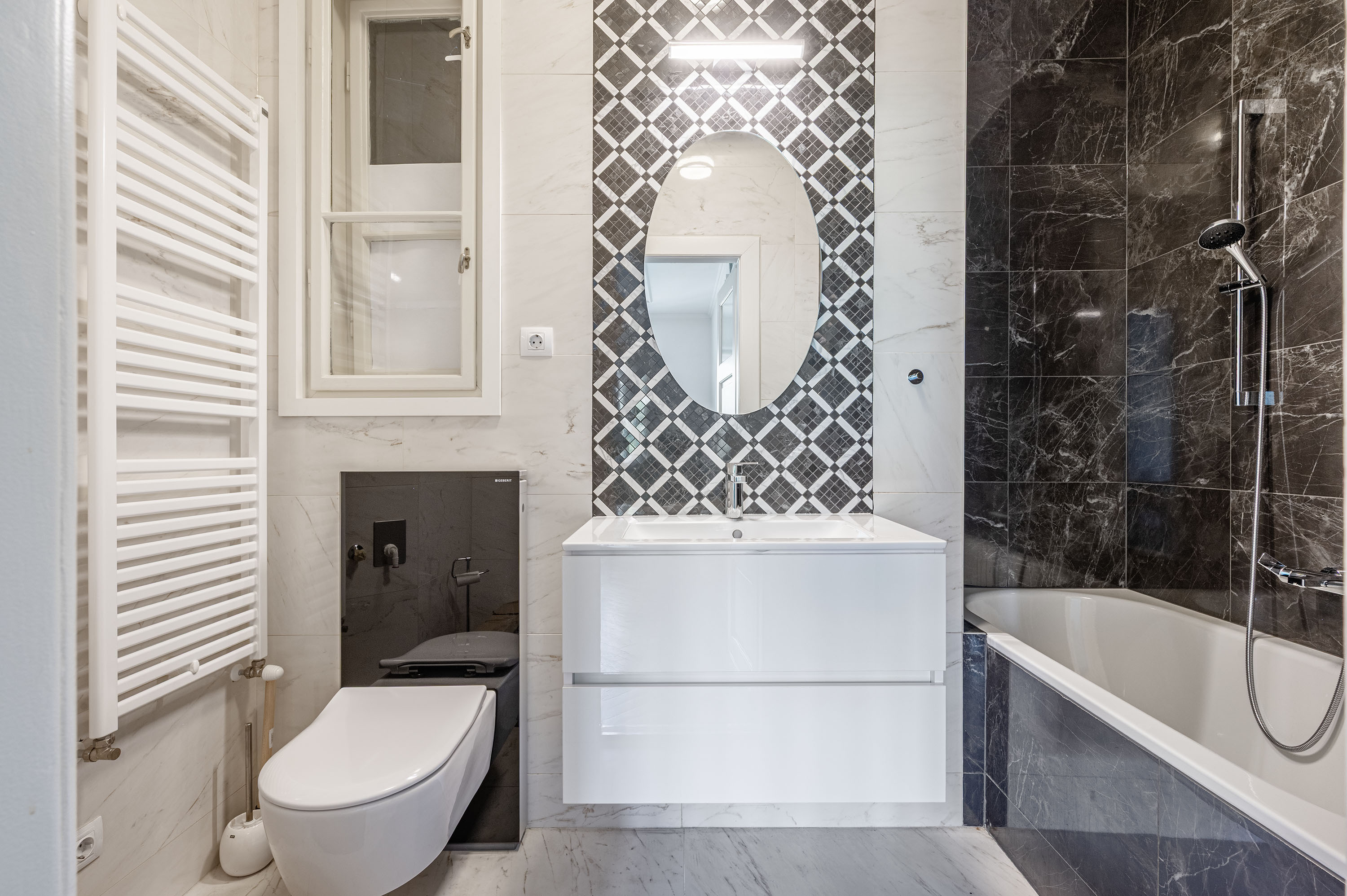 A lakás fűtésrendszere is megújult, kondenzációs kombi-cirkó adja a hőt. A hőleadók az eredetihez hasonló, de vadonat új, klasszikus, lábas, öntöttvas radiátrok.