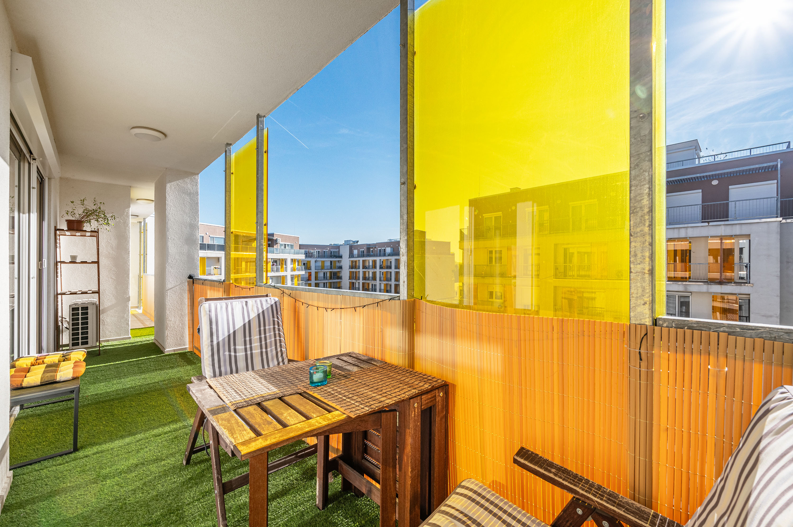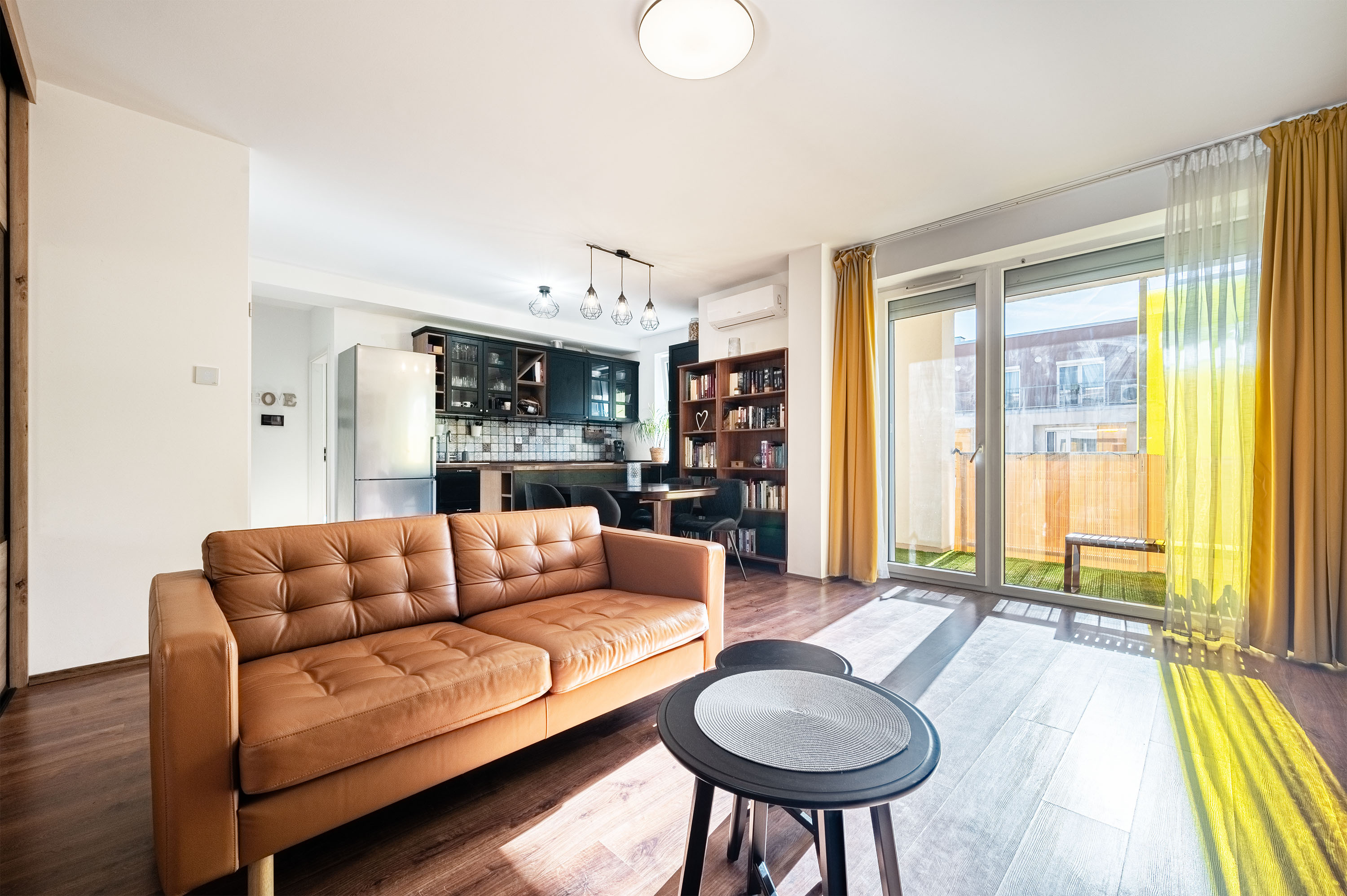 A pihentető napfény betölti az egész lakást.