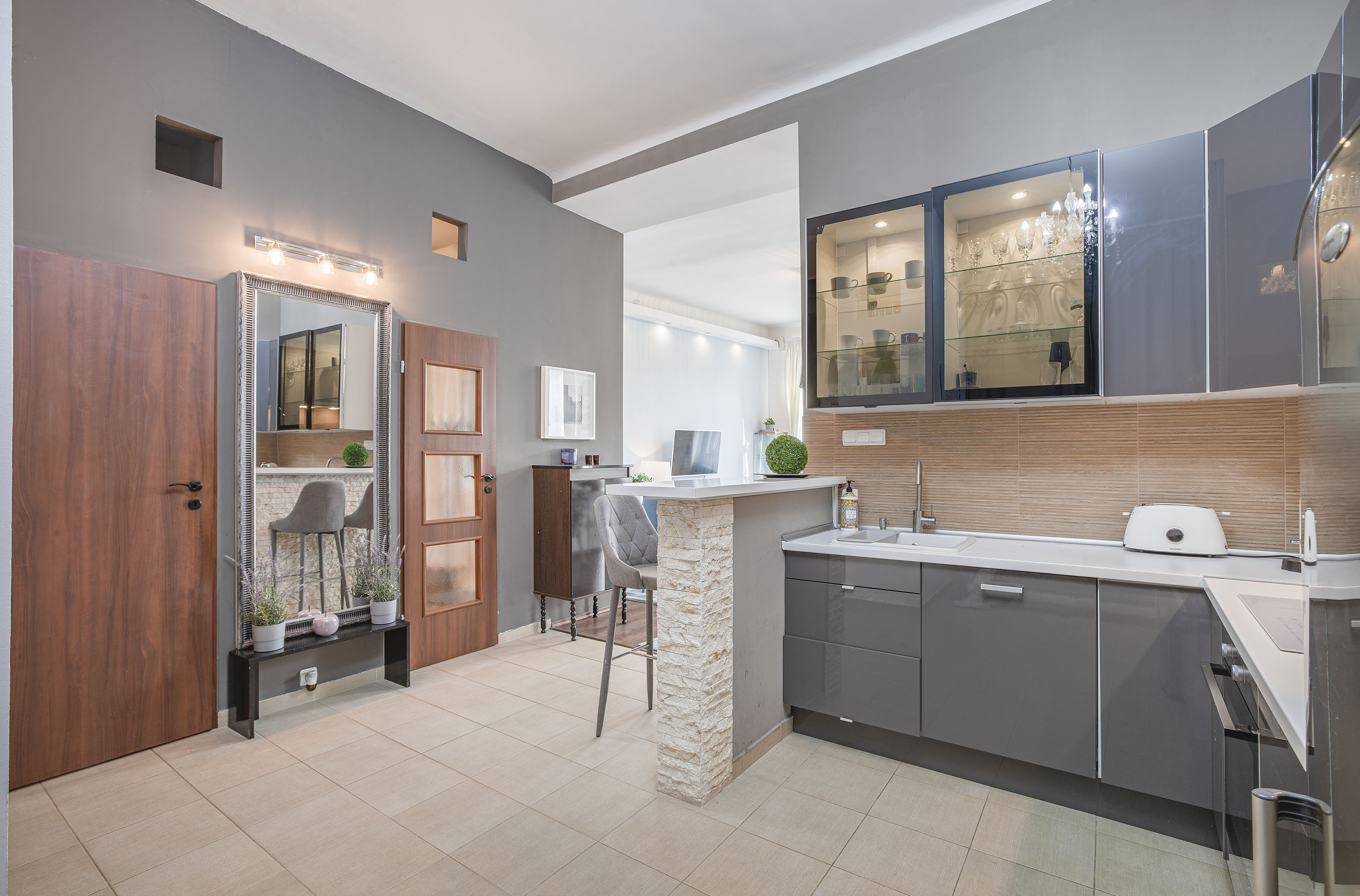 Élvezze a modern, kulcsrakész otthont, magas belmagassággal, korszerű konyhai gépekkel és stílusos berendezéssel.