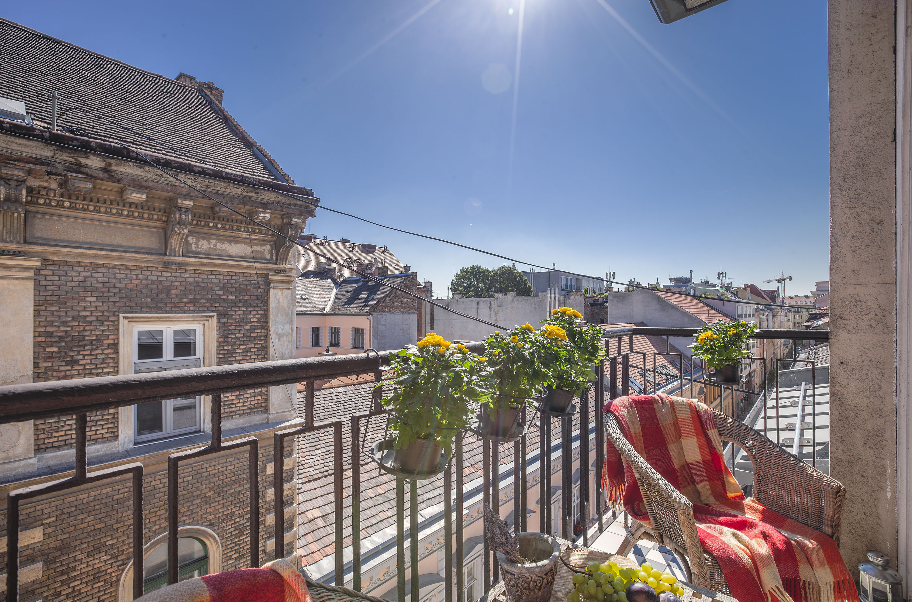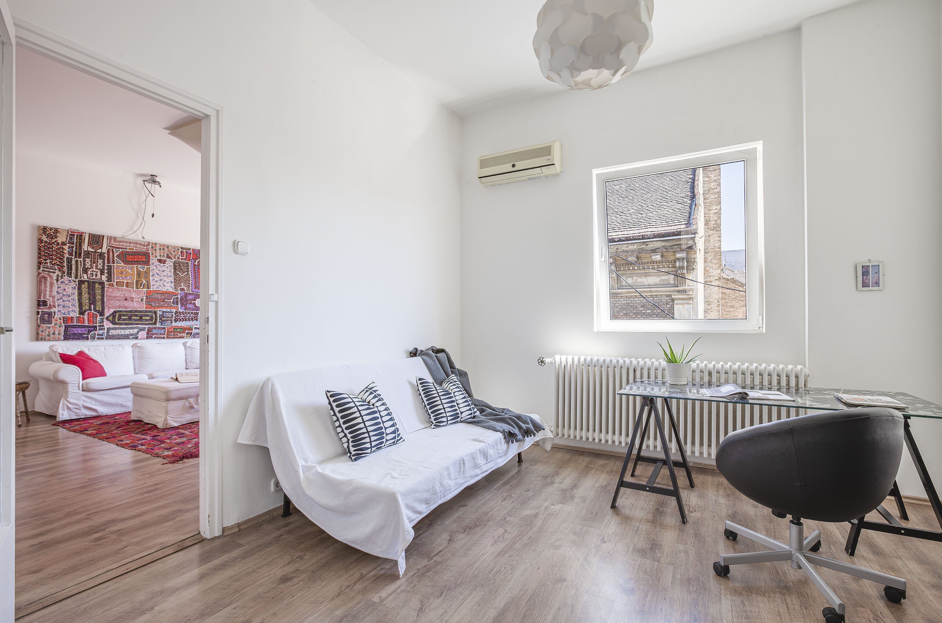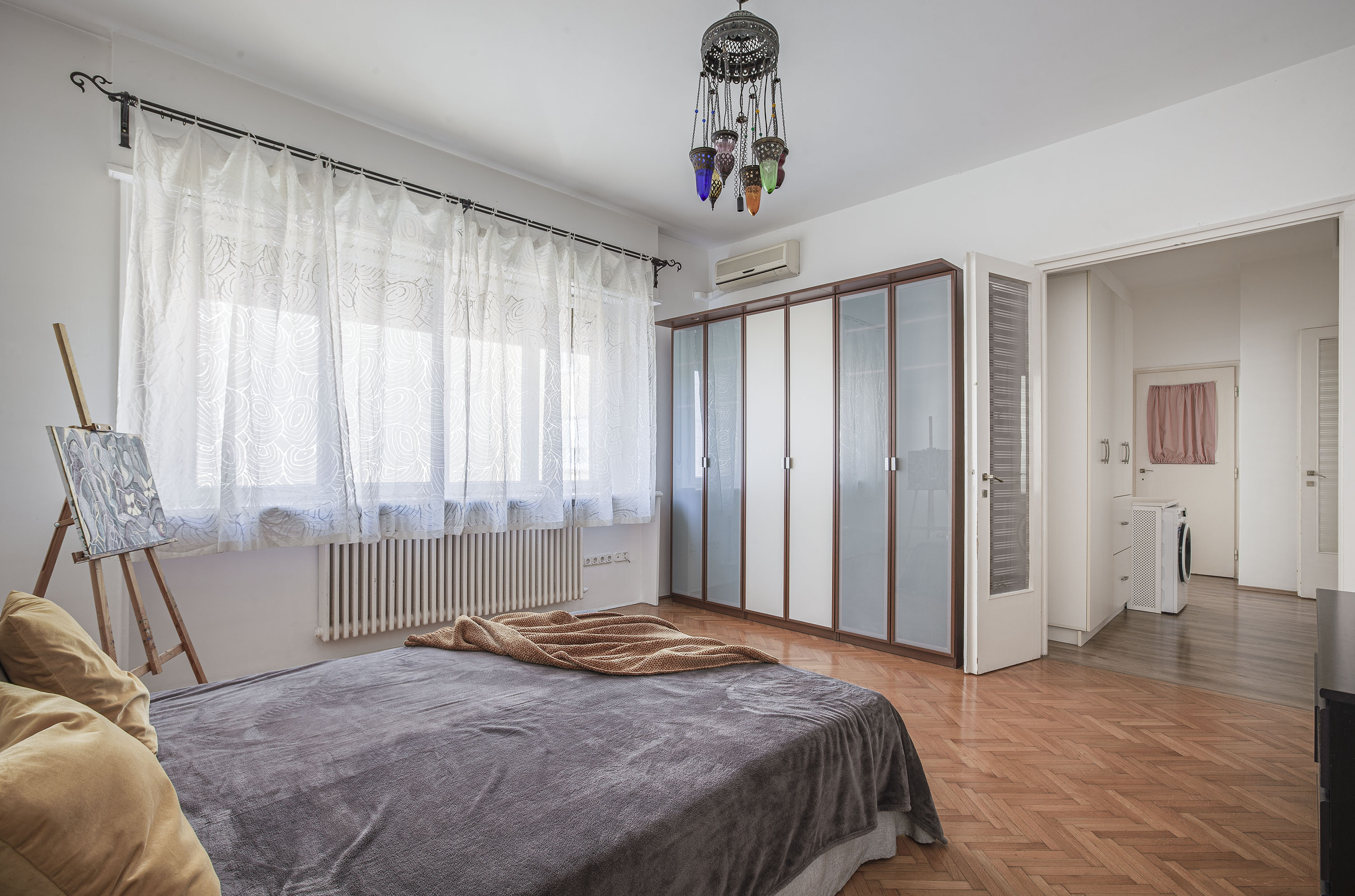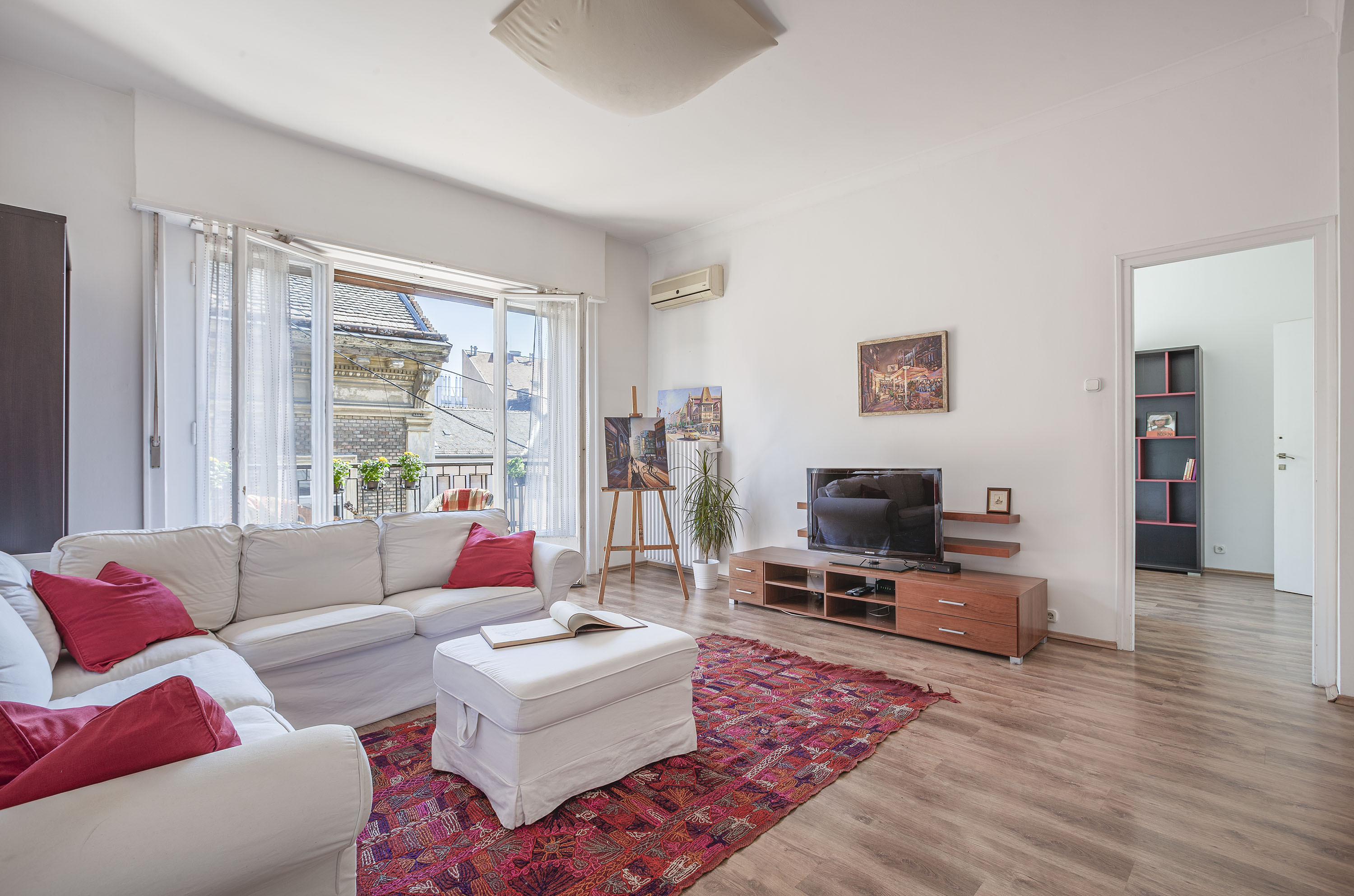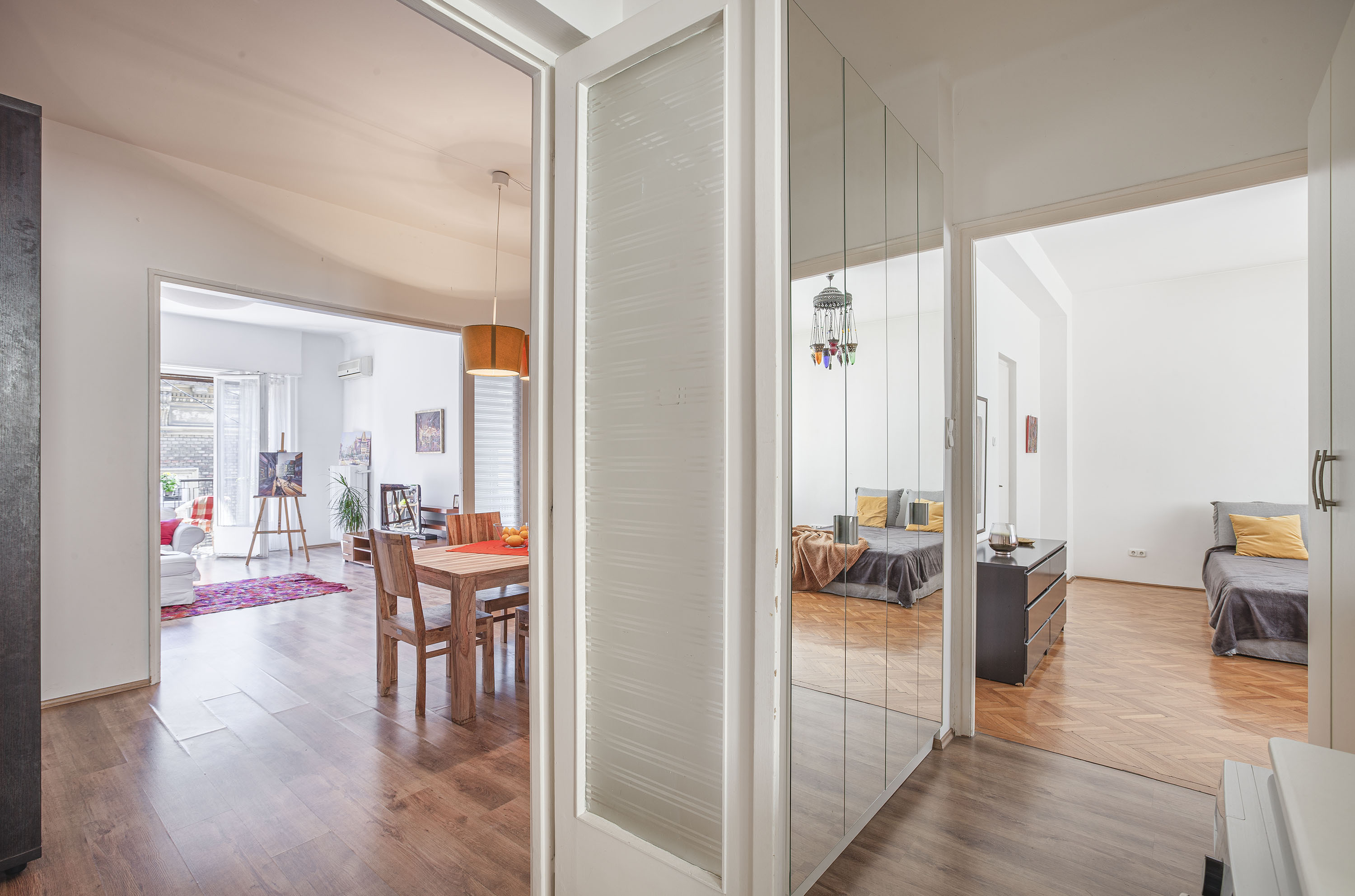 Tágas terei egy elegáns otthon hangulatát árasztják. Két helyrajzi számmal rendelkezik, és habár egy bejárati ajtaja van könnyedén két lakássá is osztható. A közös költség tartalmazza a víz és a fűtés díját, itt csak a villanyt kell a közös költségen felül megfizetni. A két villanyóra pedig előnyt képezz a lakás esetleges ketté osztásakor. Három hálószobájával, egy kádas és egy épített zuhanyzós fürdőszobájával, valamint elrendezésével biztosítja mindazt, amit tudnia kell egy kényelmes otthonnak. Sőt még körbejárható is a lakás. Az étkezős konyha, a nappali és az erkély négyszárnyú bauhaus ajtóit kitárva, egy baráti összejövetelekre ideális, egybefüggő teret kapunk. Körbesüti a nap, keleti (utcai) fekvésű az erkélyes nappali és a dolgozó szoba, míg a szülői háló és a gyerekszoba nyugati fekvésű, a gondozott csendes kertre néznek. Az erkélyről napfelkeltekor és napnyugtakor is lenyűgöző, párizsi hangulatot időző kilátásunk van.