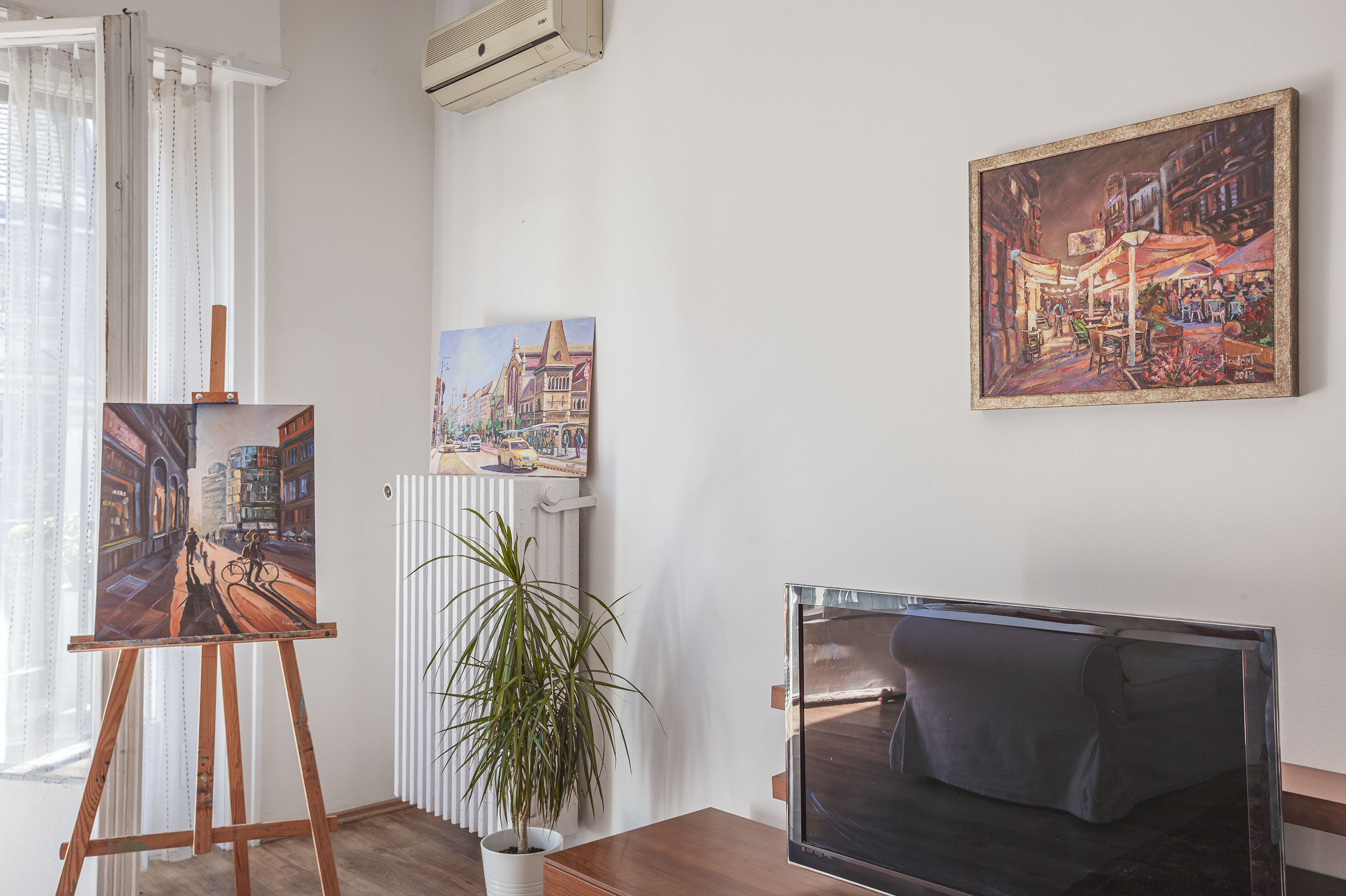 Hadar Tímea festőművész alkotásai a Bródy Sándor utca galériáinak hangulatát csempészik a lakásba.