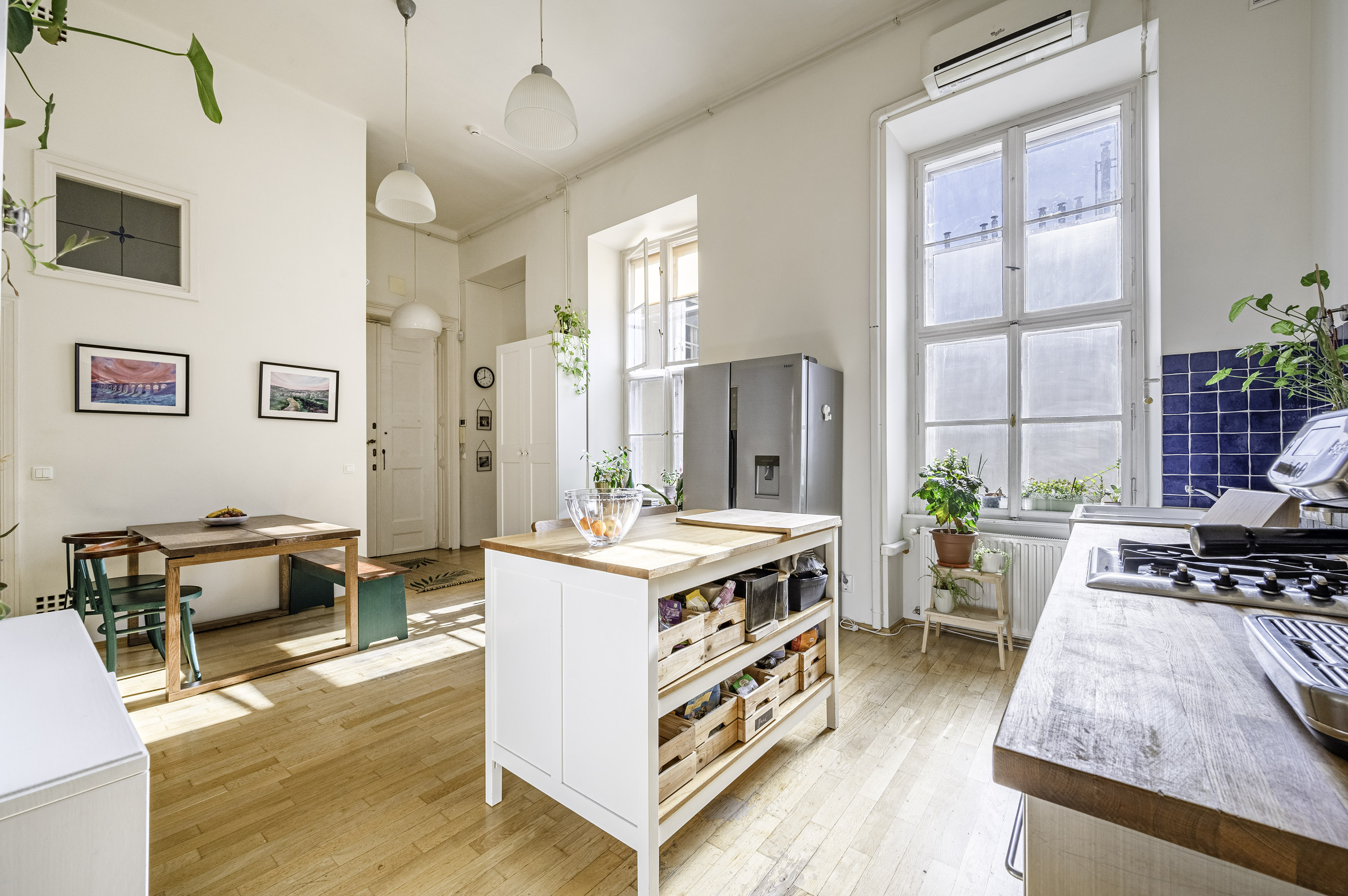 - a hatalmas konyha DK fekvésű, reggelente úszik a fényárban. Itt légkondi is van