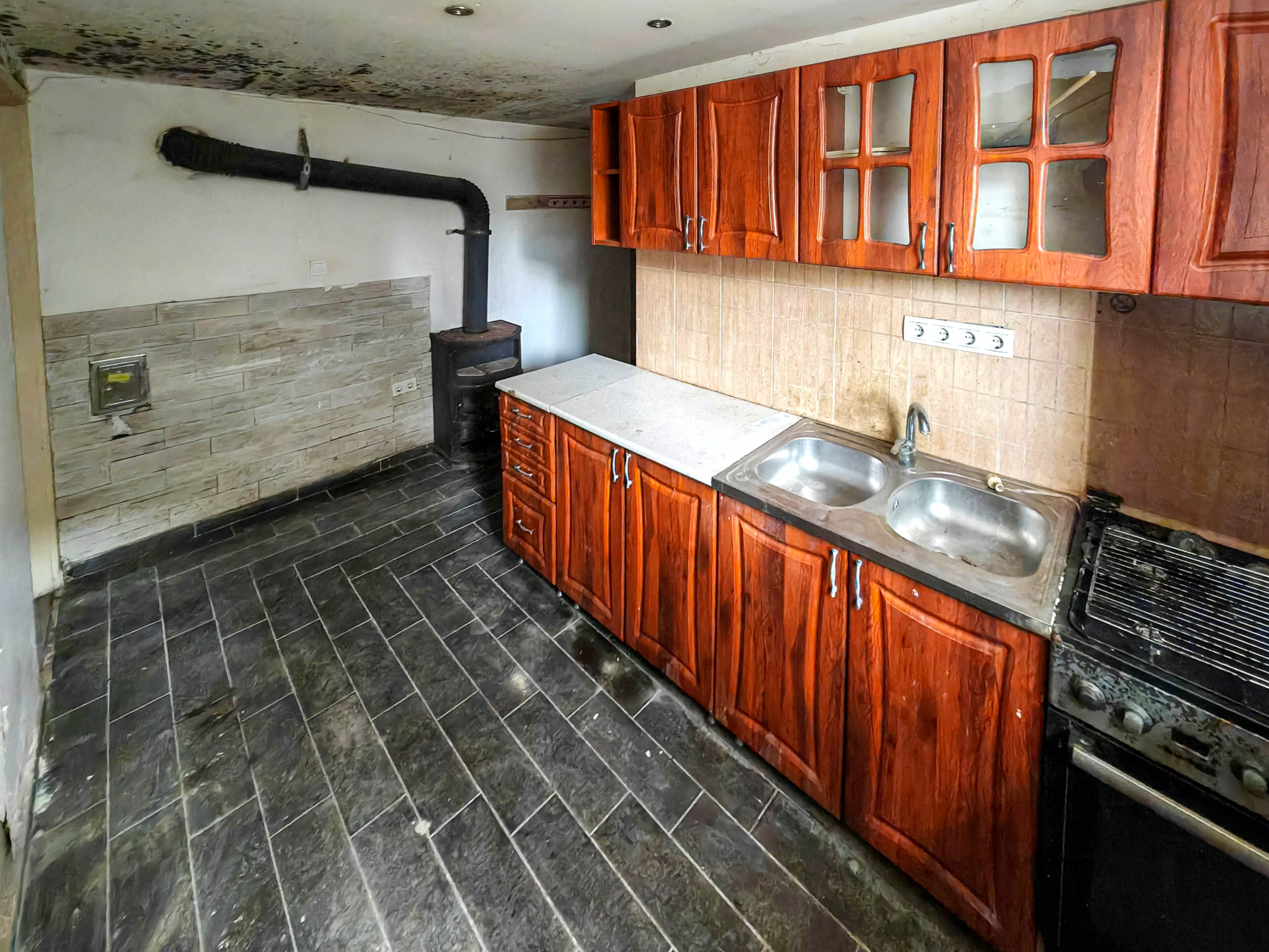 A főbb extrák közé tartozik a beépített konyha és az alap bútorzat, melyek jó alapot teremtenek a további felújításokhoz.