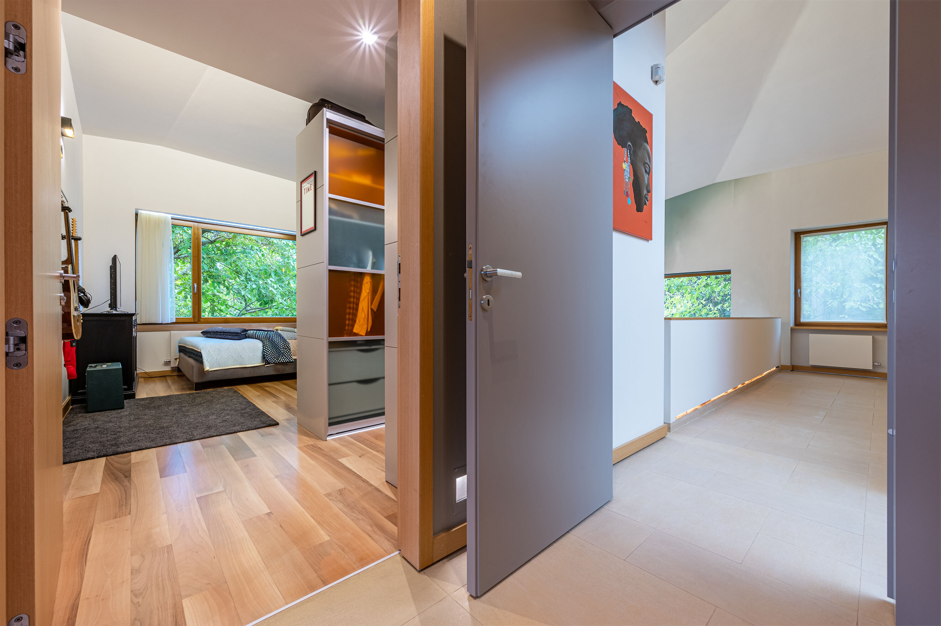 Az emeleten a hálószobák kerültek kialakításra. Mindegyik nagyméretű walk-in gardróbbal vagy gardróbrendszerrel felszerelt. Mindegyikhez tartozik fürdőszoba.