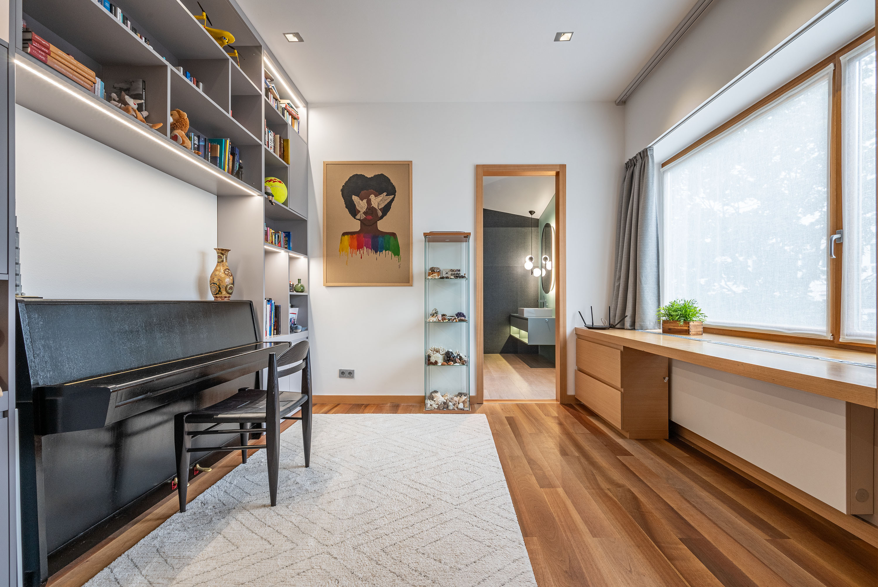 On this level you will also find a study/office, a workout room and utility rooms.