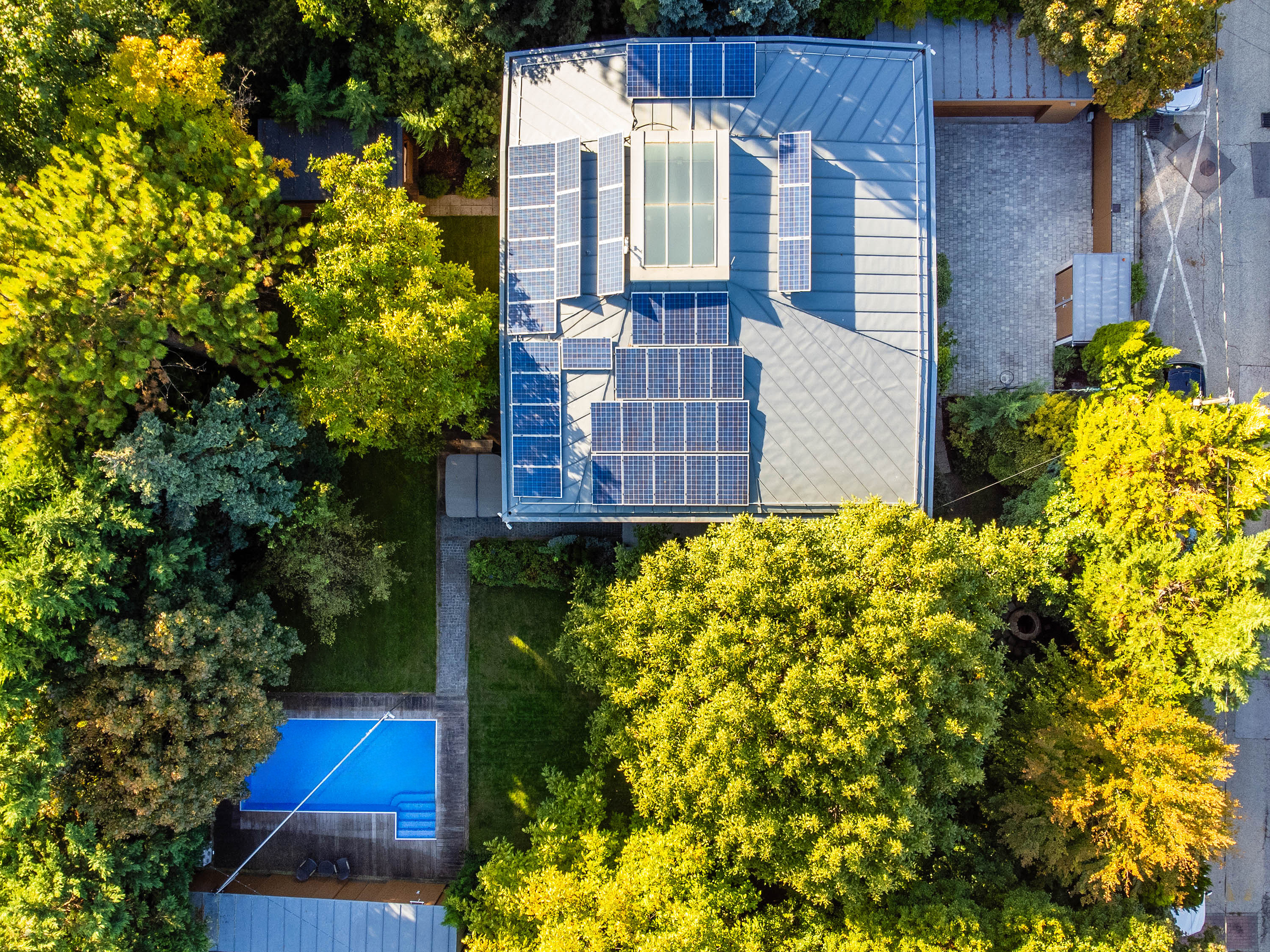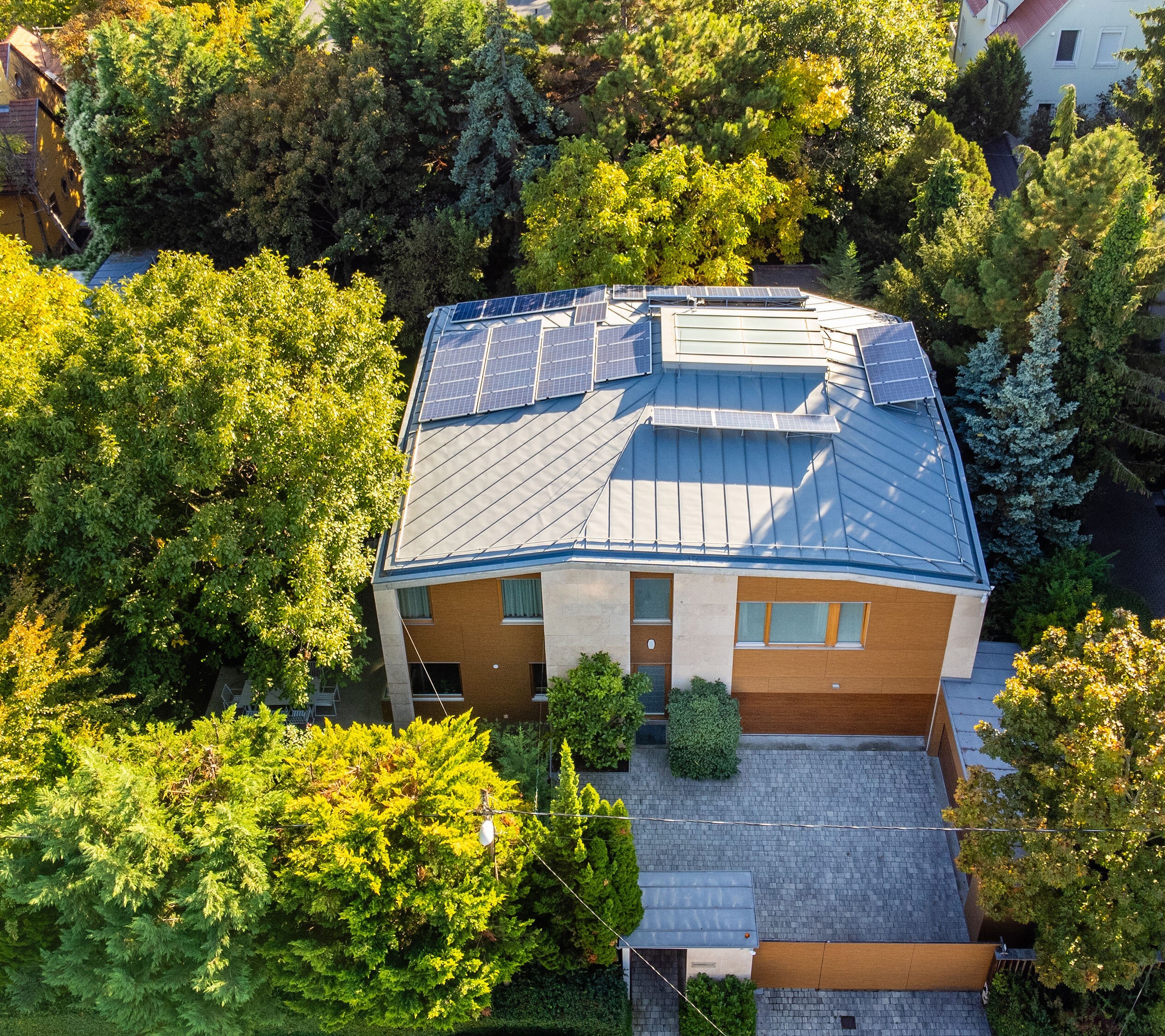 Megújuló napelem energiaforrással biztosítja az épület biztonságos üzemeltetését, ezzel párhuzamosan az alacsony költségekkel való működtetését. Az áramköltség a nullához konvergál, fűtésköltsége is alacsony.