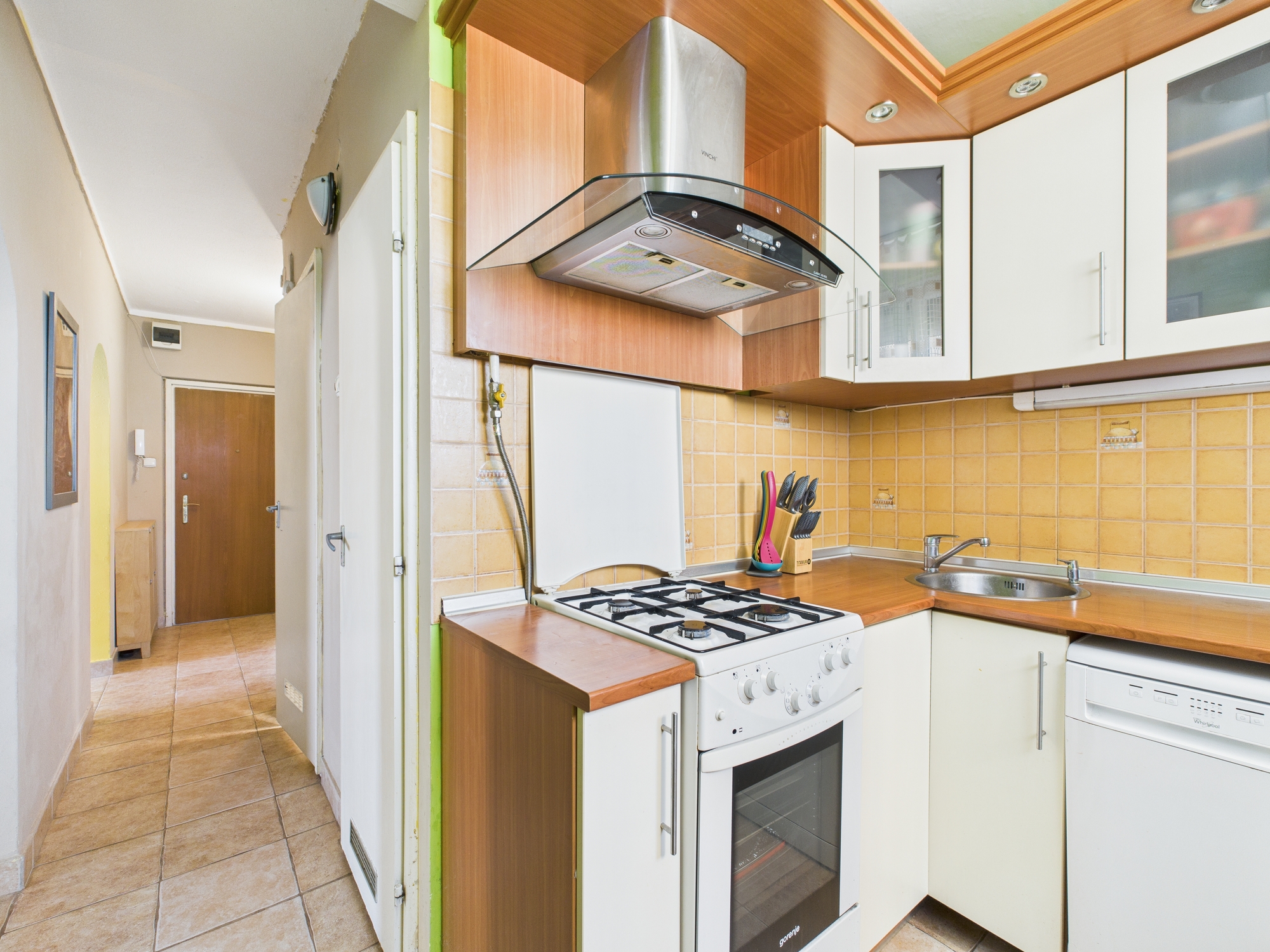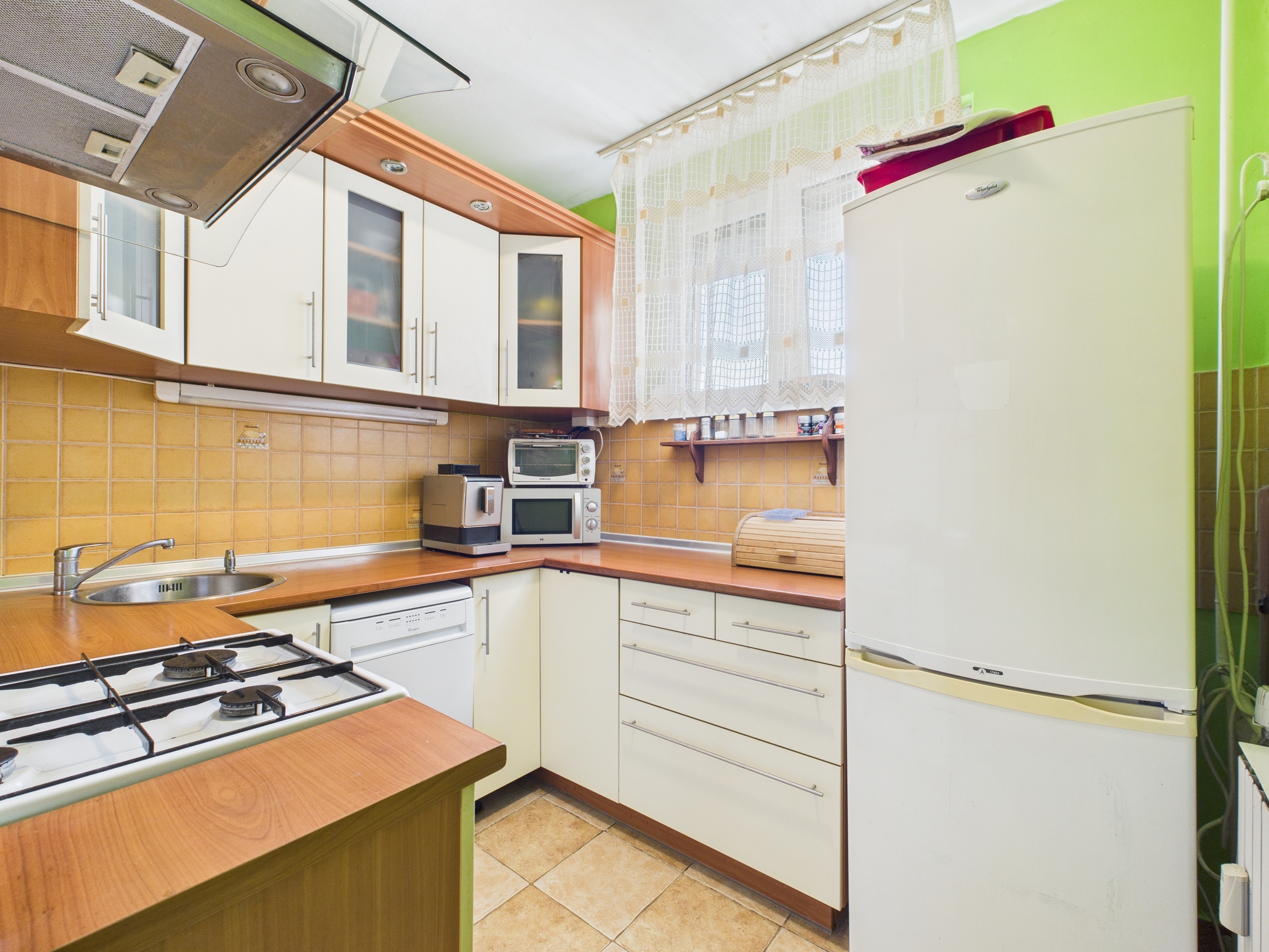 A lakás jó állapotban van és jól karbantartott. Az ablakokat és ajtókat a panelprogram keretében felújították, ami kényelmet és jobb energiahatékonyságot biztosít. A szobák meleg csempével vannak burkolva; a konyha/étkező és a folyosó kiváló minőségű csempével van burkolva. A konyha U alakú, sok tárolóhellyel, gáztűzhelygel, sütővel, elszívóval, mosogatógéppel és hűtőszekrénnyel rendelkezik. Fürdőszoba káddal, törülközőtartóval és radiátorral; külön WC.