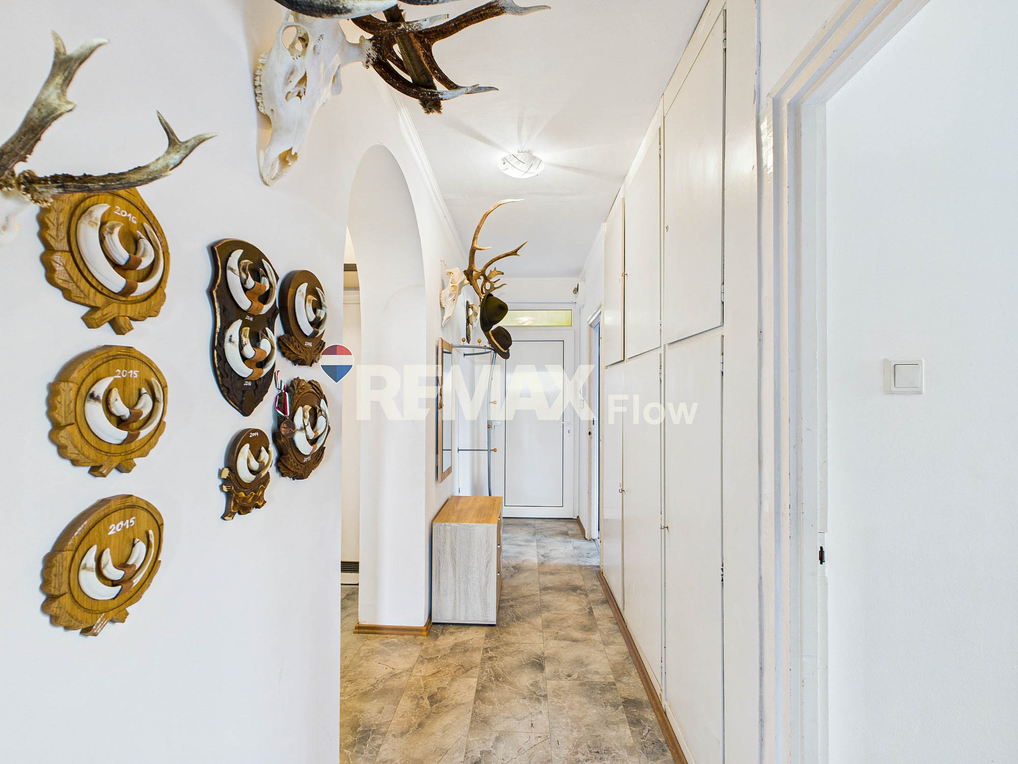 A közlekedőben egy nagy méretű beépített szekrény található, ami nagy segítség a tároláshoz.