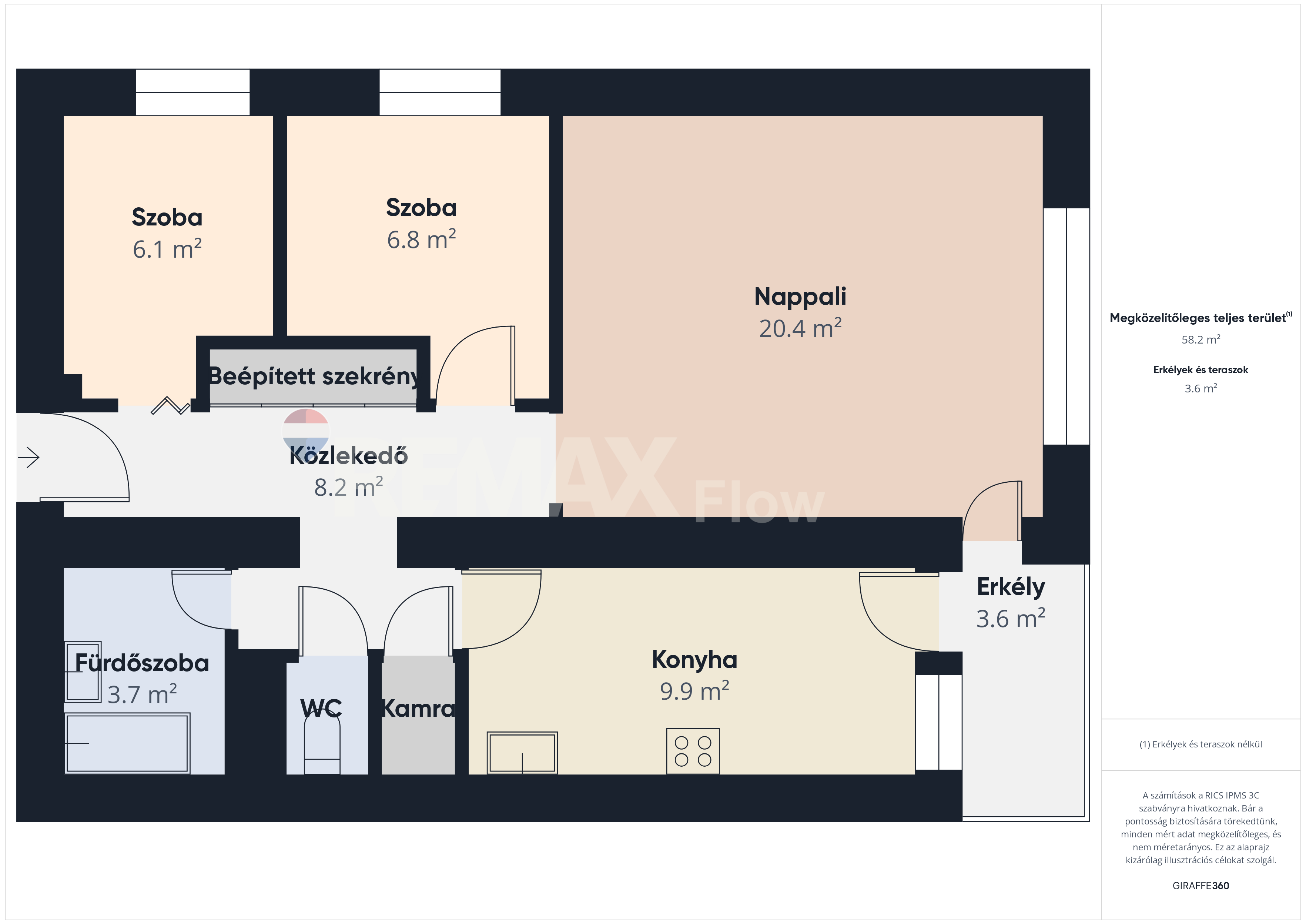 Hivatalos alapterület: 58 m2