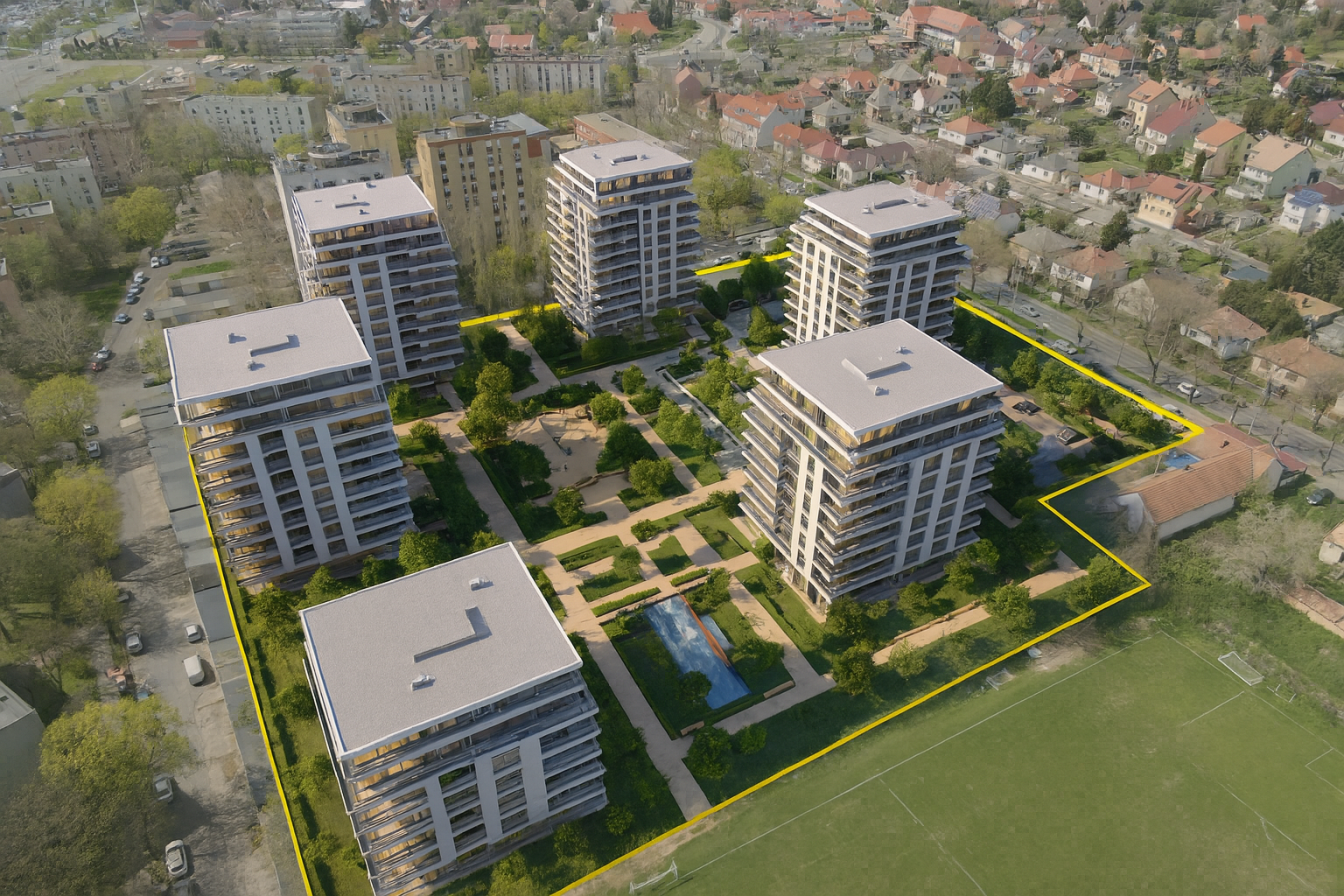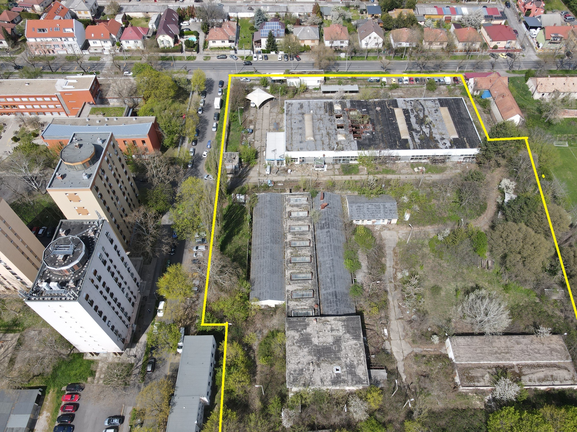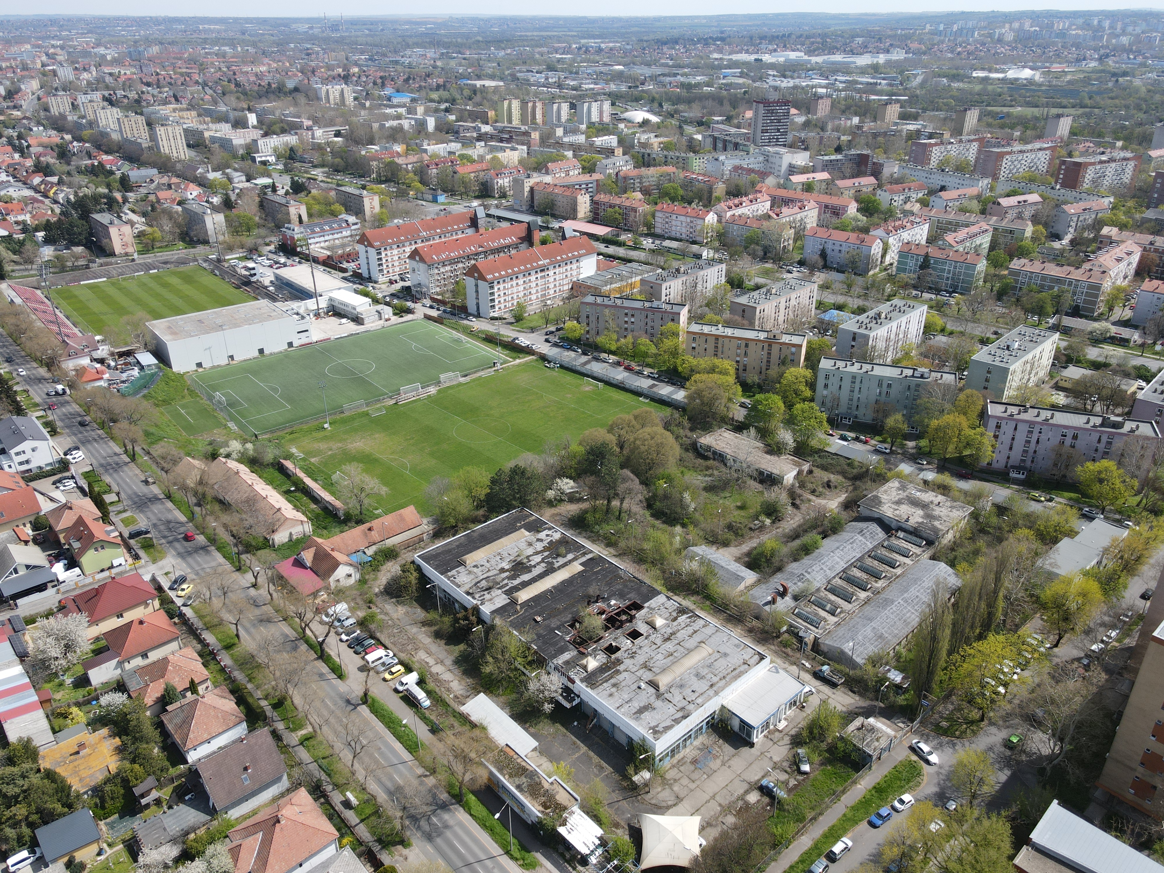 A terület az orvosi egyetem közvetlen közelében helyezkedik el, gyalogtávolságra onnan. A telek szinte szabályos négyzet alakú, közvetlen környezetében 10 emeletes lakóépületek találhatók, másik oldalán pedig sportpályák. 3 oldalról is utak határolják.