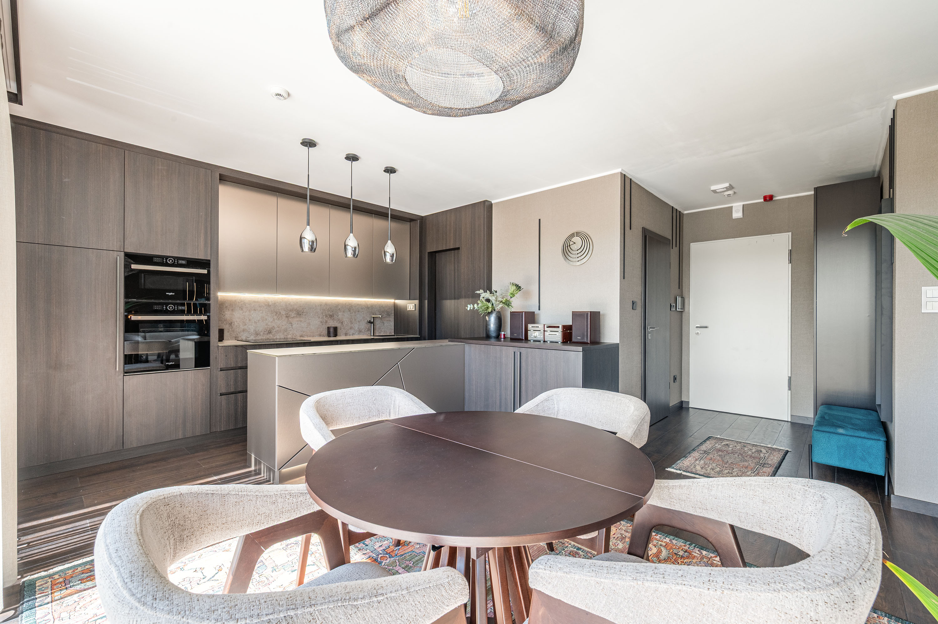 A lakás az épület 3 legnagyobb lakásának egyike. Belső kialakítását a tulajdonos saját részre végezte el, pénzt, időt, energiát nem sajnálva – nem a sztenderd felszereltséggel bír. A lakásban mennyezethűtés, padlófűtés, osztrák elektromos redőnyök, prémium egyedi gépesített konyha, kő munkalap, magas minőségű olasz burkolatok, Bugnatese szaniterek találhatóak.
