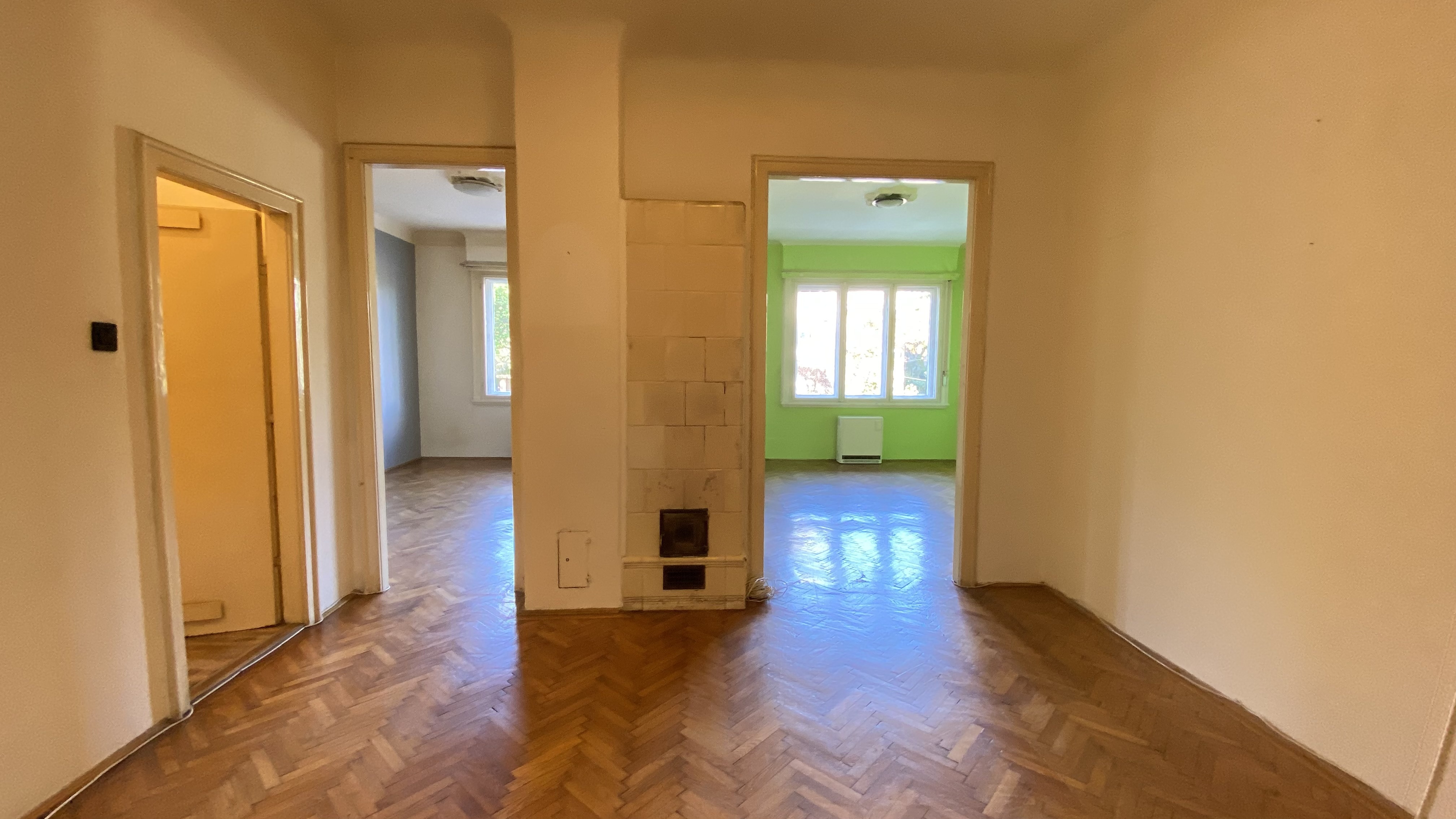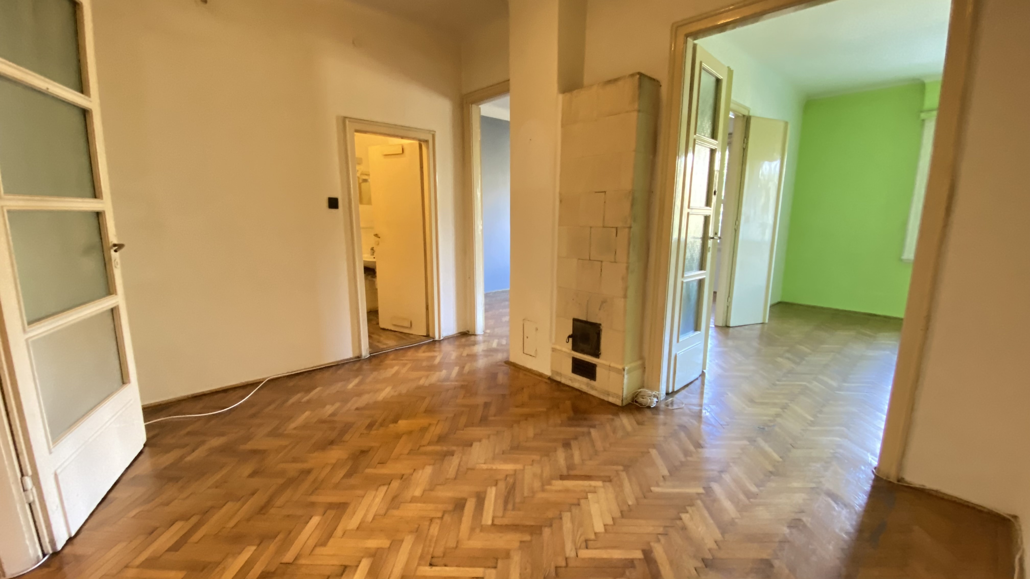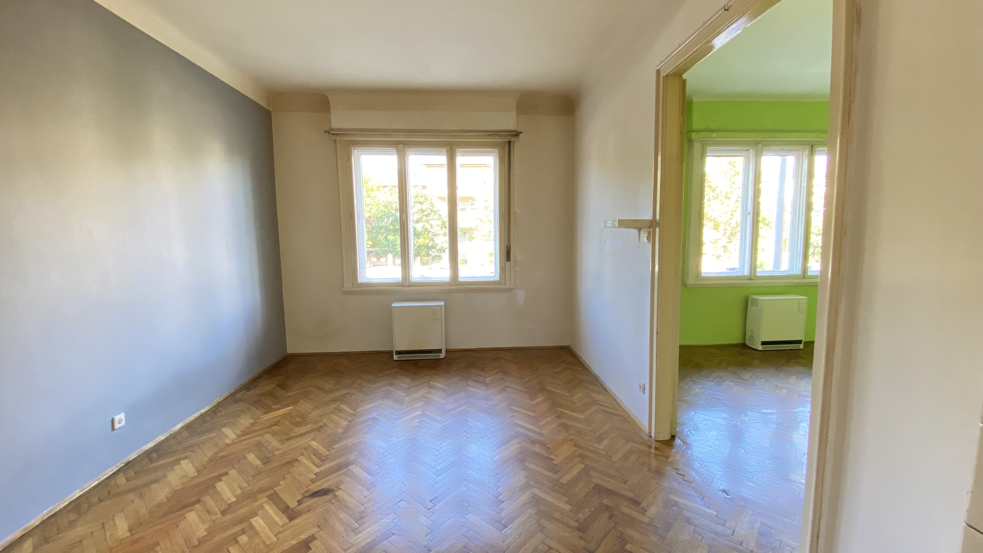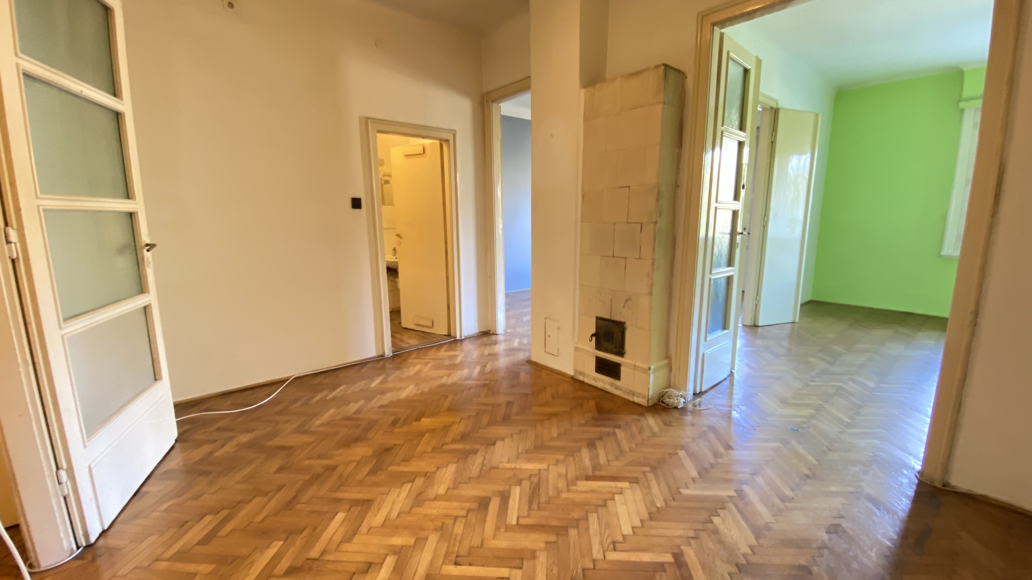 Az épület 1930-ban épült bauhaus stílusban, a lakás ékessége lehet, hogy az összes ajtón és ablakon az eredeti kilincsek és fogantyúk találhatóak.