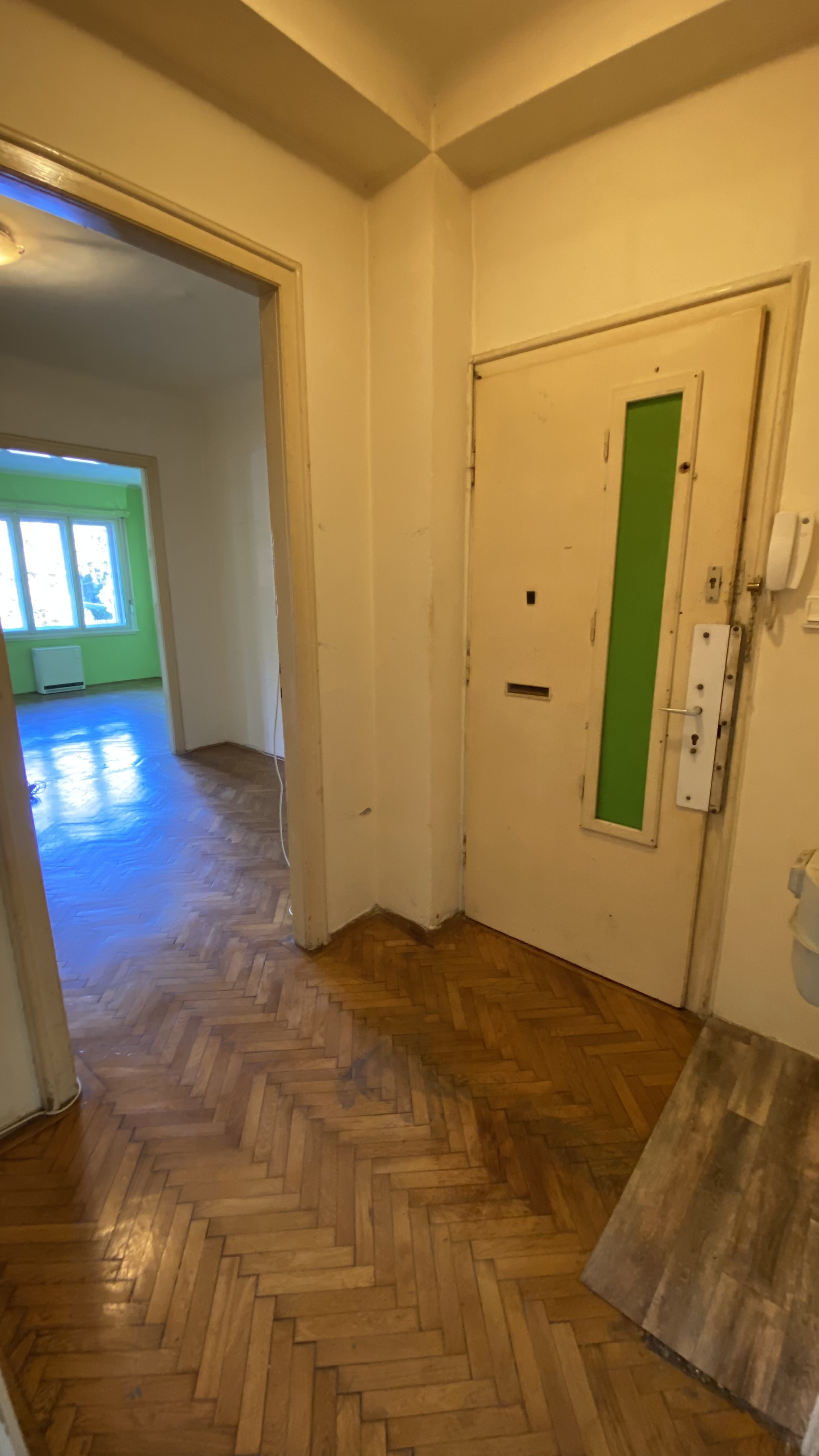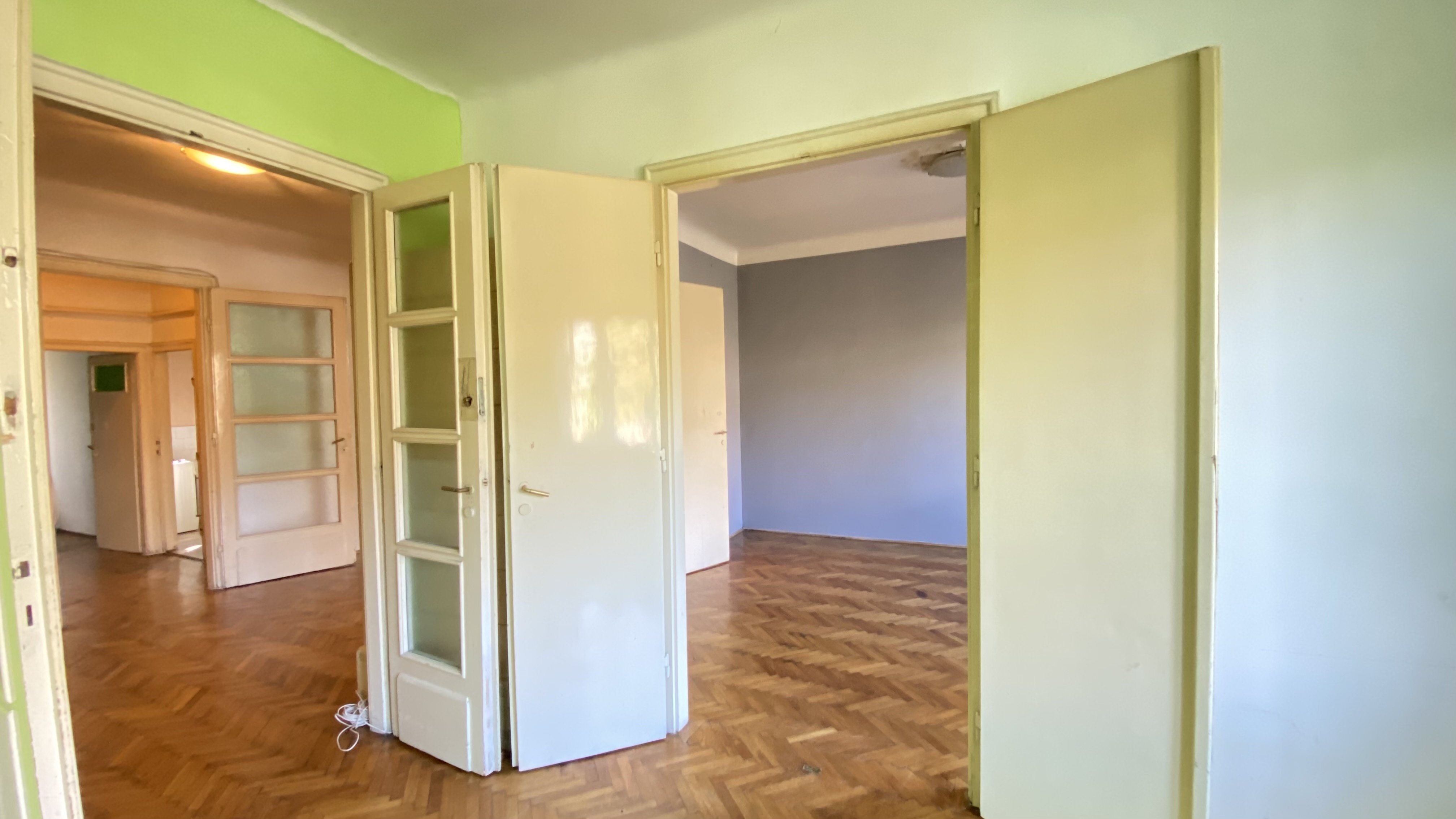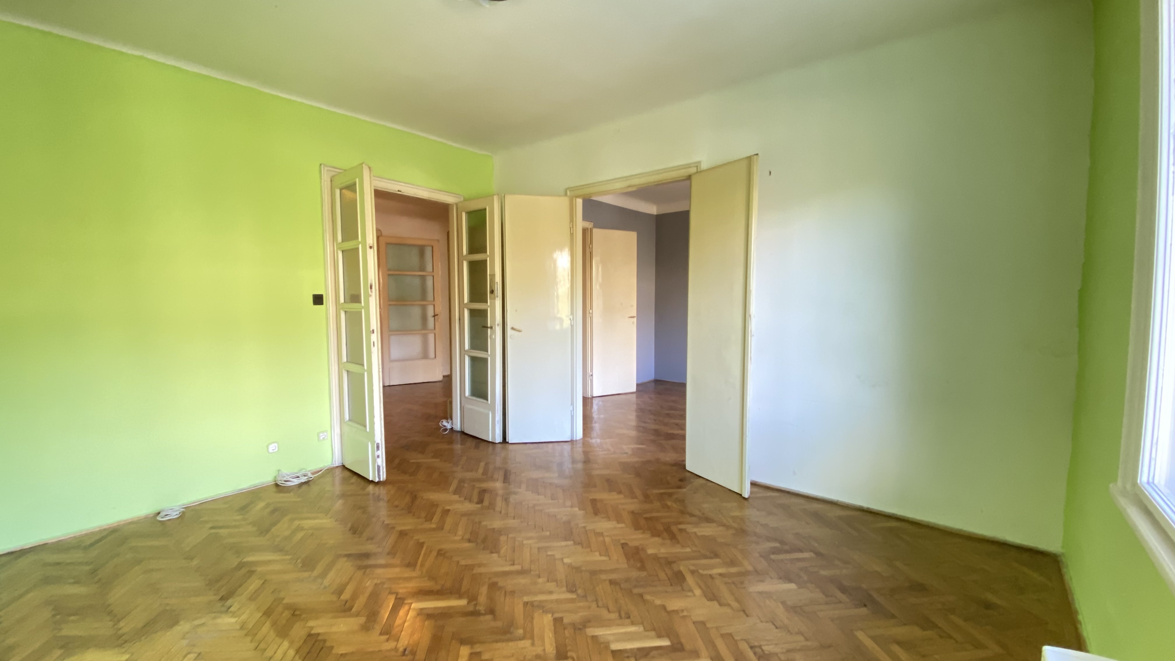 Az épület 1930-ban épült bauhaus stílusban, a lakás ékessége lehet, hogy az összes ajtón és ablakon az eredeti kilincsek és fogantyúk találhatóak.