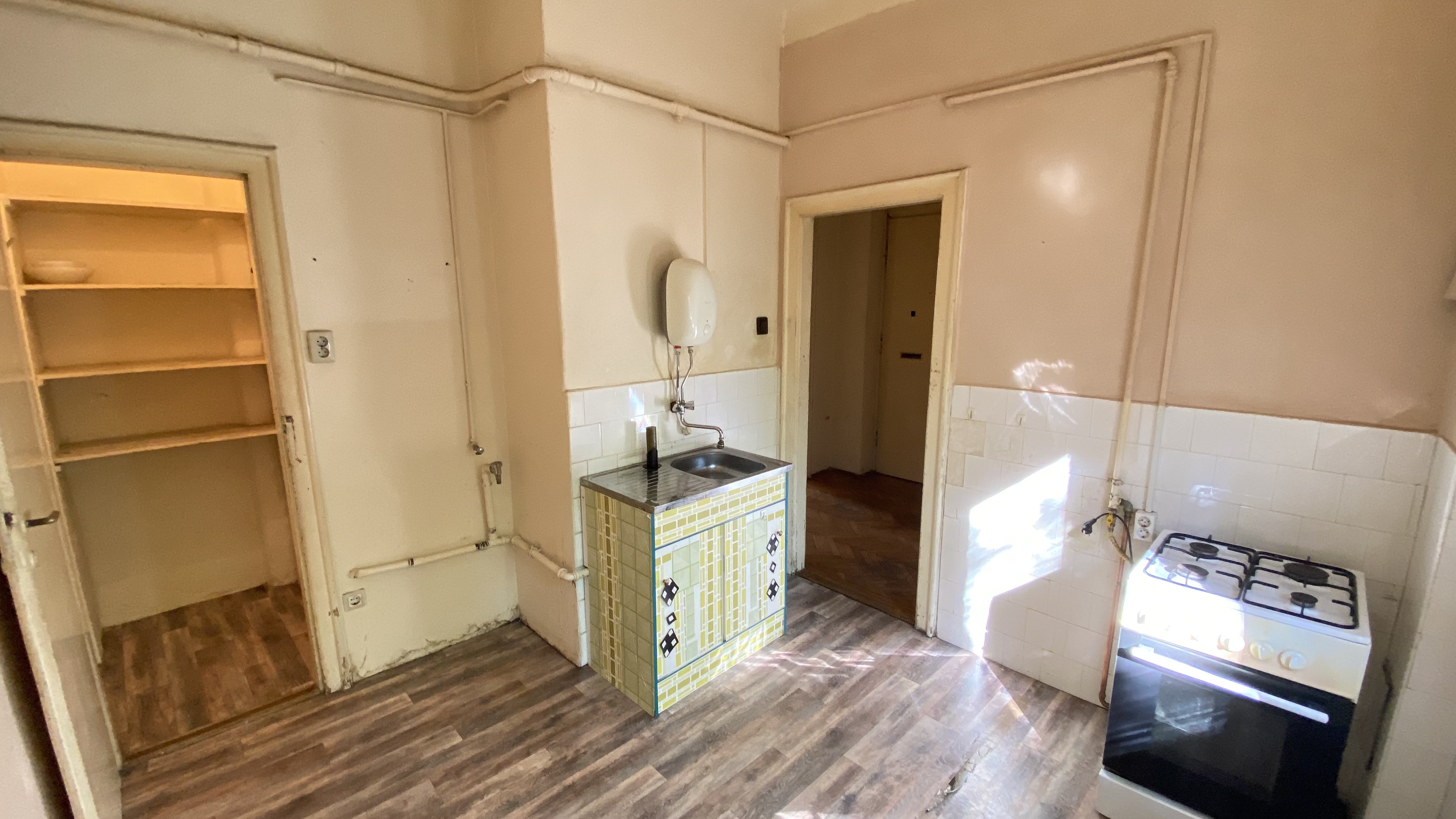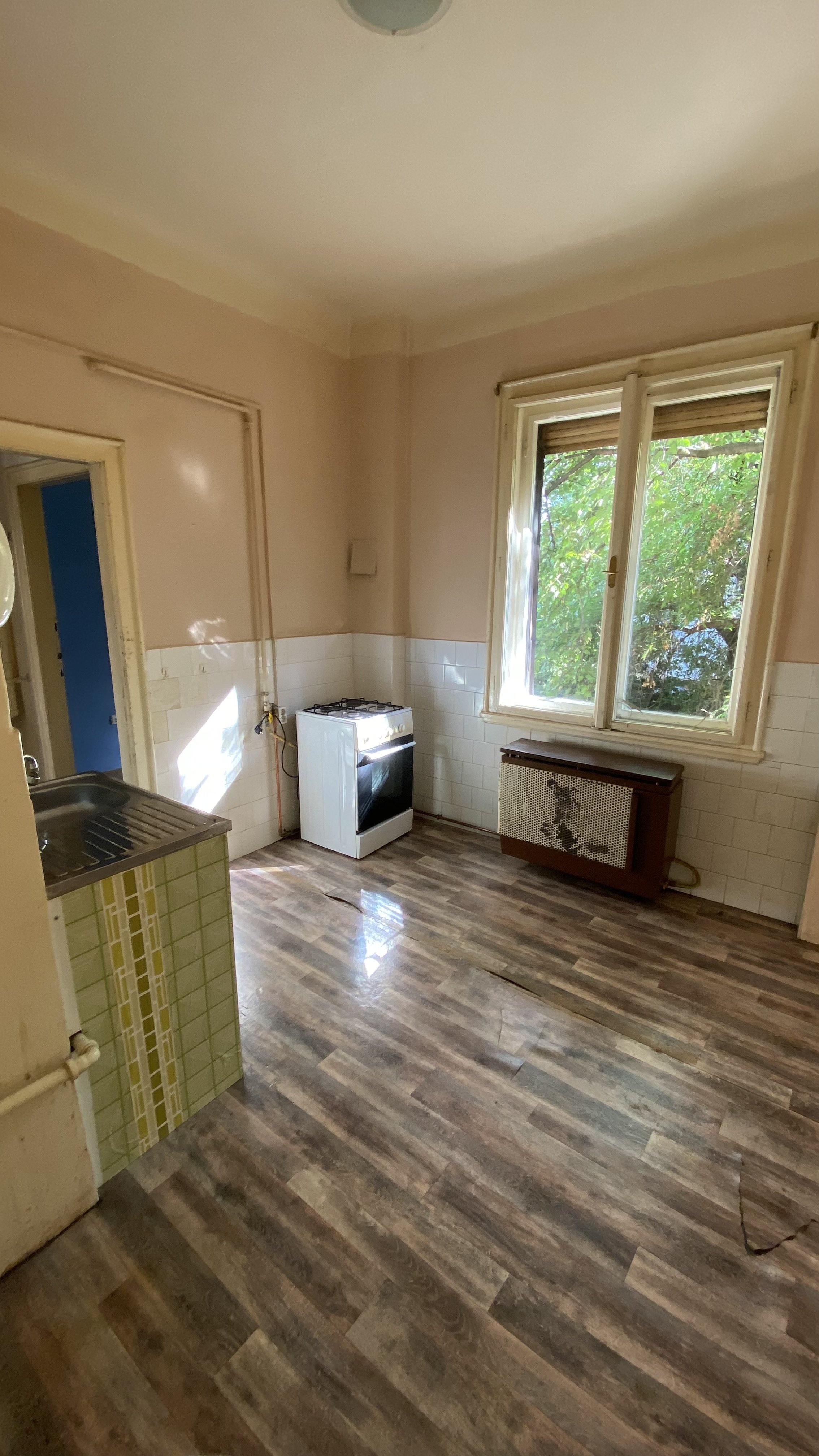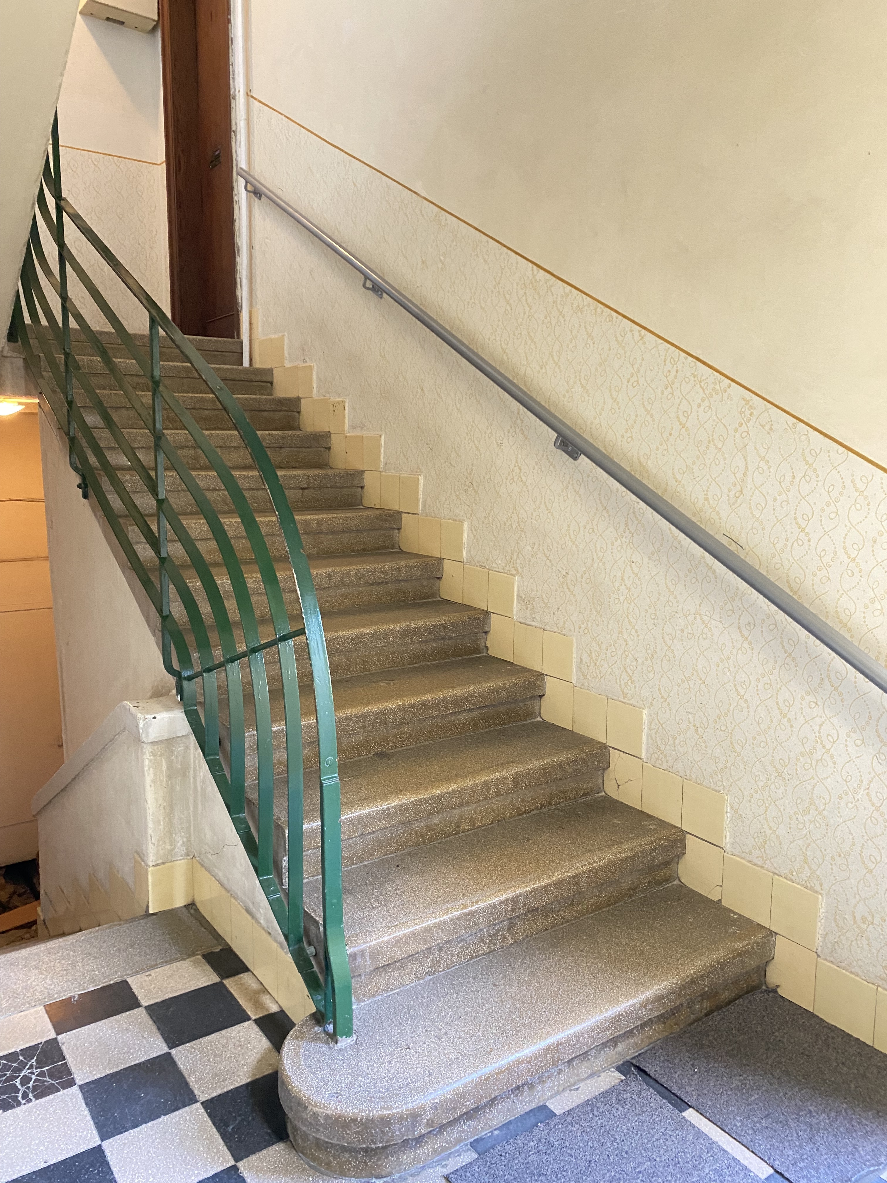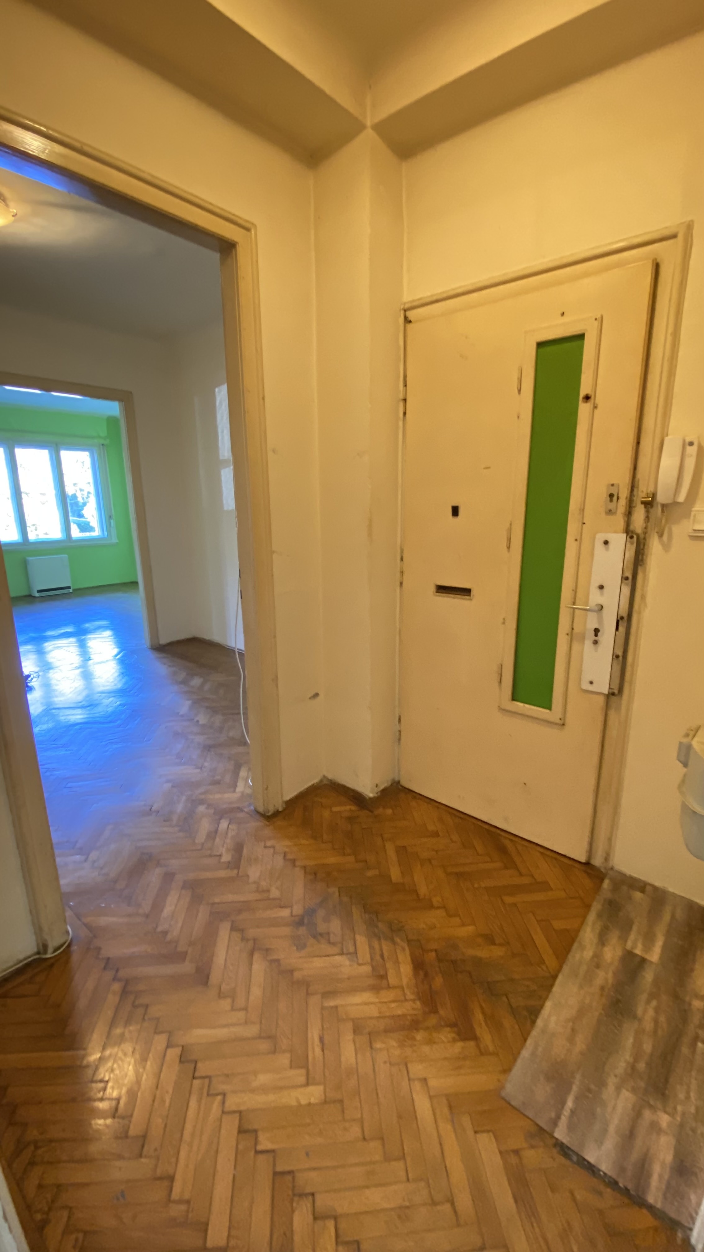 Az épület 1930-ban épült bauhaus stílusban, a lakás ékessége lehet, hogy az összes ajtón és ablakon az eredeti kilincsek és fogantyúk találhatóak.