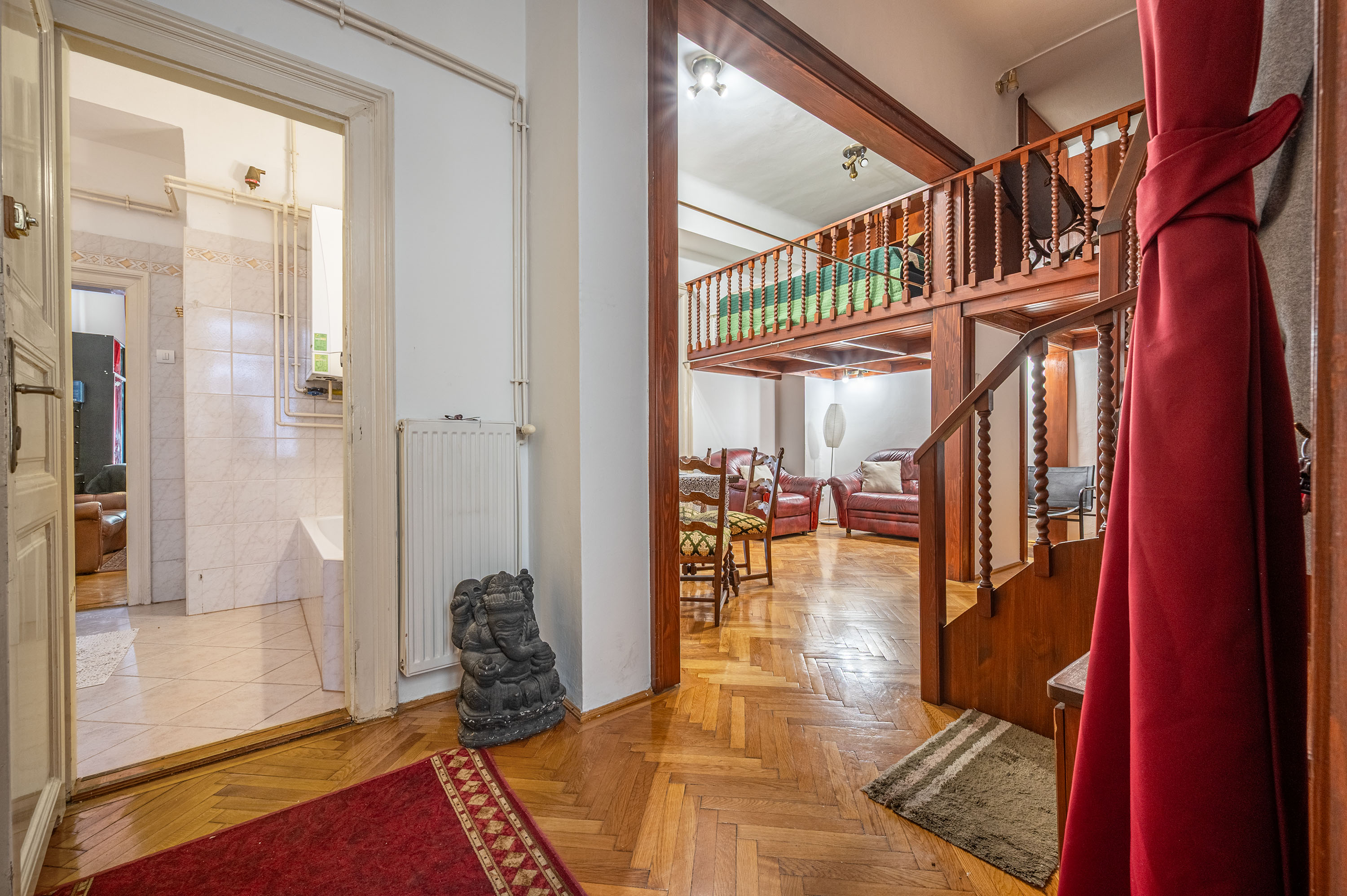 A lakás 2 külön nyíló nagyszobából + egy galéria (9m2),hallból (ami váróként funkcionált) egy konyhából egy kamrából egy fürdőszobából +wc és egy különálló wc -vel rendelkezik az ingatlan. Magas emeleti II. emeleti mivoltából nagyon világos lakásról beszélünk. A szobák ablakai a Rákóczi útra tekintenek rá.