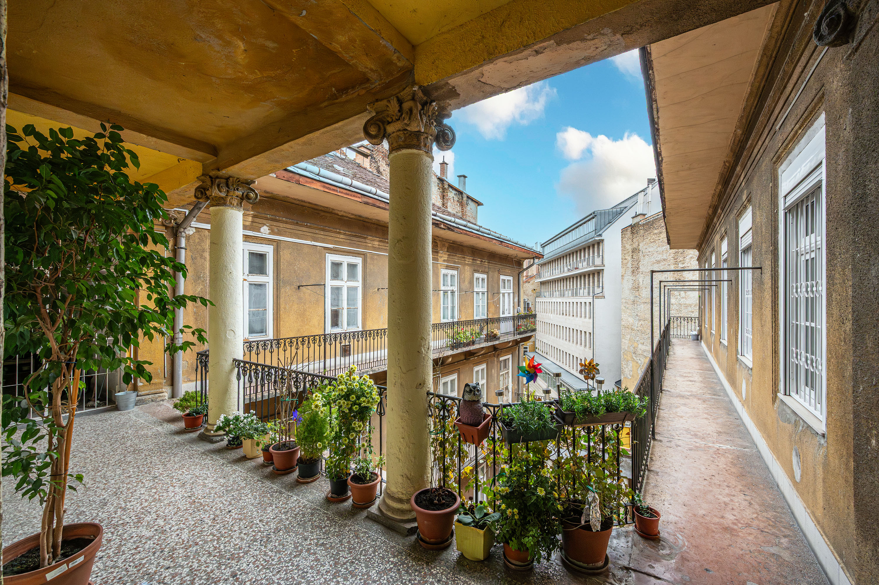 A lakás 1 hálószobából, egy nappaliból, egy konyhából, egy kamra, fürdőszoba +WC-ből áll. Az ingatlan a függőfolyosó utolsó lakásaként helyezkedik el ezért akár privát felhasználású teraszt is lehet kialakítani(15m2), ami a hangulatos belső udvarra nézz rá.