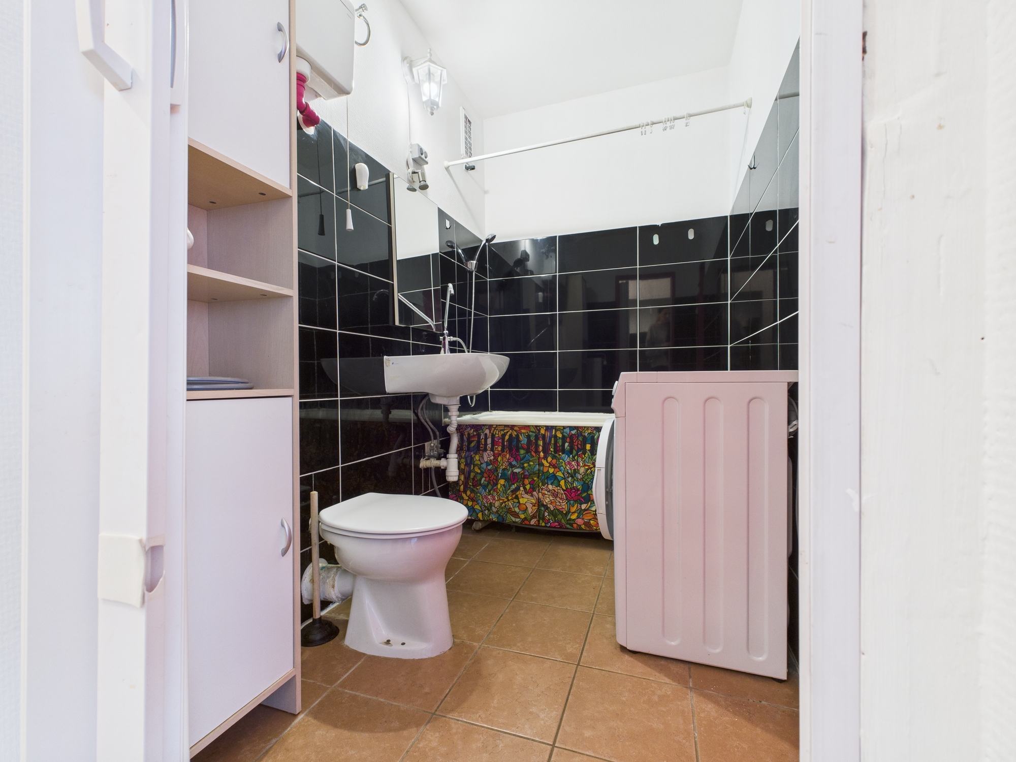 A fürdőszobában kád került kialakításra és a wc és a mosógép kiállás is ebben a helyiségben található.