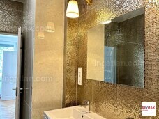 • Modern bathroom with walk-in shower, dual access, and high-end tiles